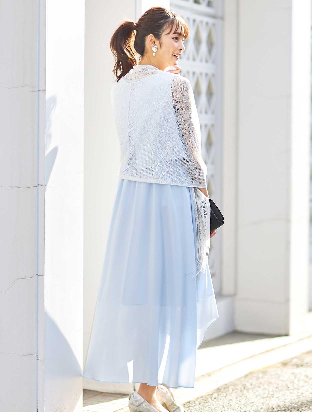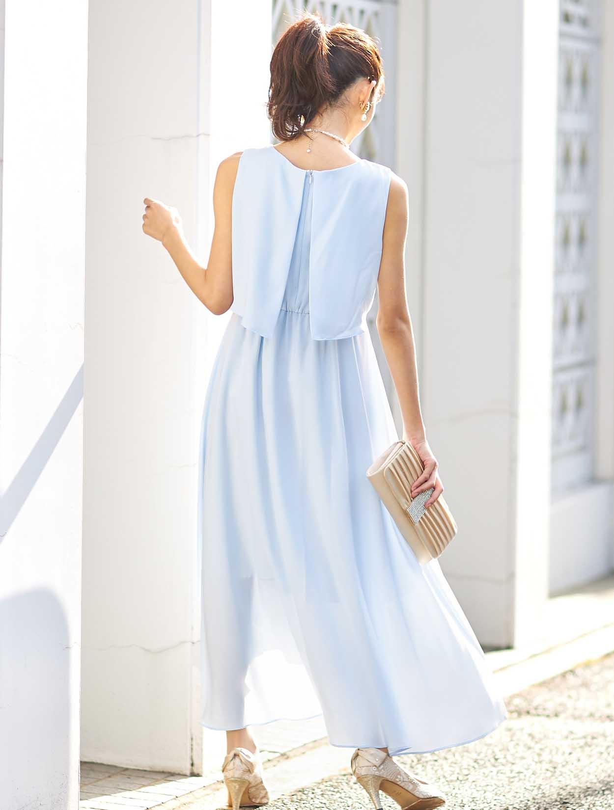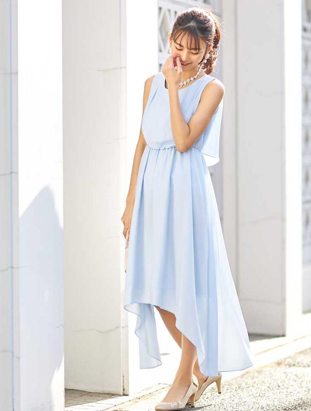 涼やかなサマーカラーが目を惹くミディ丈ドレス