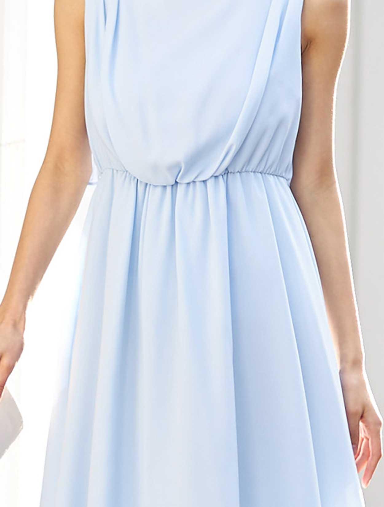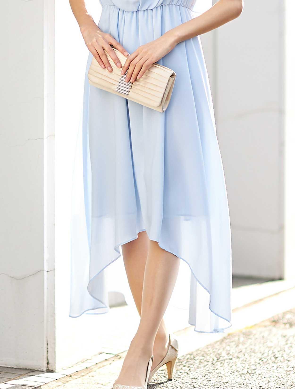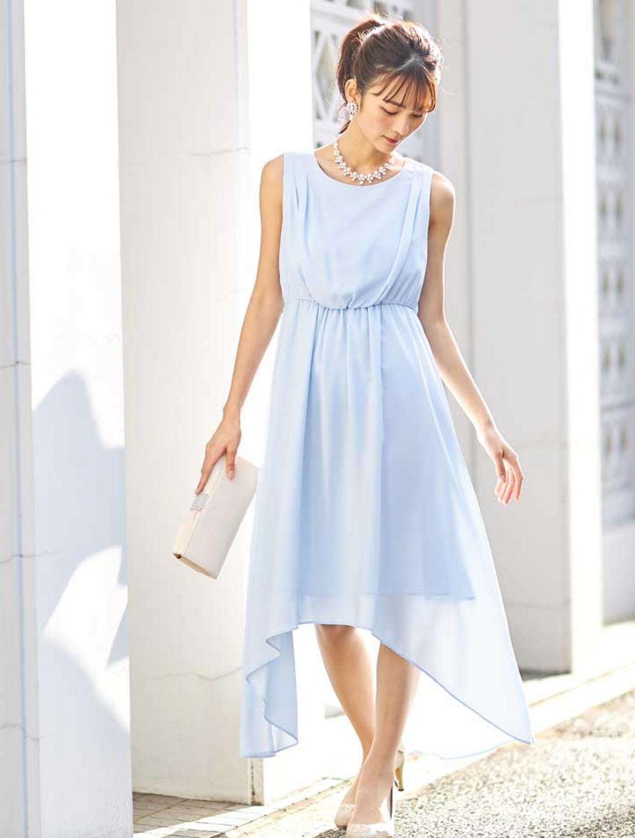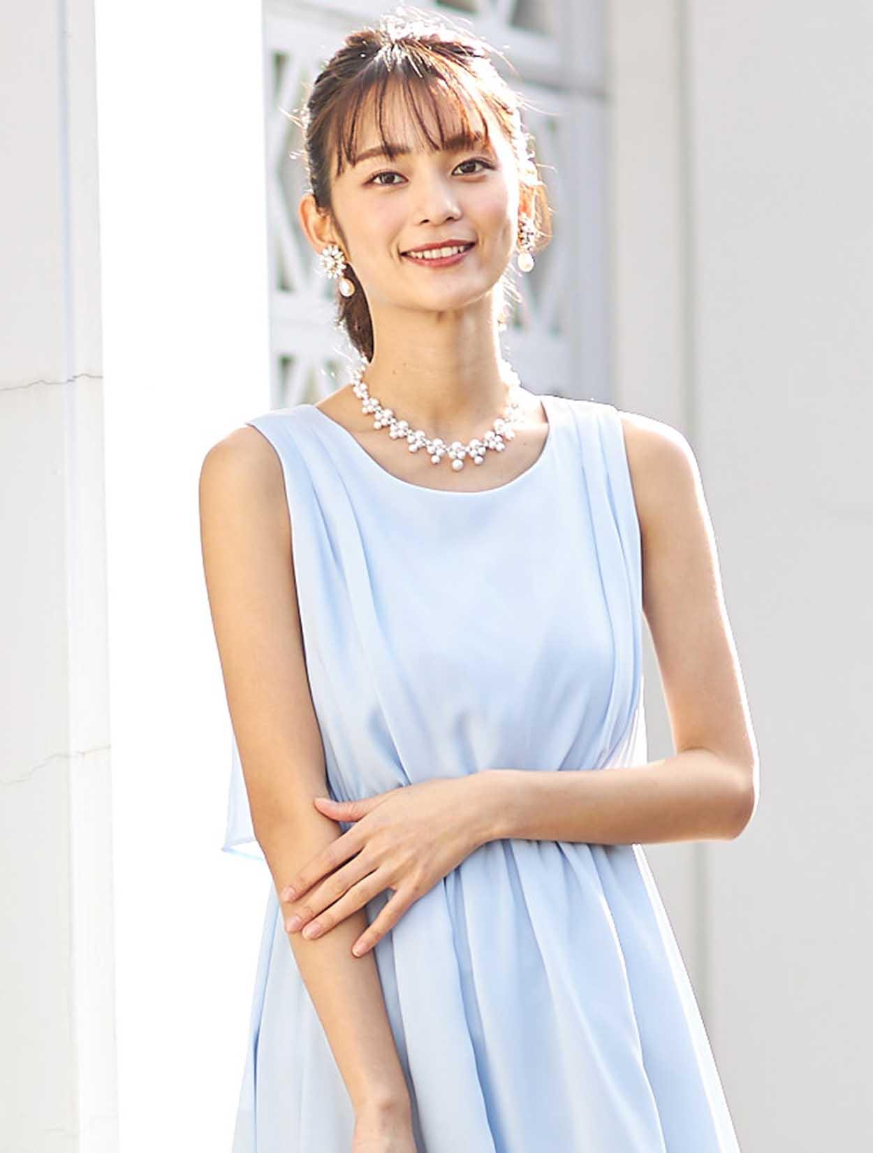 涼やかなサマーカラーが目を惹くミディ丈ドレス
