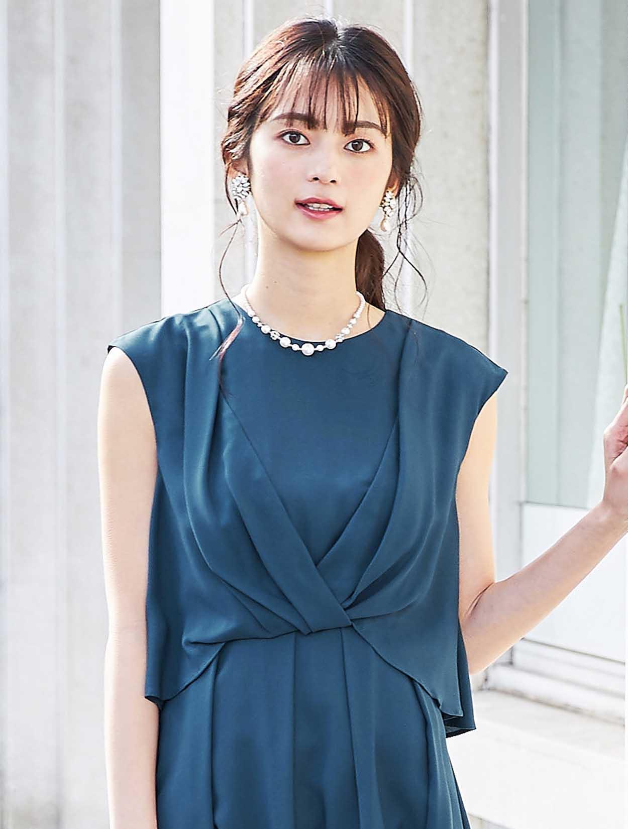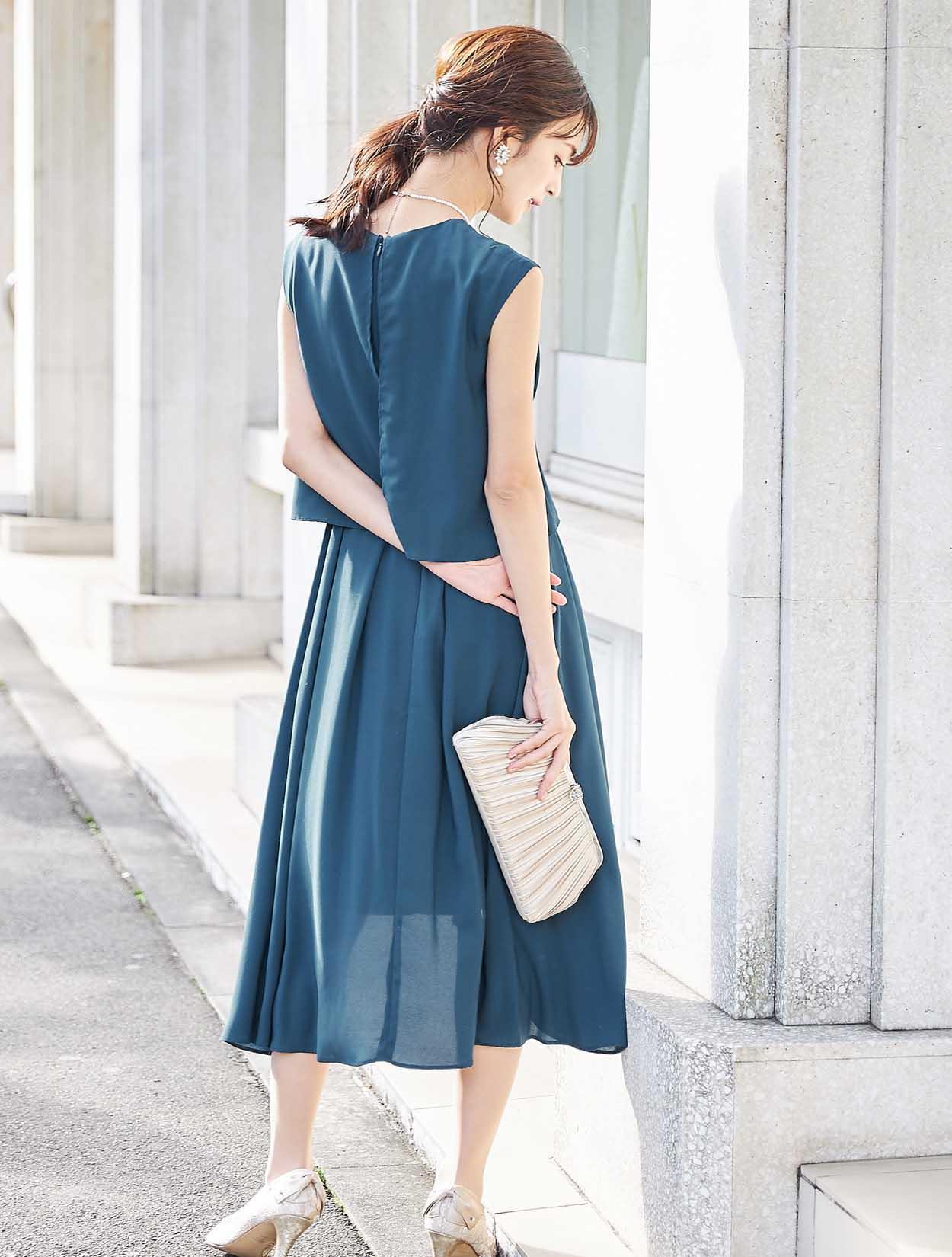 柔らかい落ち感のあるジョーゼット生地を使用。滑らかに落ち広がるスカートのシルエットが甘さを抑えたエレガントなドレス。