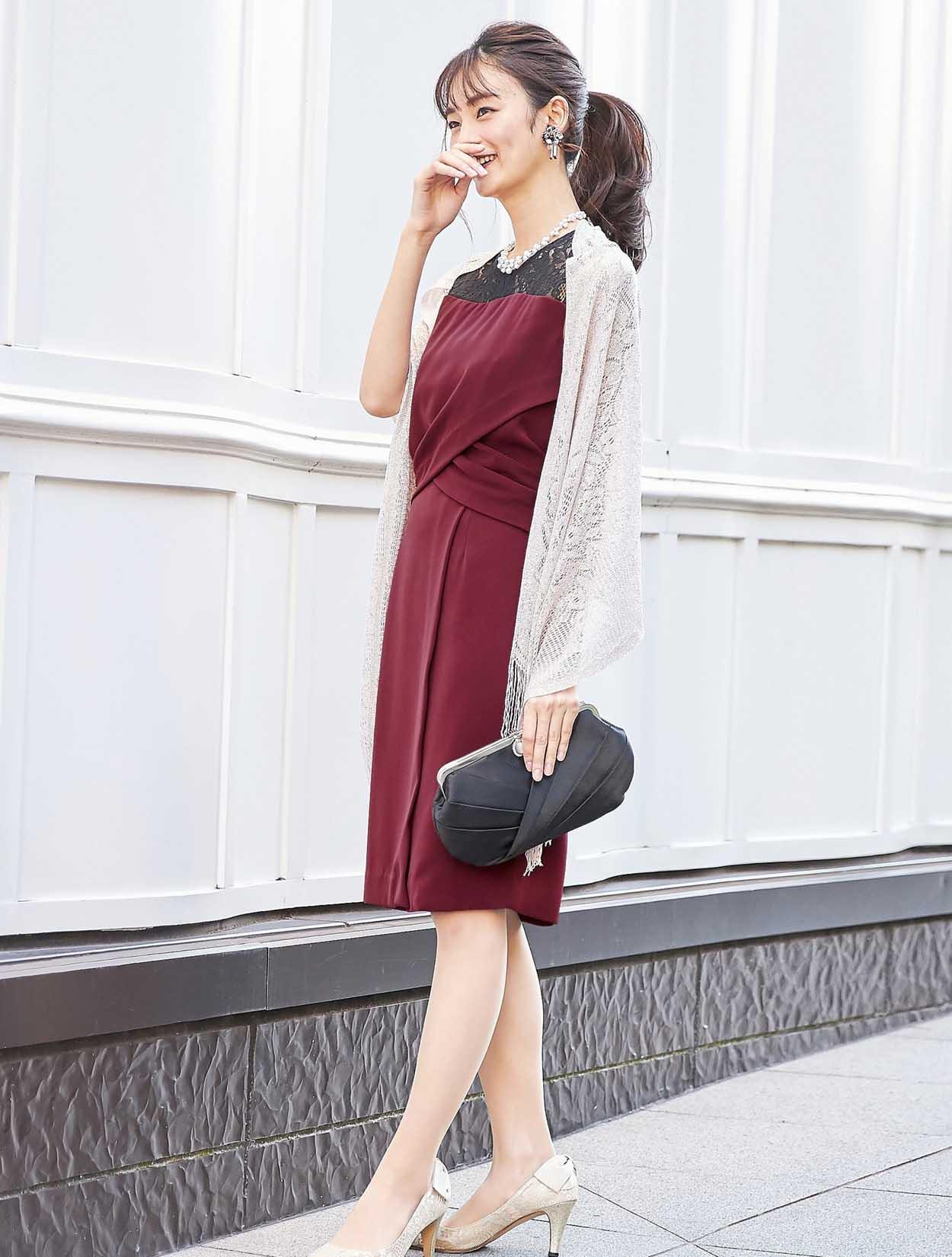 ワインレッドカラーが大人の奥行きを見せてくれるドレス