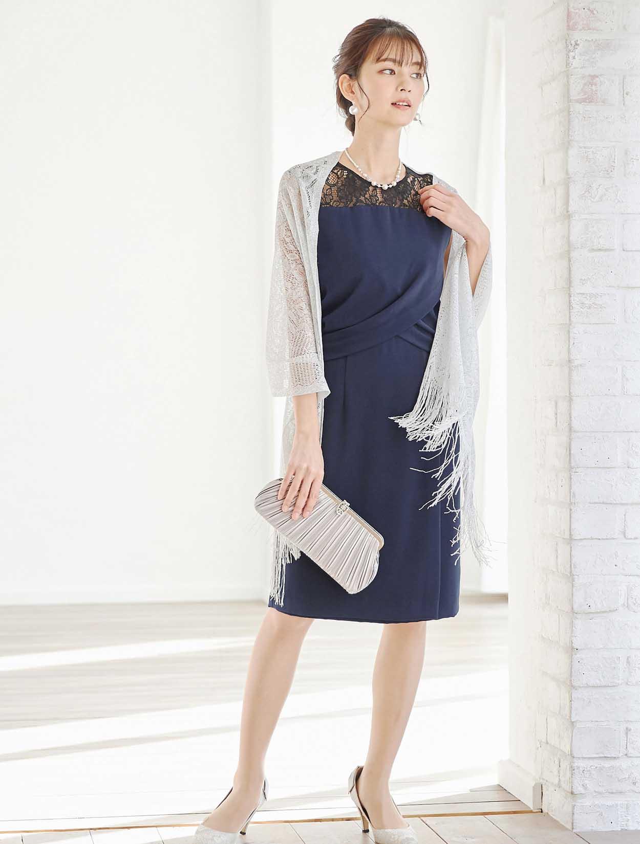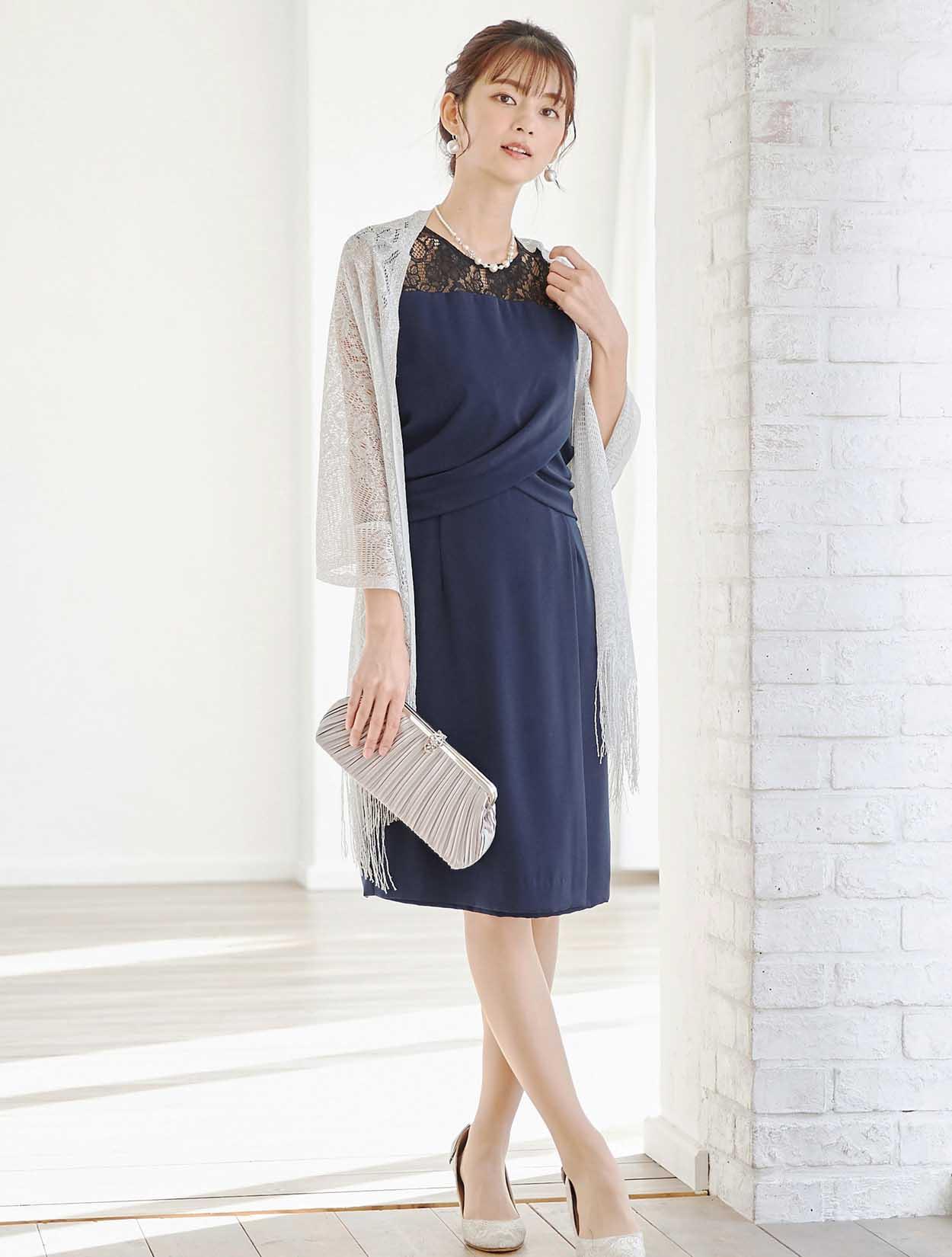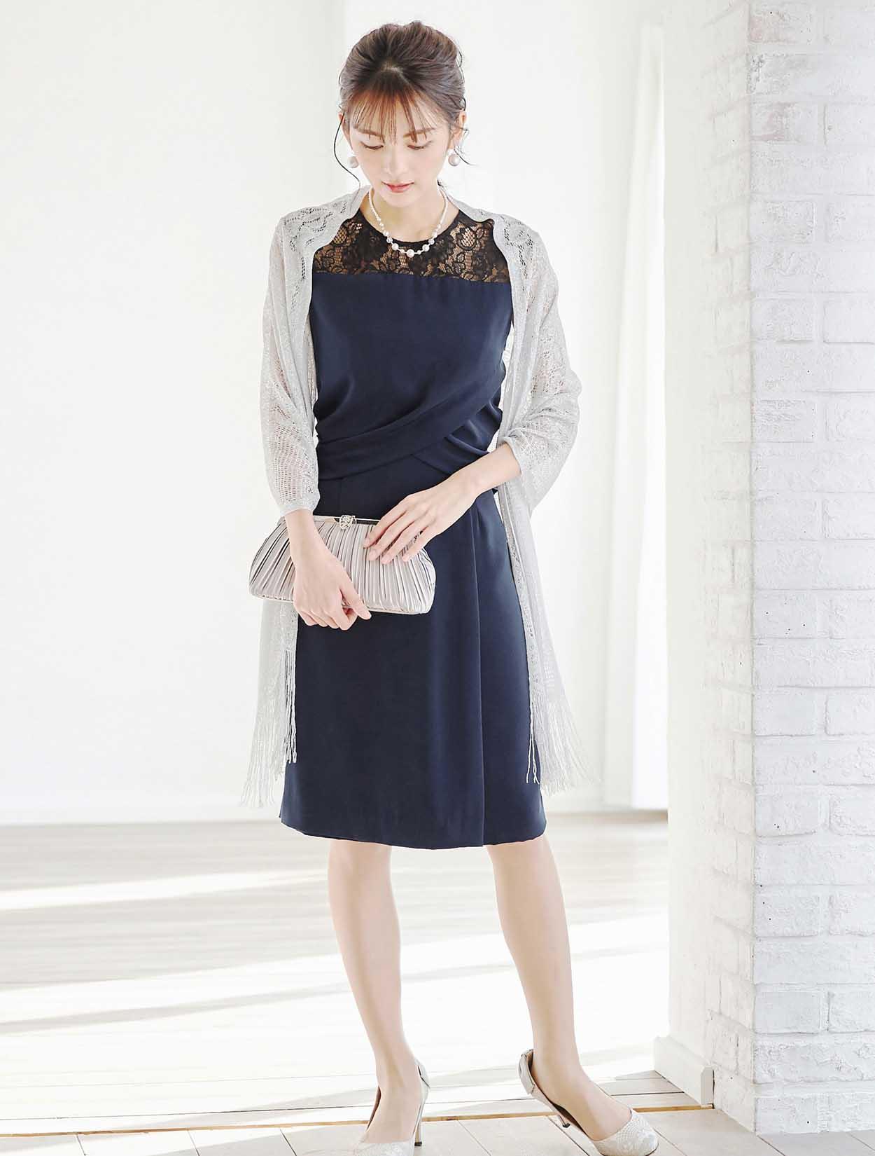 定番ネイビーがレース使いでトレンド感のあるタイトドレスに