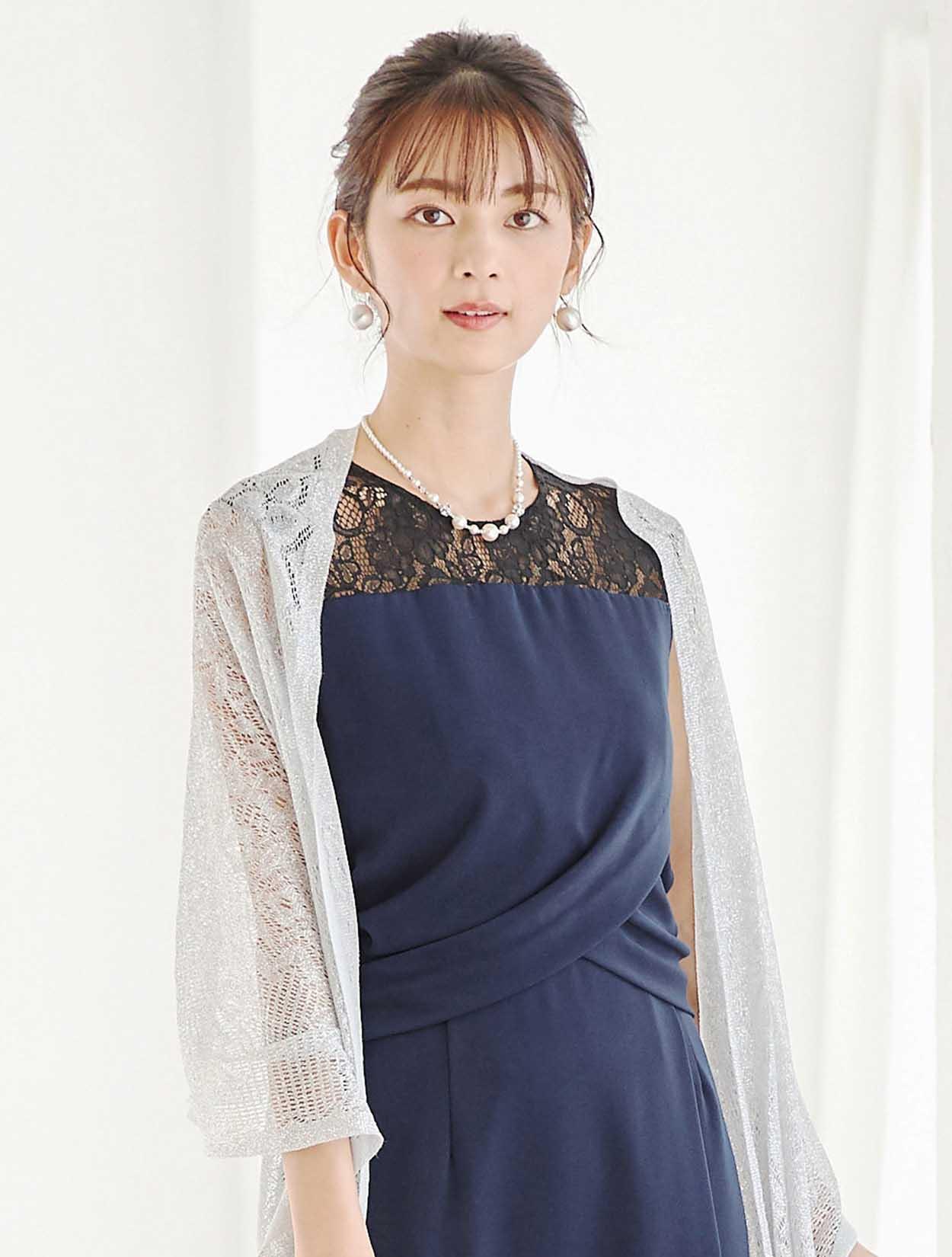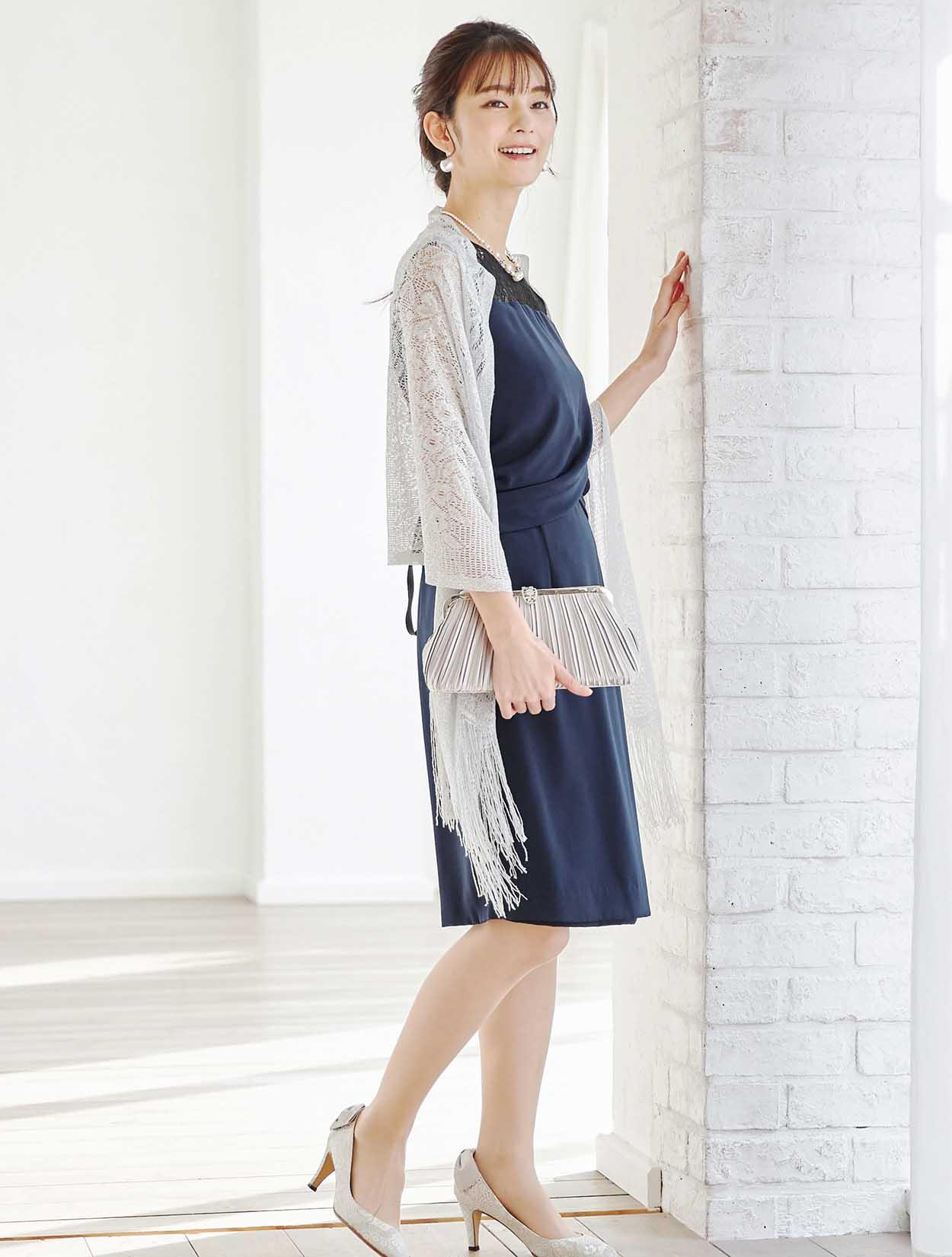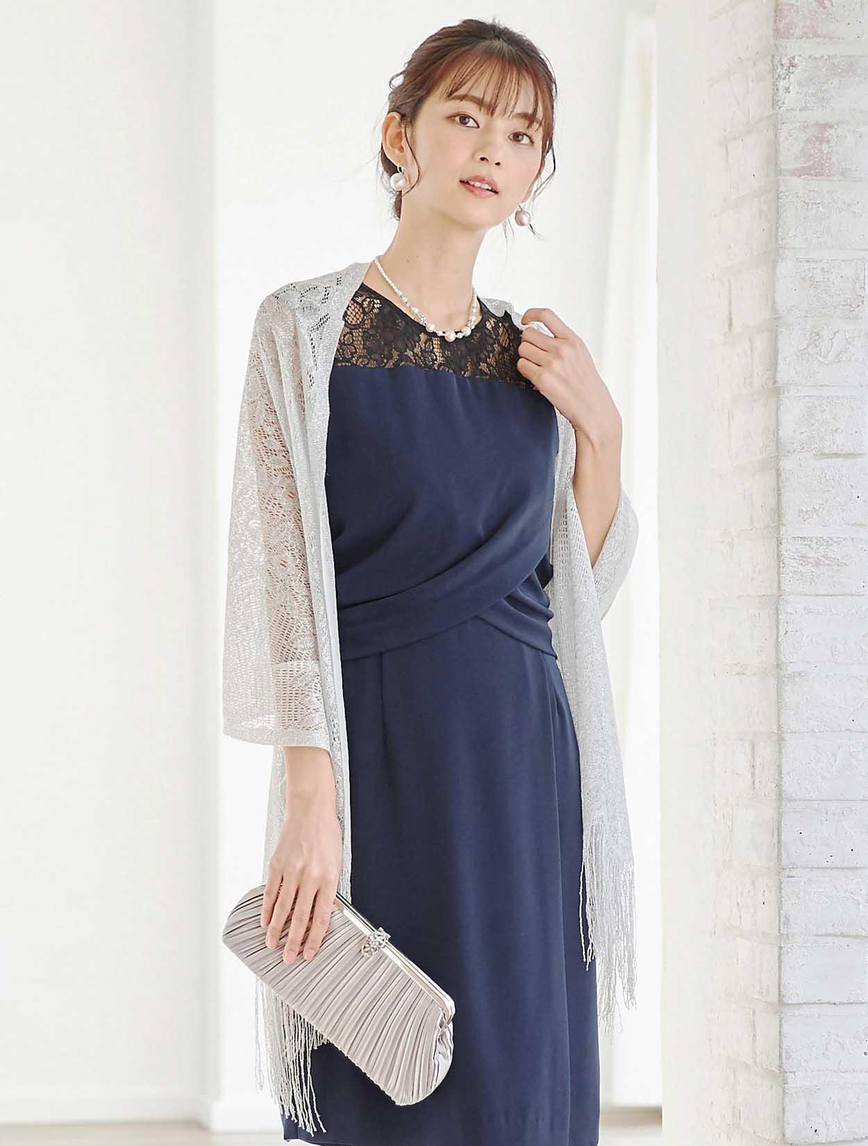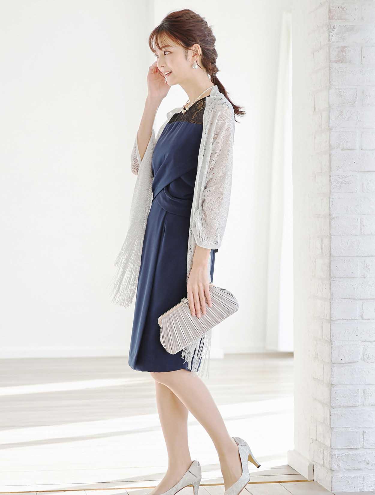 定番ネイビーがレース使いでトレンド感のあるタイトドレスに