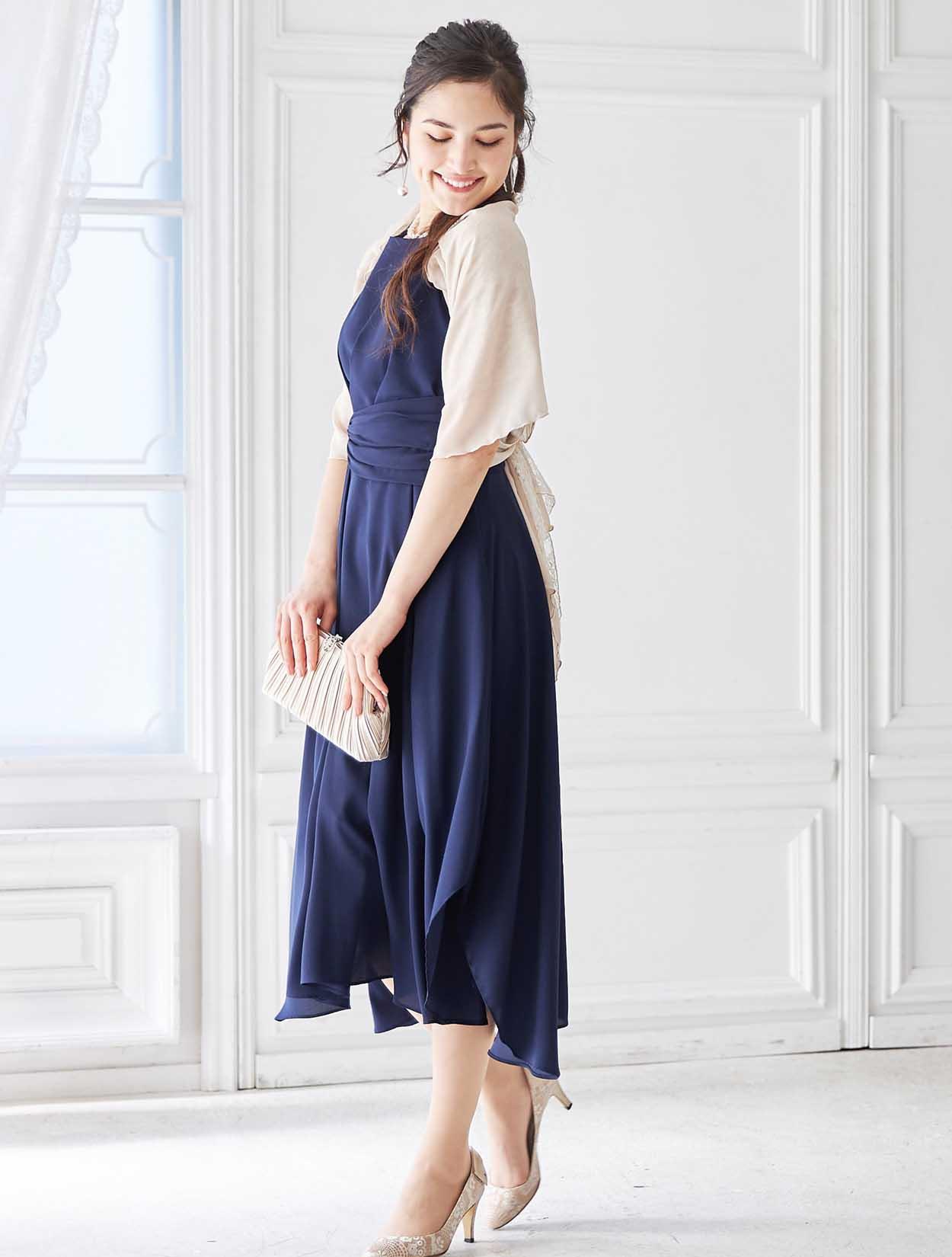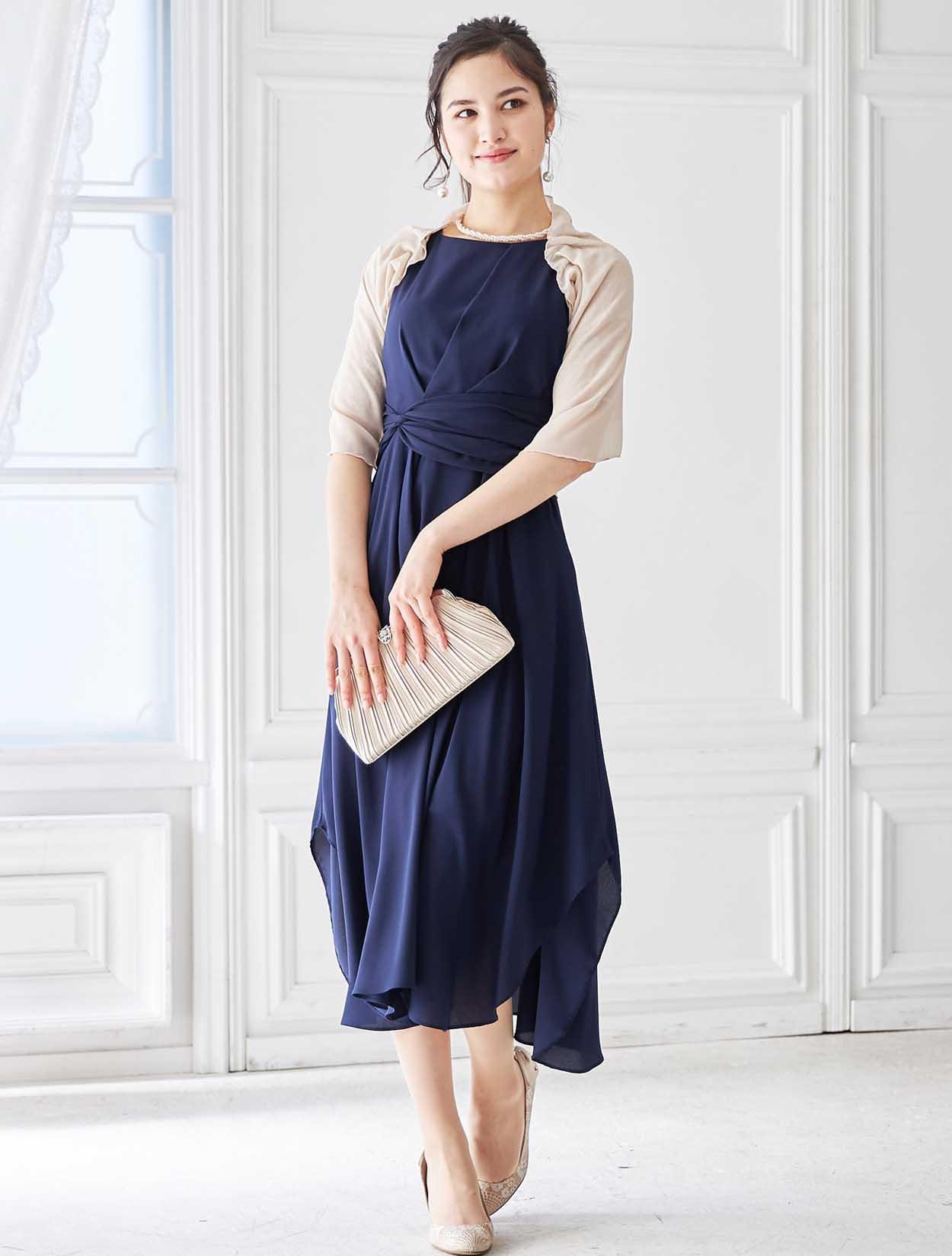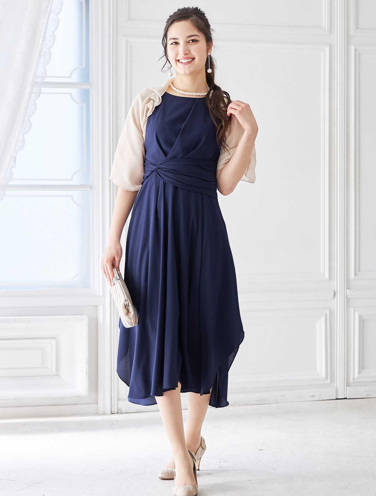 上品で清楚あるネイビーカラーのミディ丈ドレス