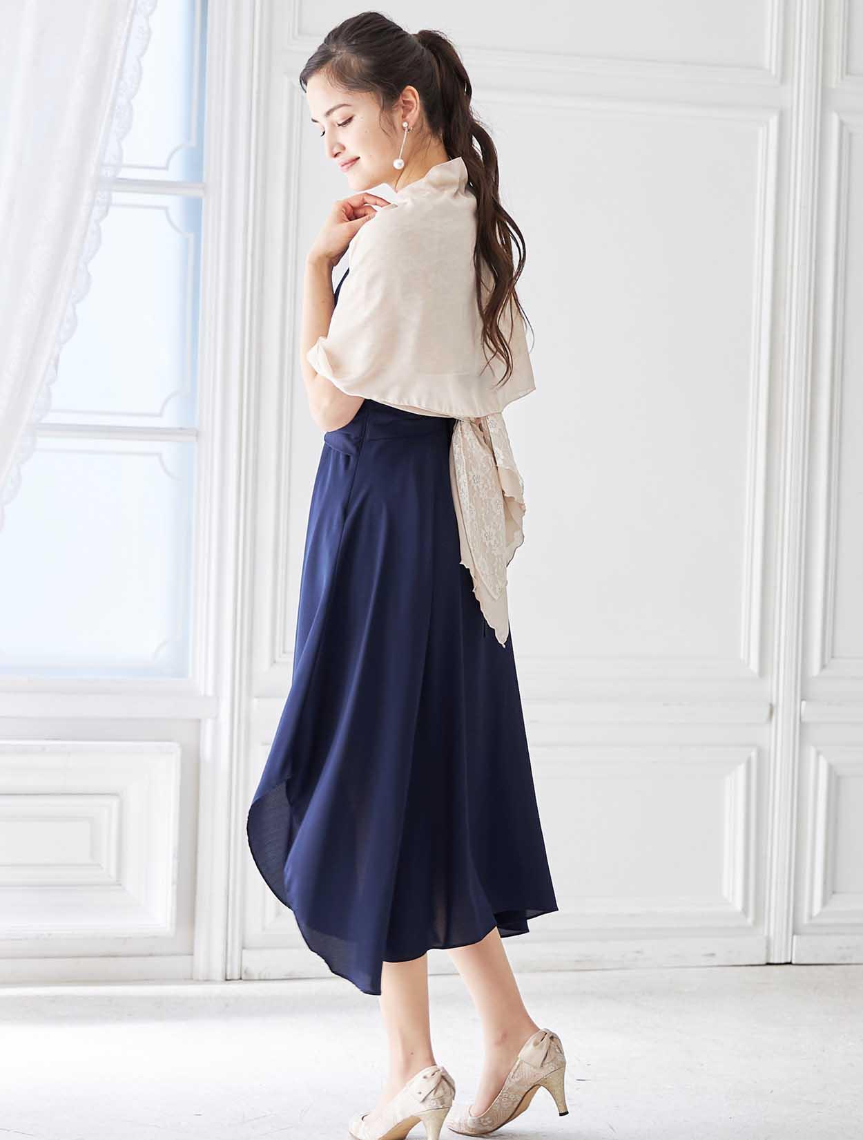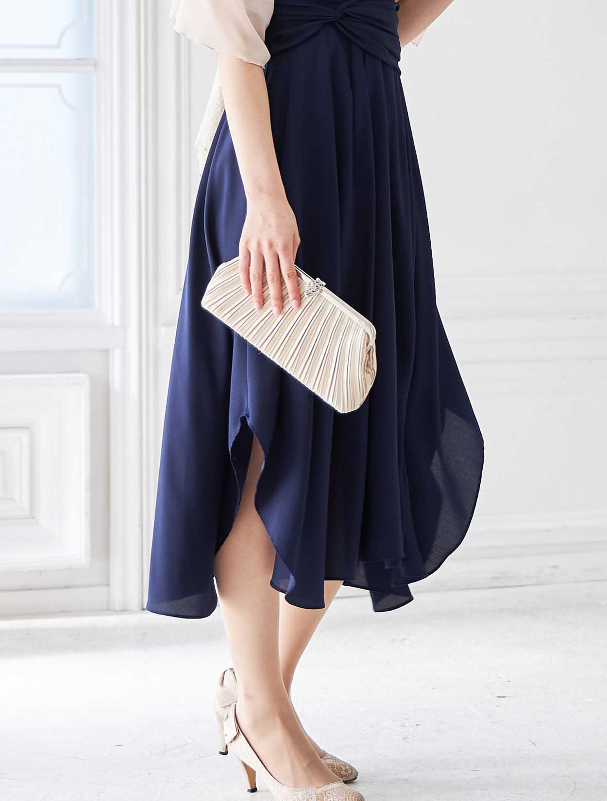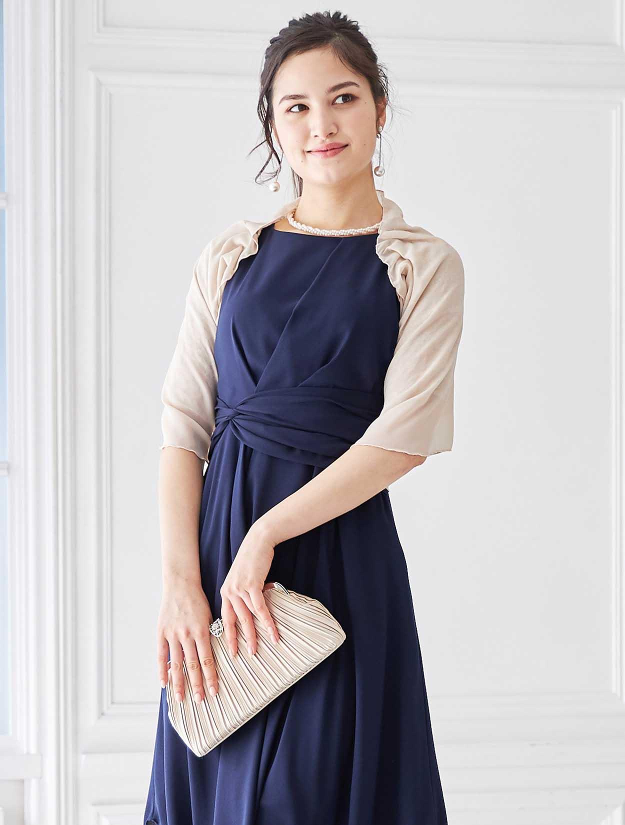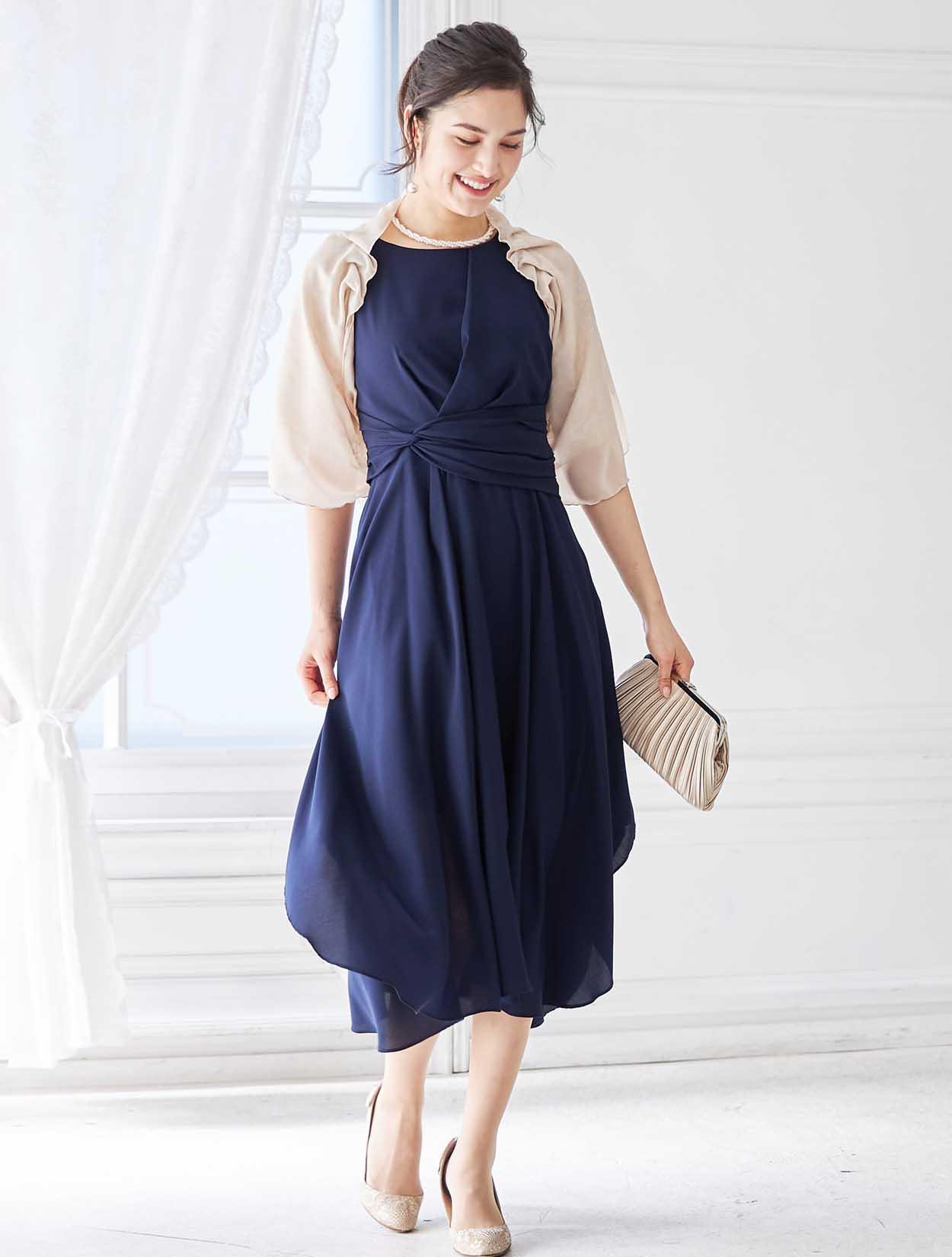 上品で清楚あるネイビーカラーのミディ丈ドレス
