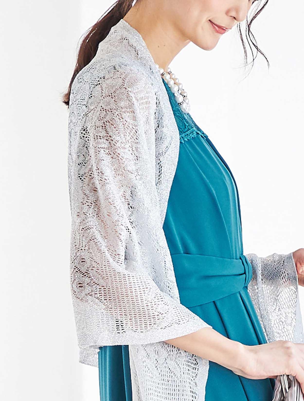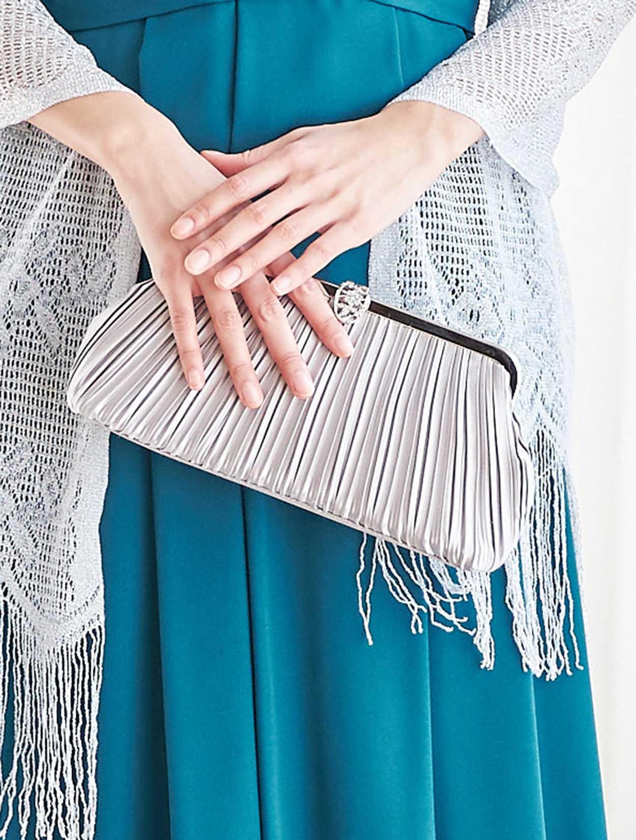 ドレスと同様に軽やかに揺れるラメストールがエレガント。