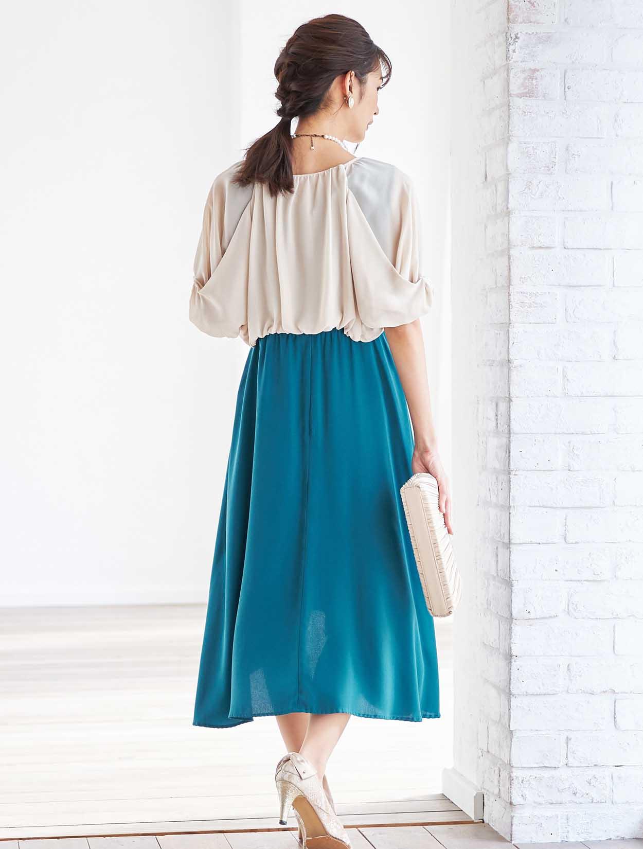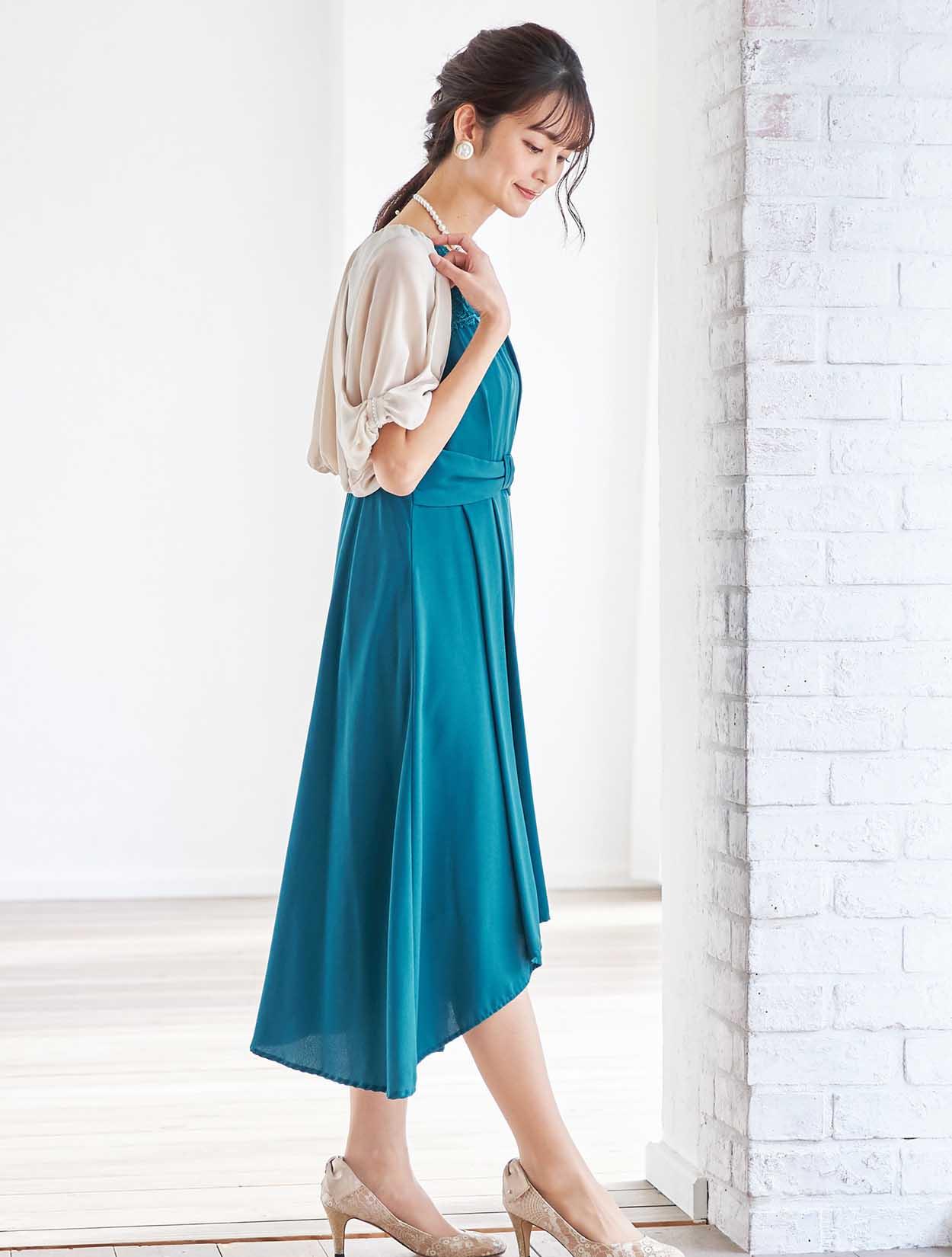 爽やかに揺れるグリーンのフィッシュテールドレス