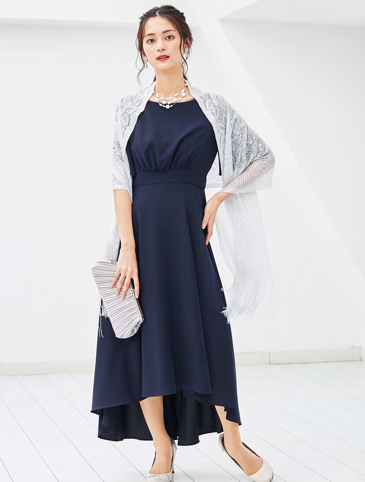 シックなネイビーのロングドレスは、大人の女性にぴったりのドレスです。