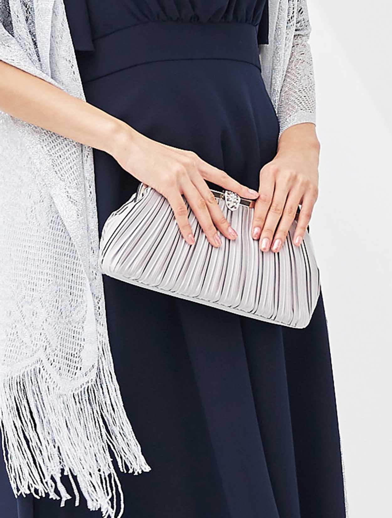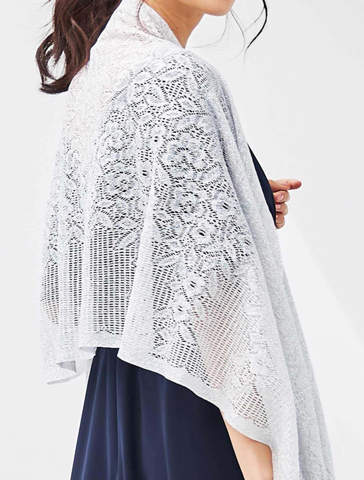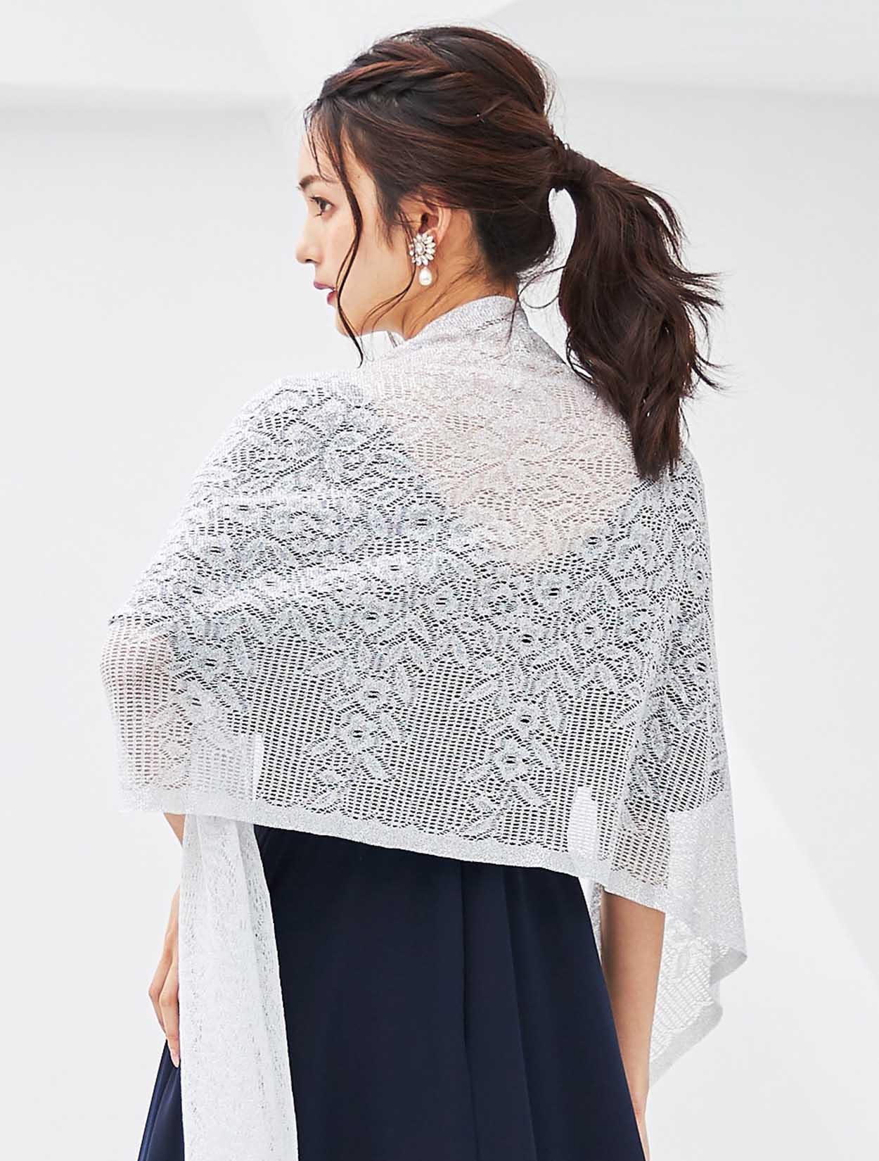 繊細な輝きのラメショールがスッキリとした上品コーディネート。
