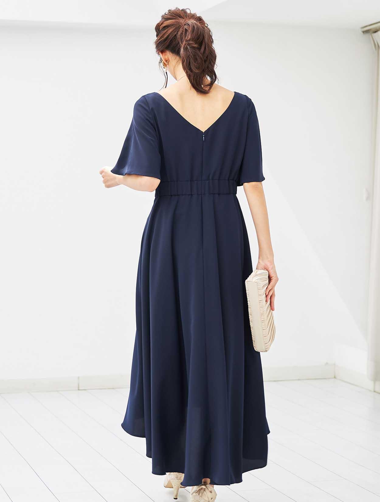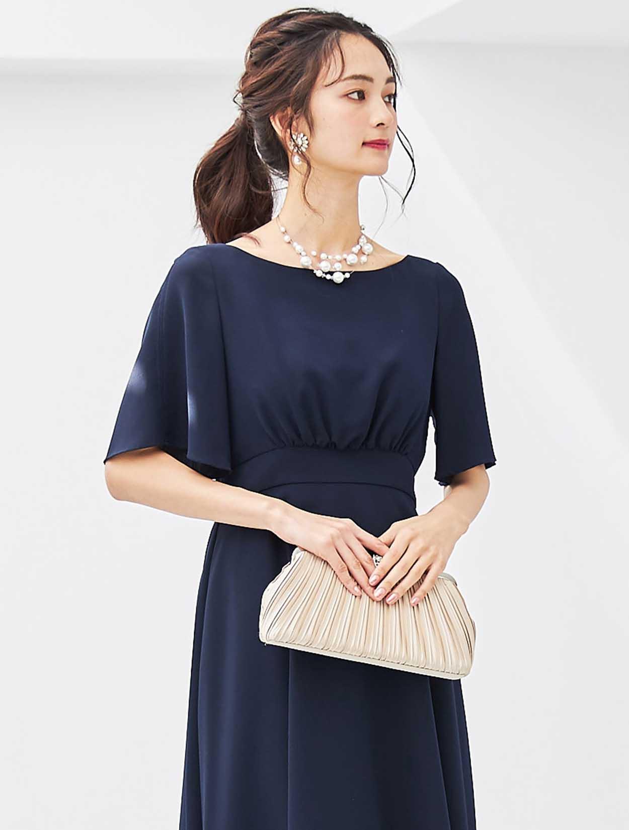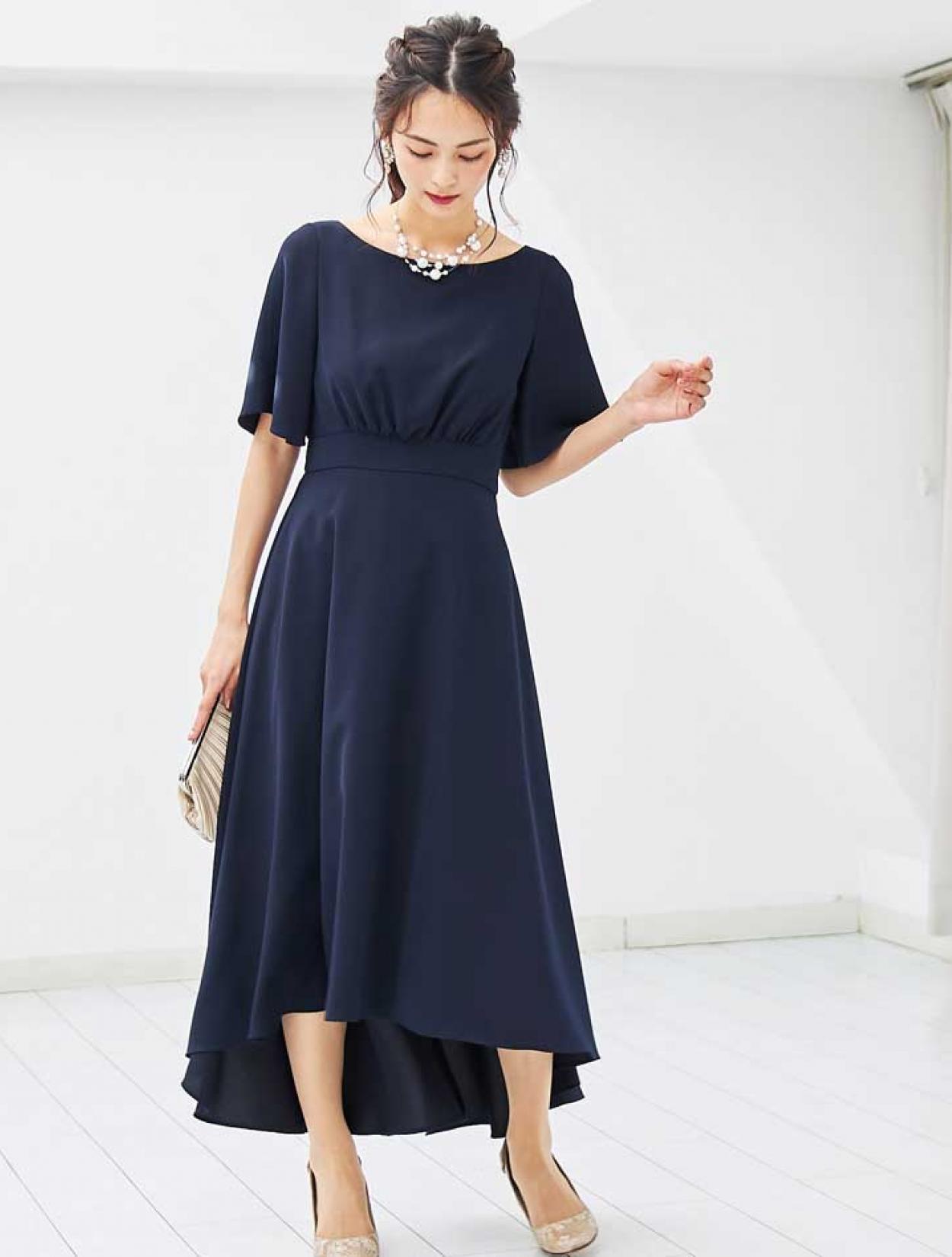 シックなネイビーのロングドレスは、大人の女性にぴったりのドレスです。