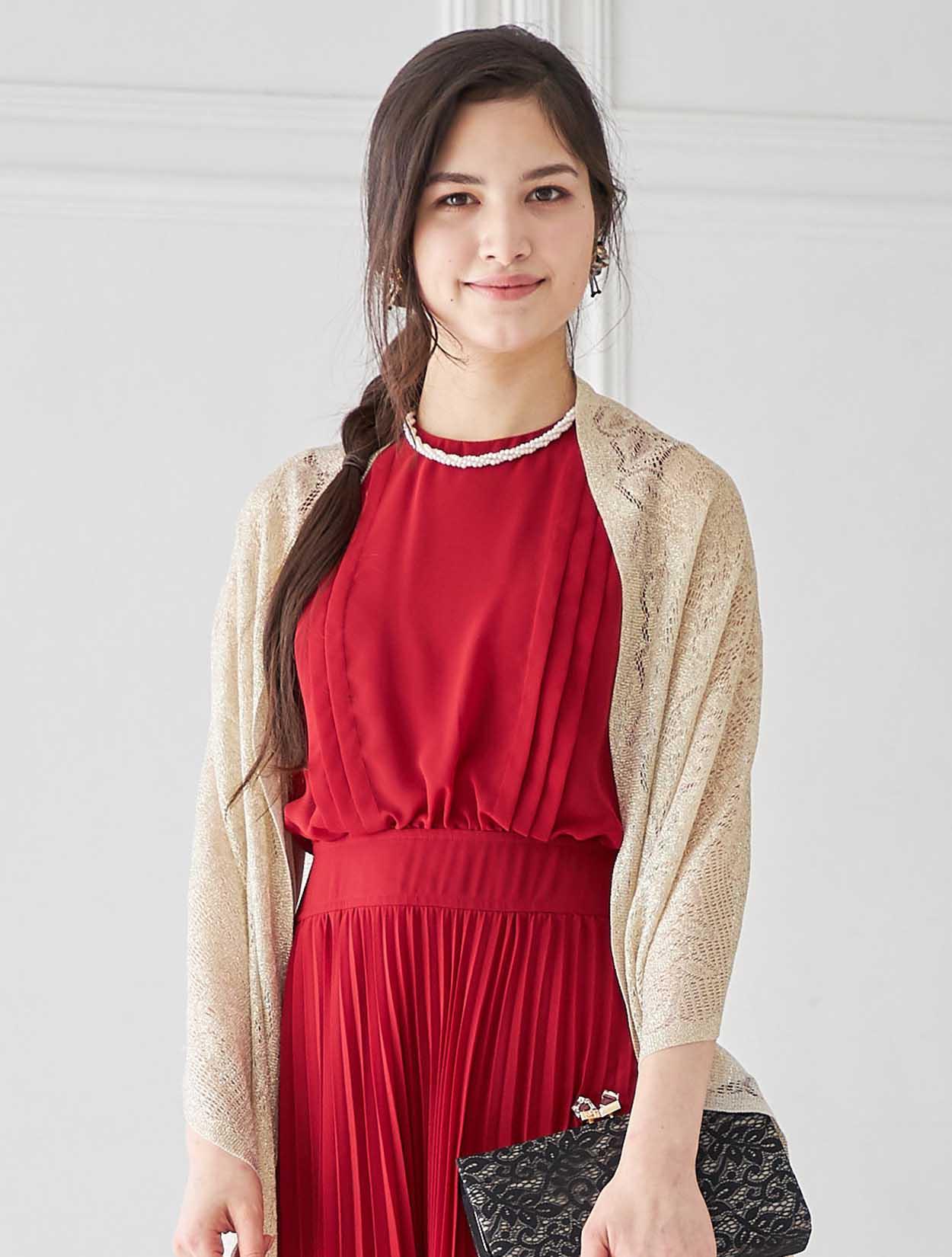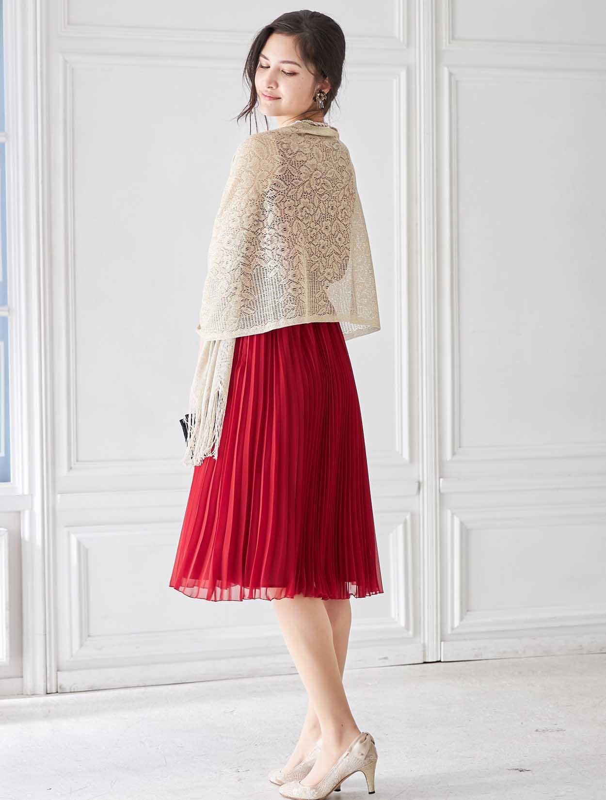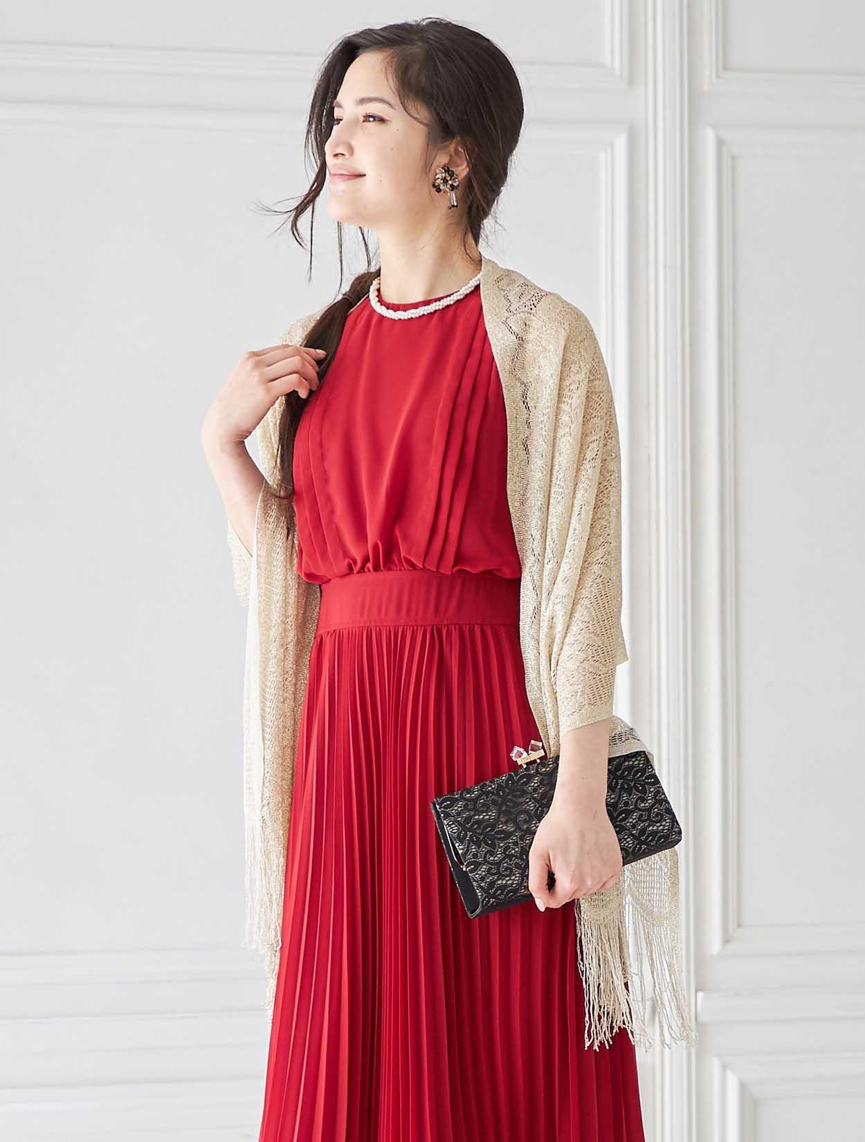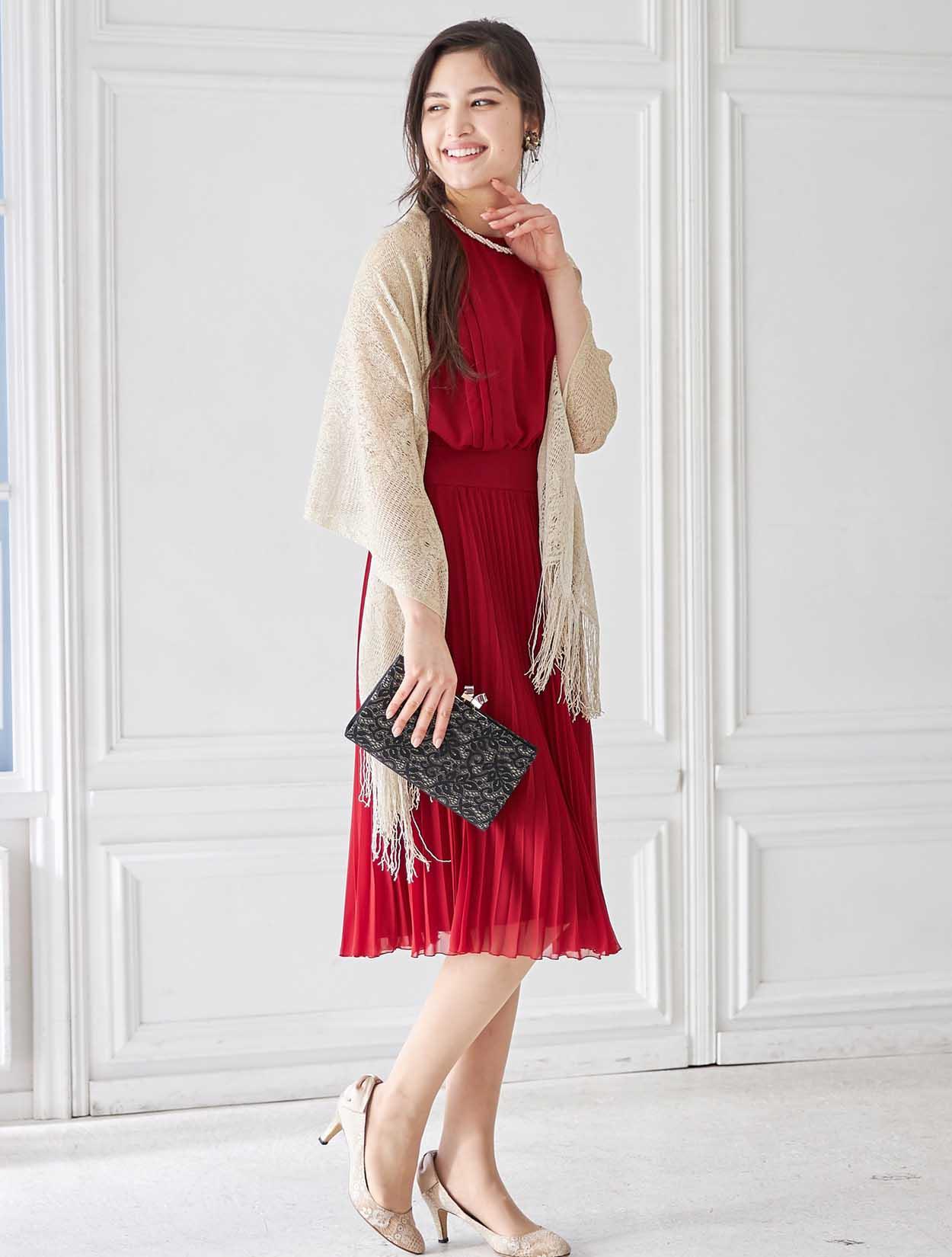 鮮やかレッドのトレンドプリーツドレス