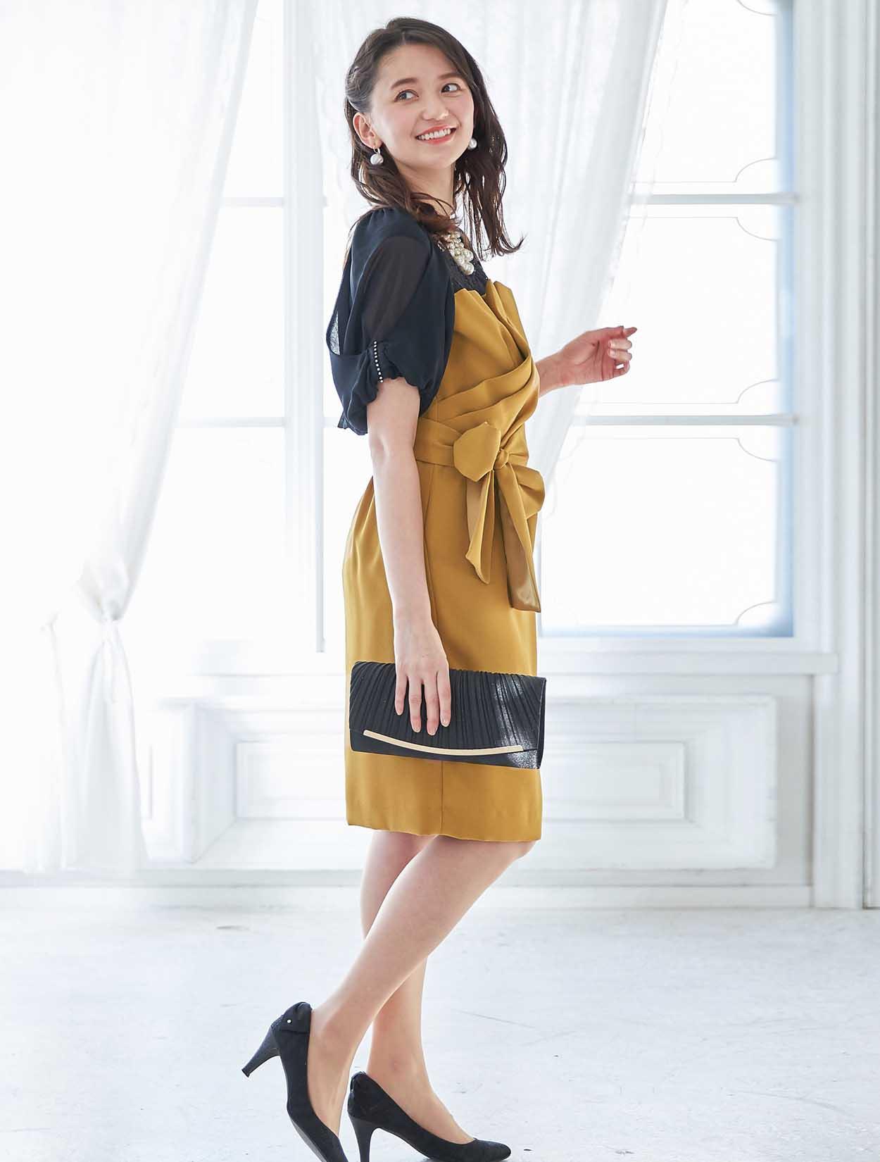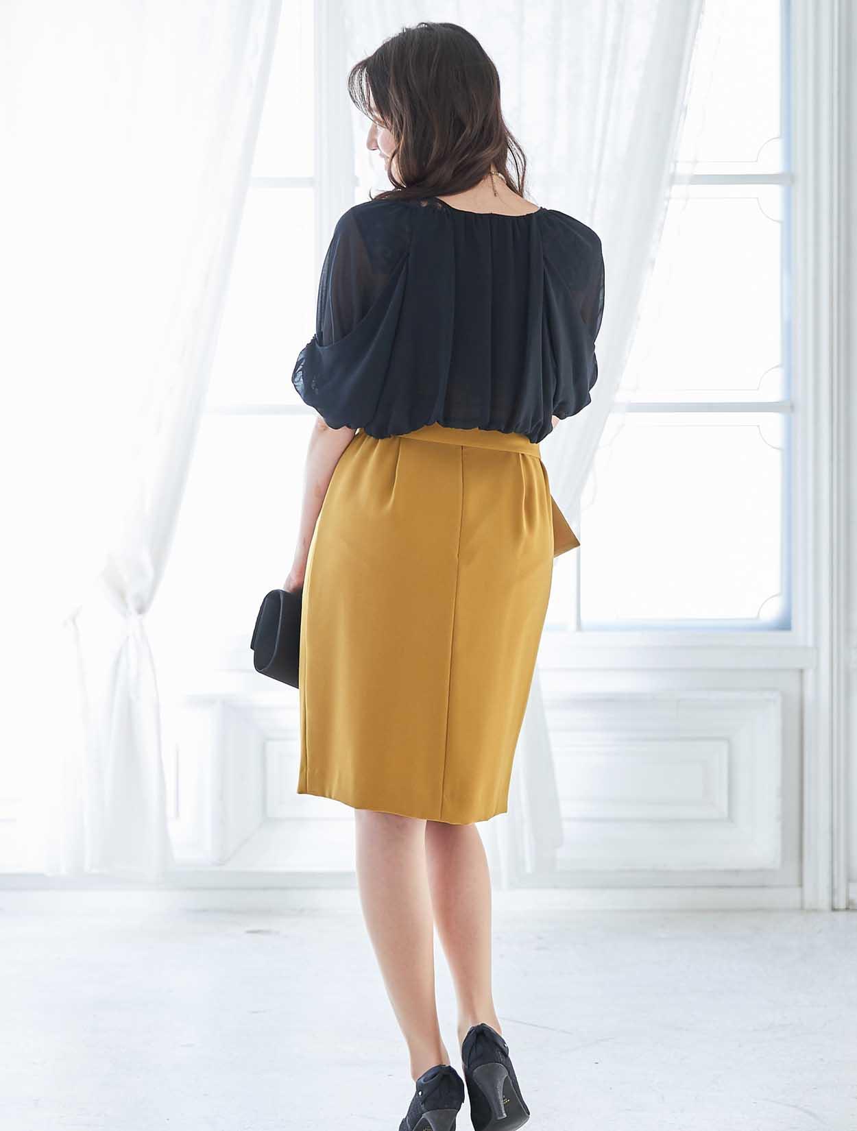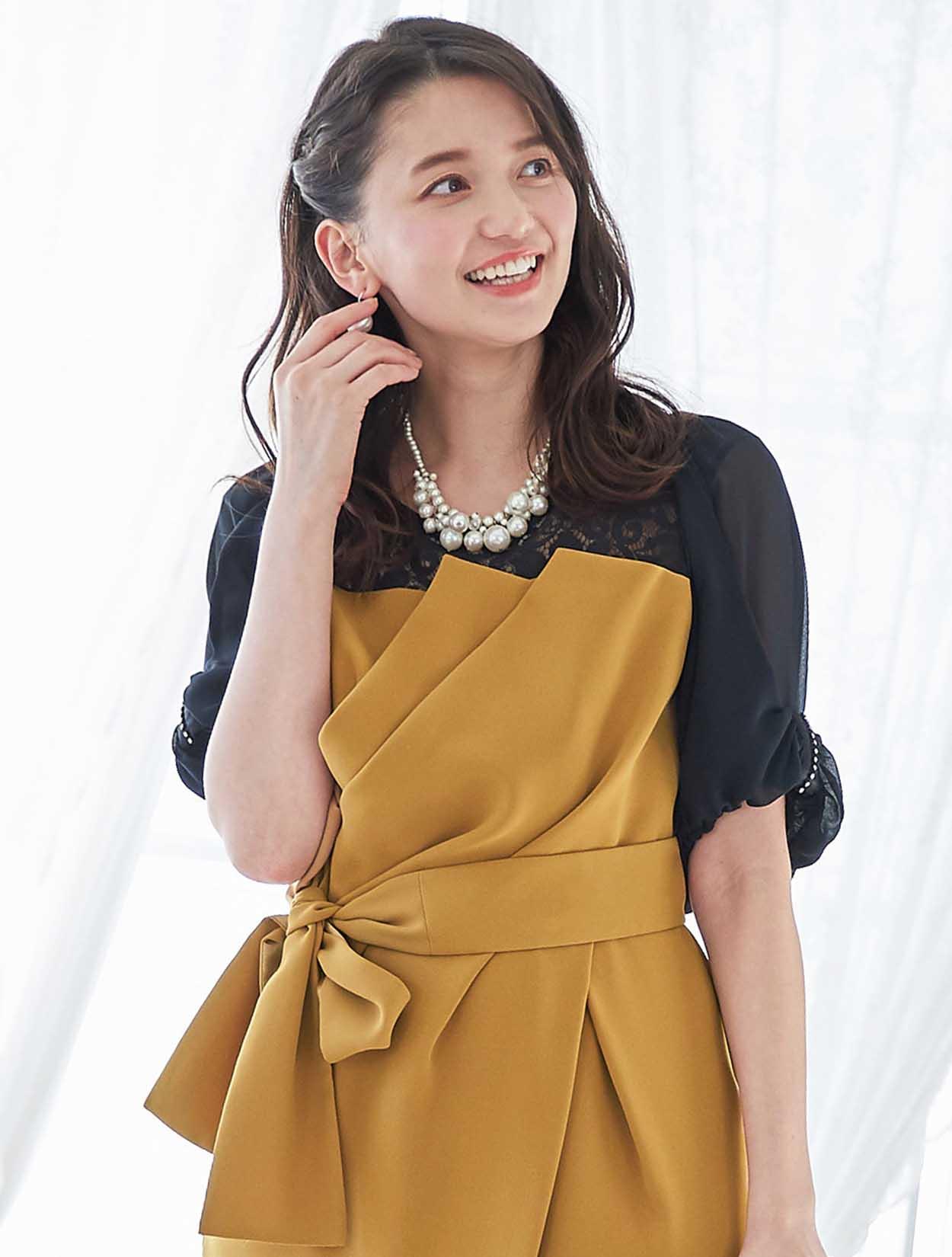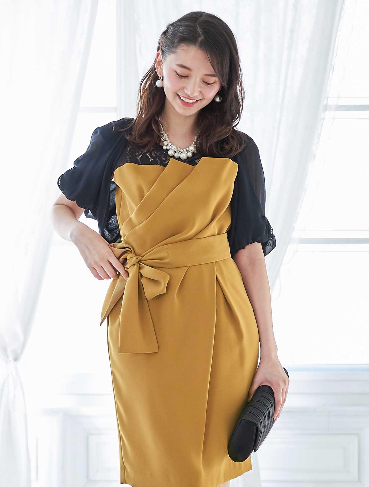 ブラックレース×マスタードイエローの大人カラーコクーンドレス