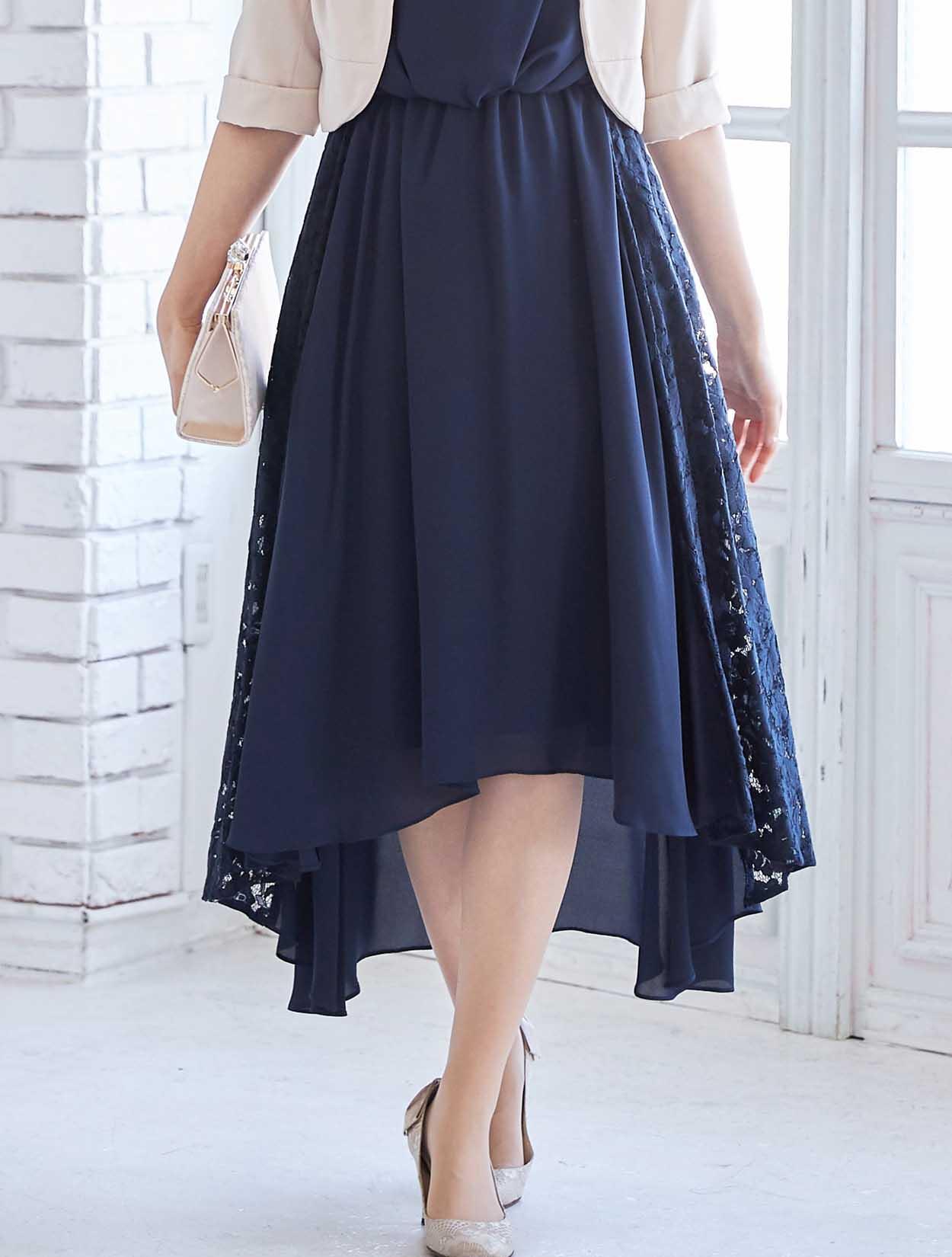 脚をキレイにスタイリングするエレガントなヘム裾ドレス