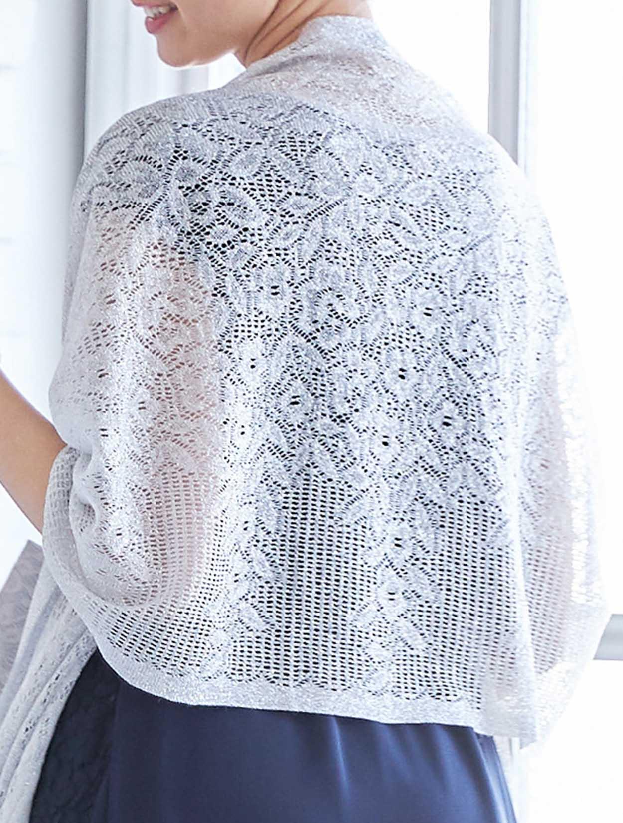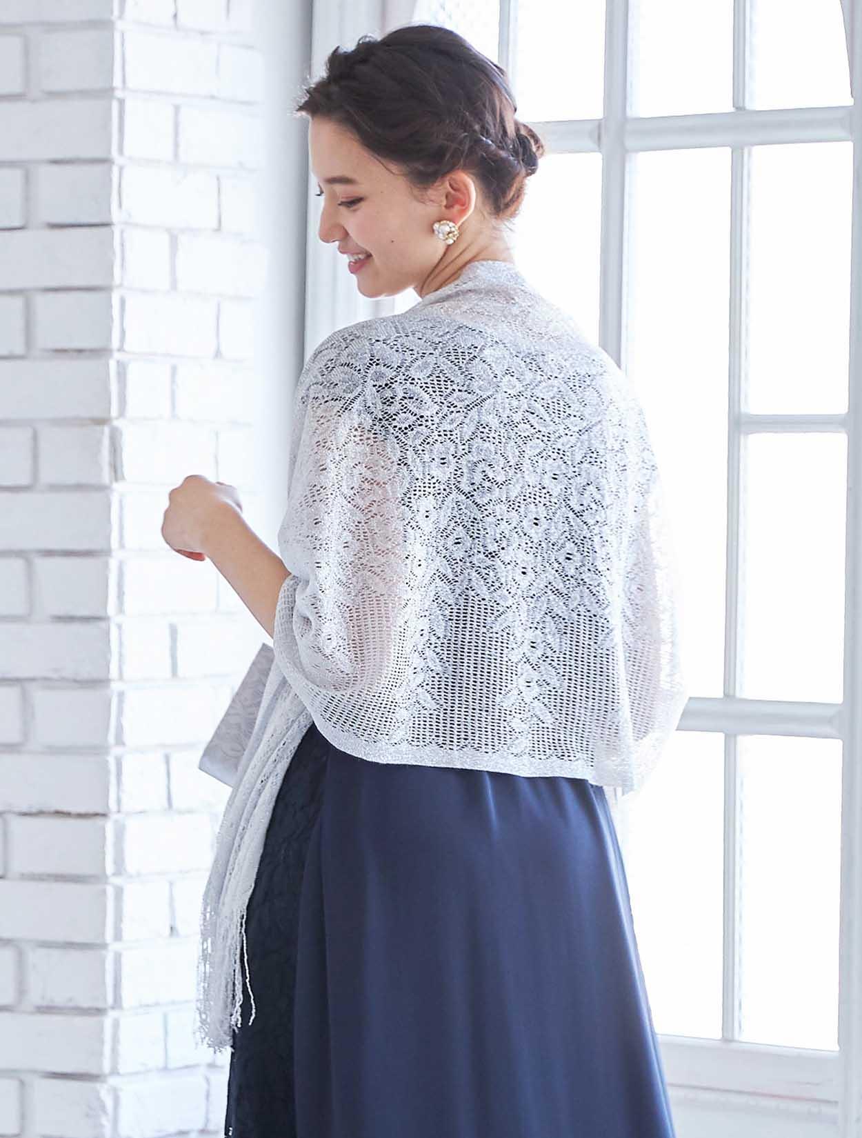 華やかなレースショールに、同じくレースをあしらったバッグがより品のある女性らしさを引き立てます。