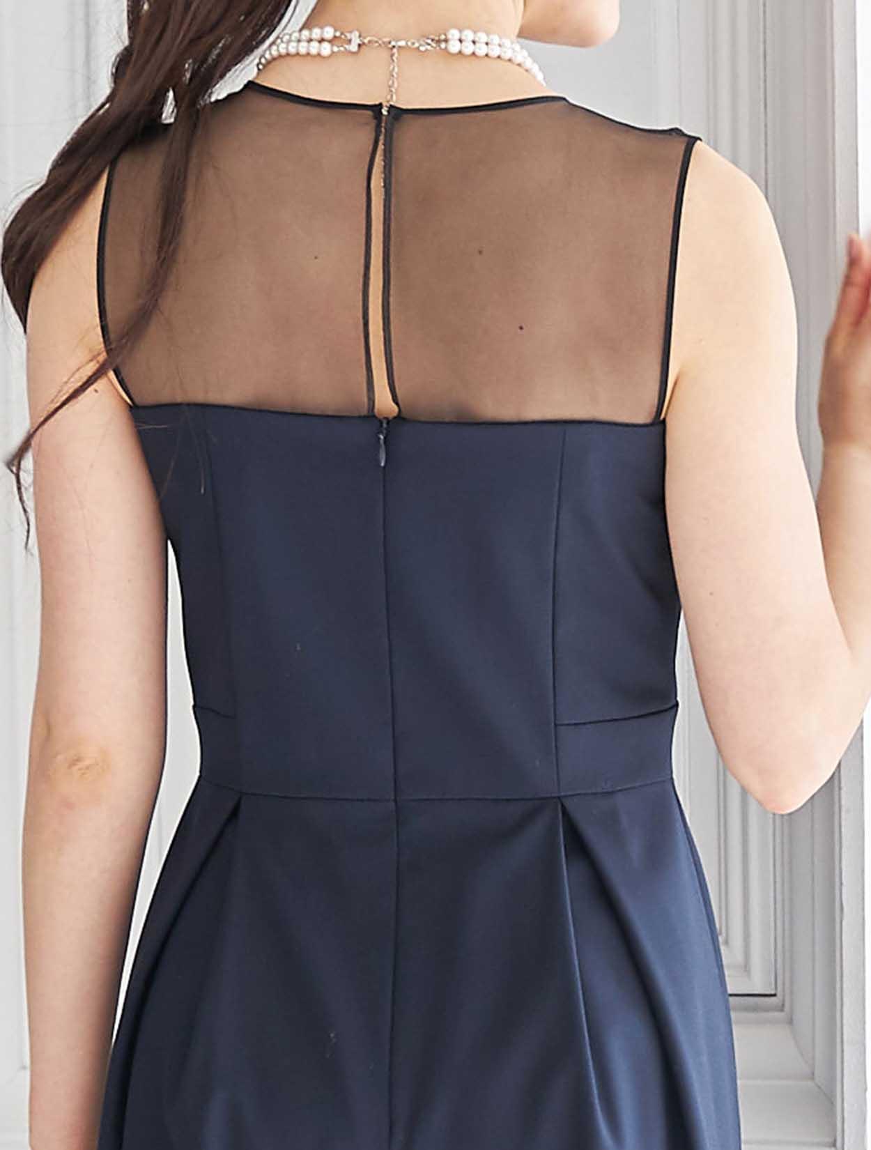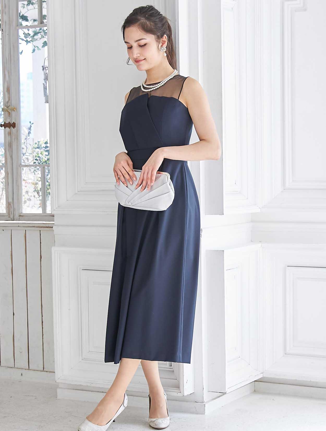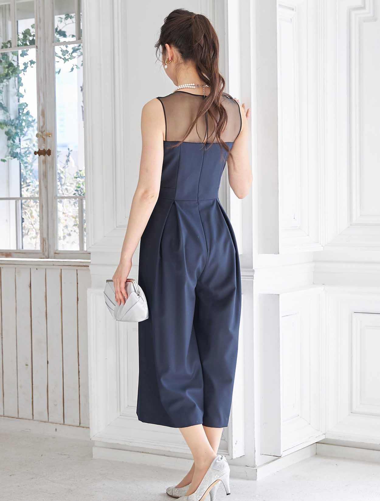 女性らしいオーガンジーのシアーな透け感がポイントのビスチェパンツドレス