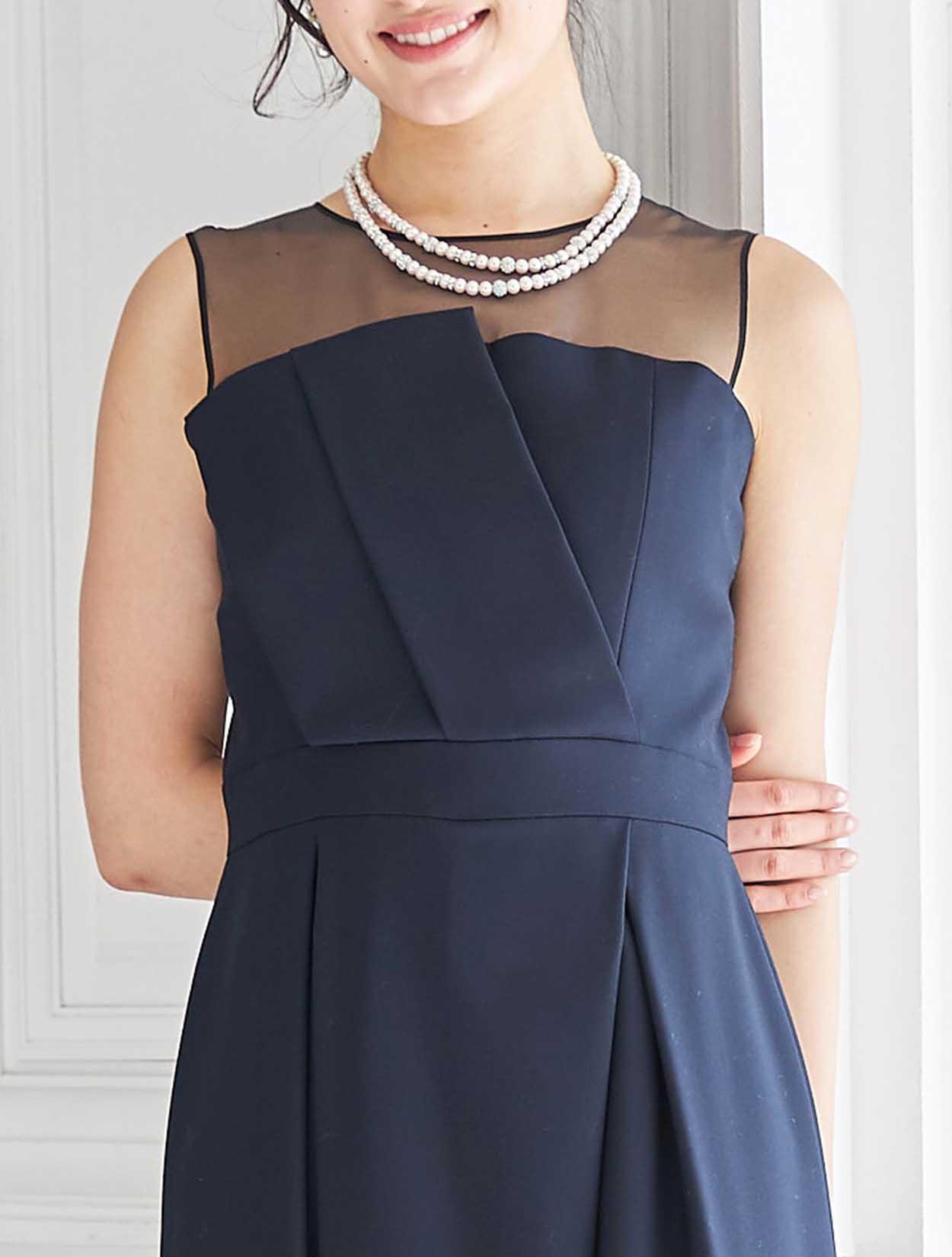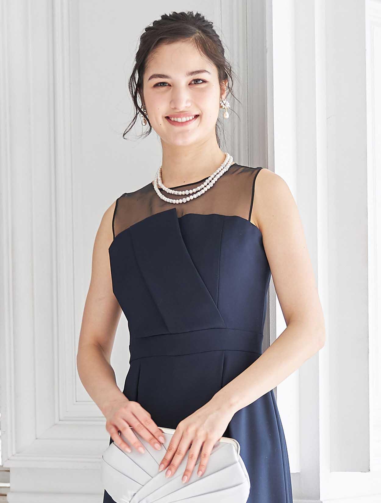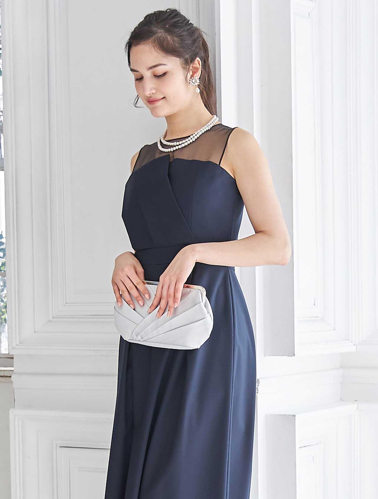 端正なネイビーとオーガンジーのシアーなブラックが、モードな表情の大人のカラーバランス。シックな配色で幅広い年代の方におすすめです。