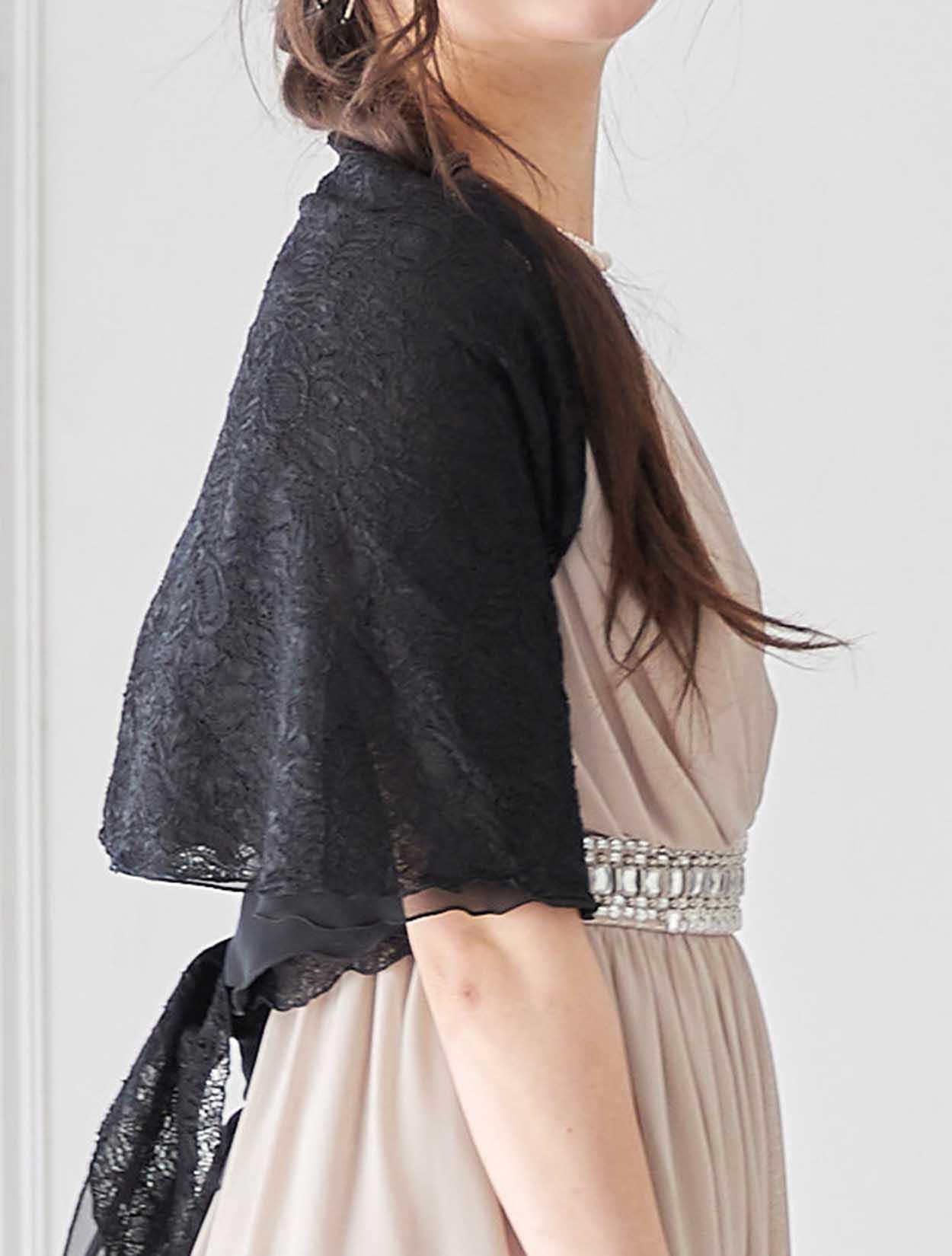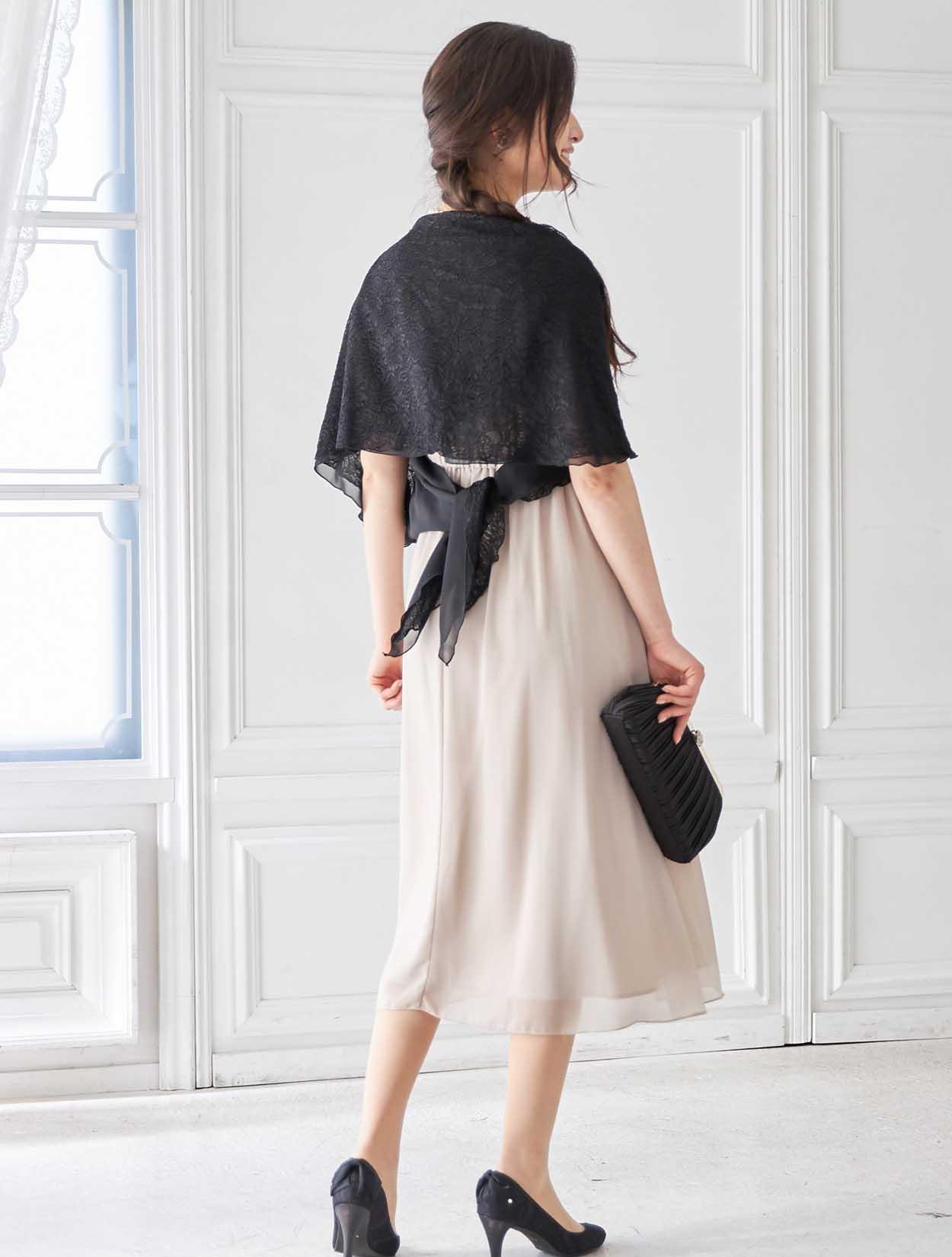 ブラックレースのショールを合わせたメリハリある大人の上品スタイル。