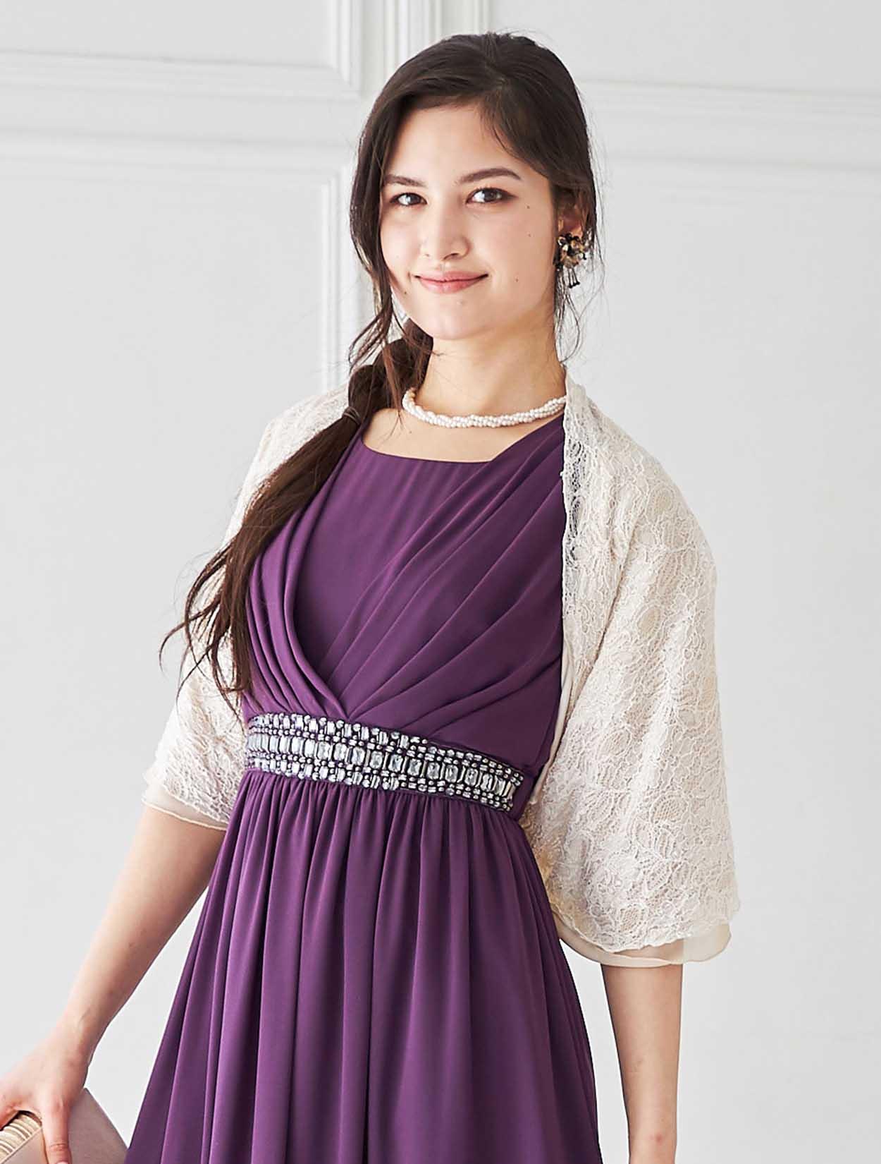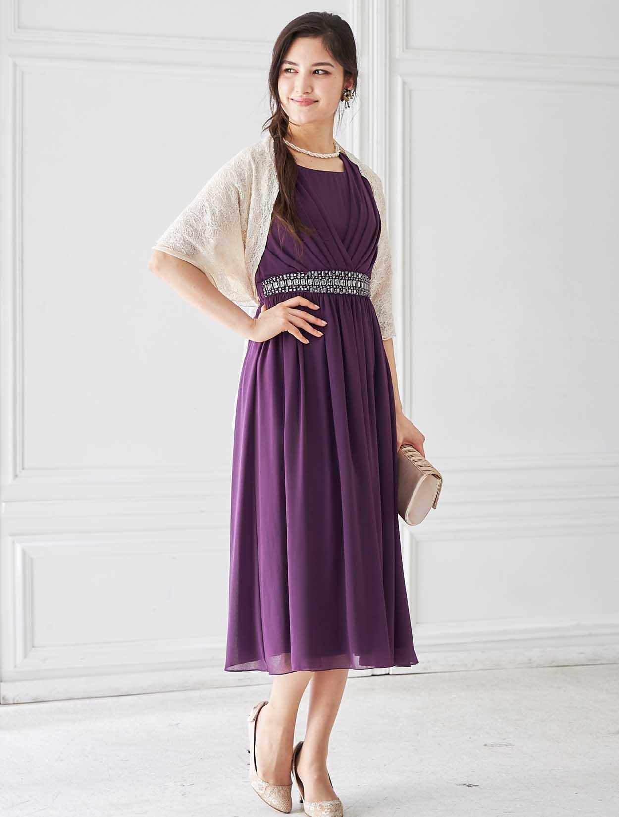 エキゾチックでエレガントなパープルカラーは、是非大人の女性に着てほしいカラー。周りと差が付く個性的なカラードレスです。