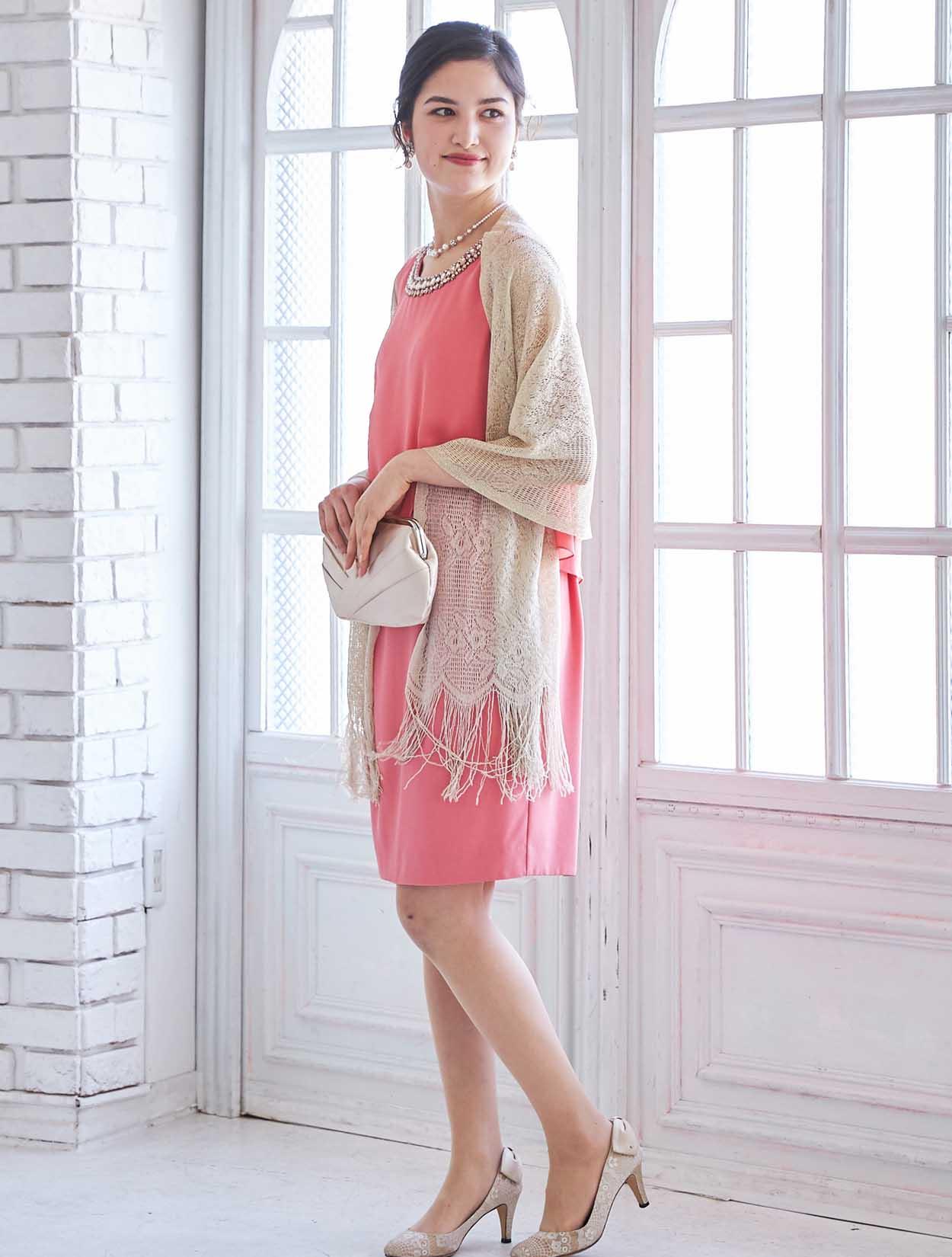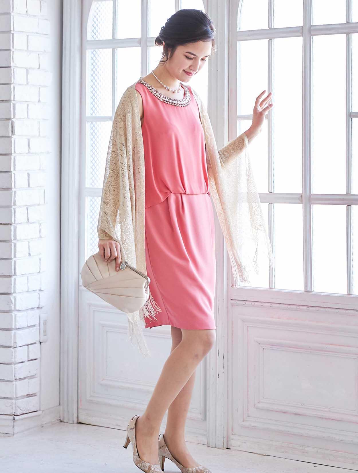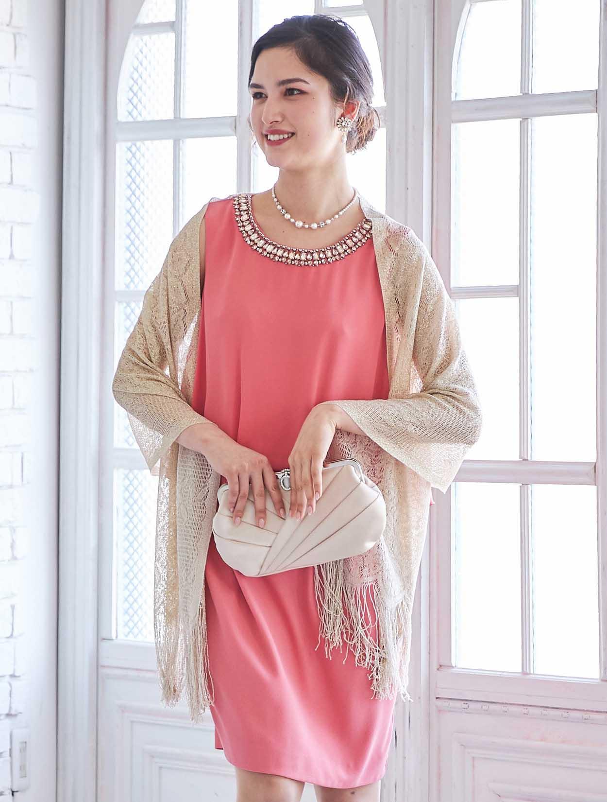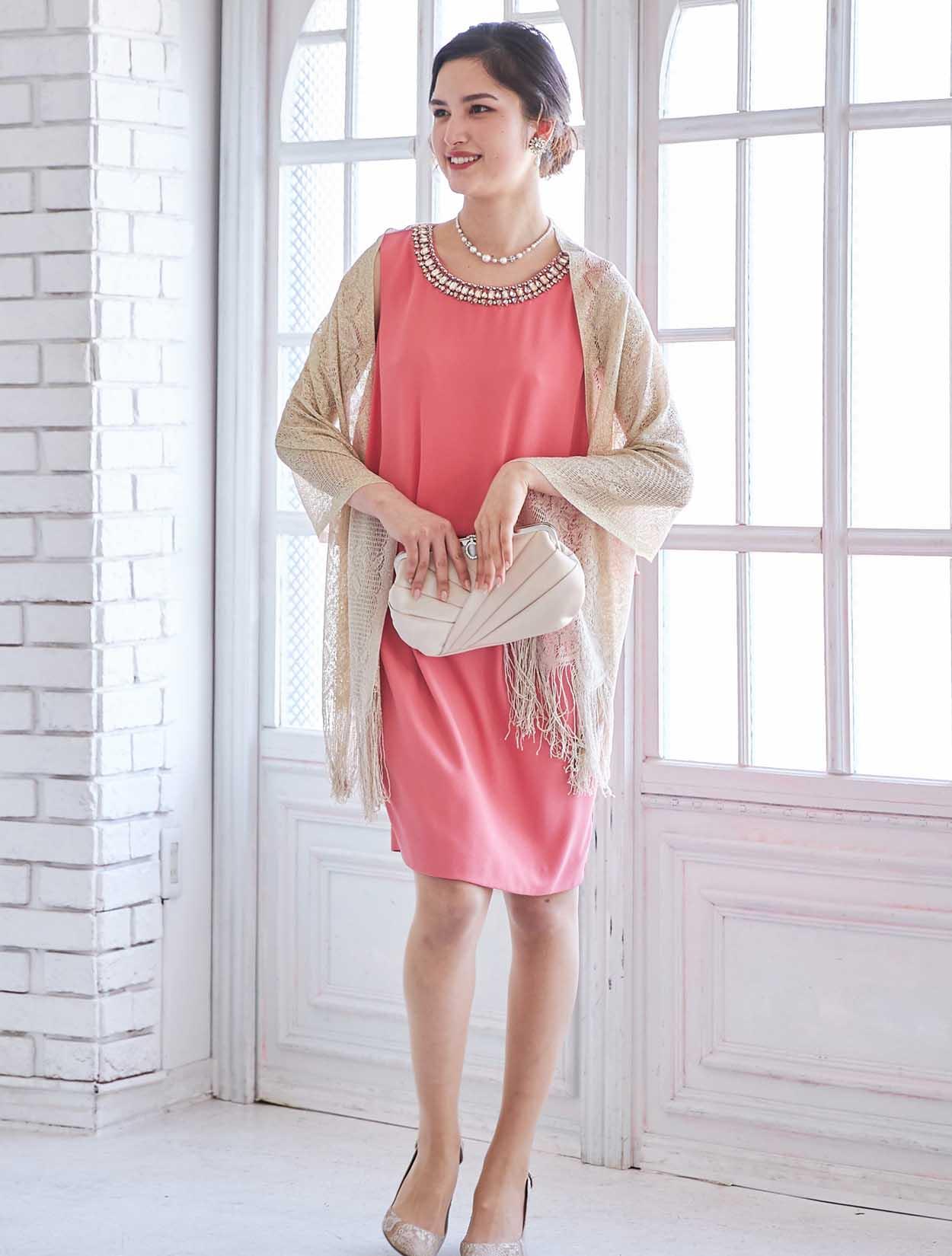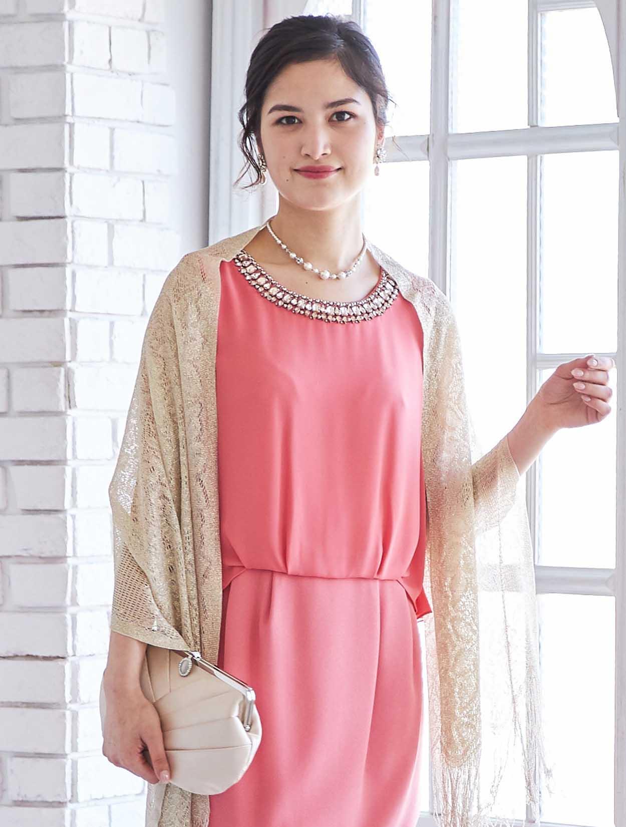 艶やかなピンクが楽しめるビジュー付きドレス
