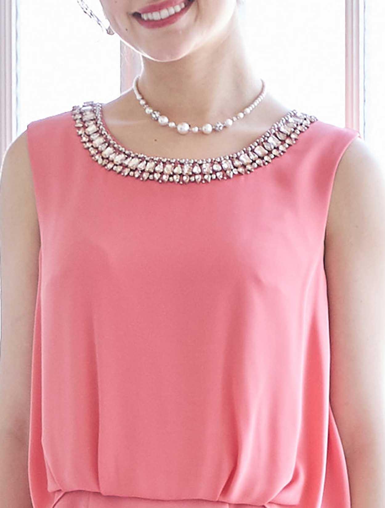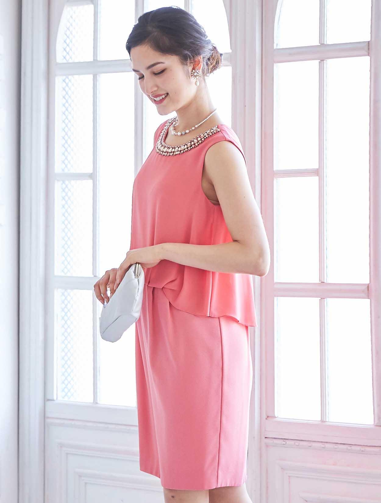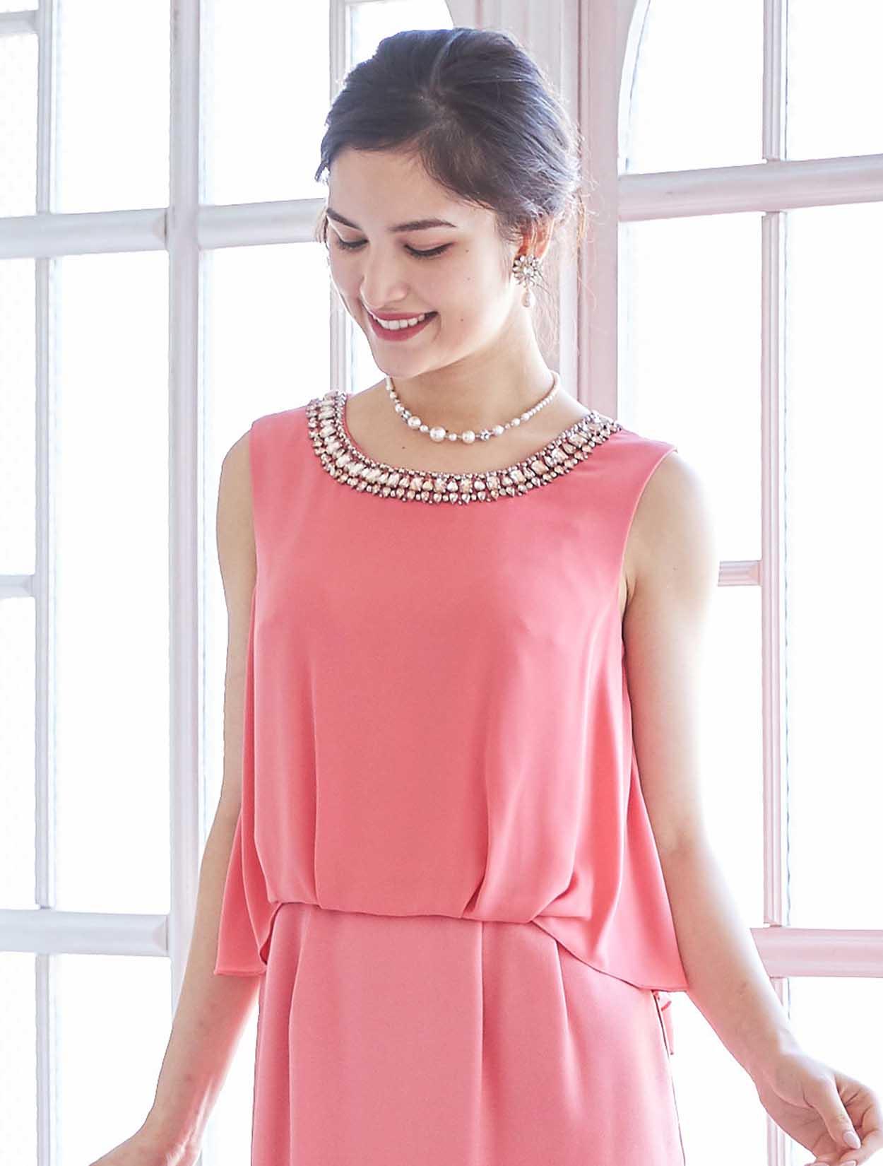 艶やかなピンクが楽しめるビジュー付きドレス