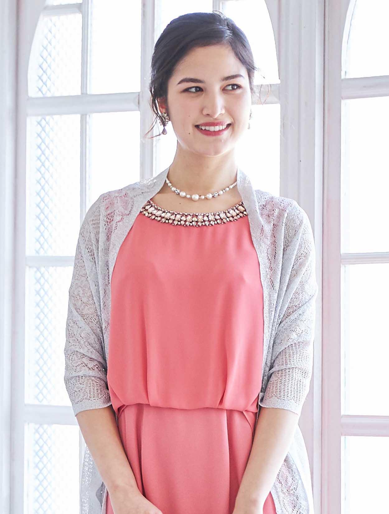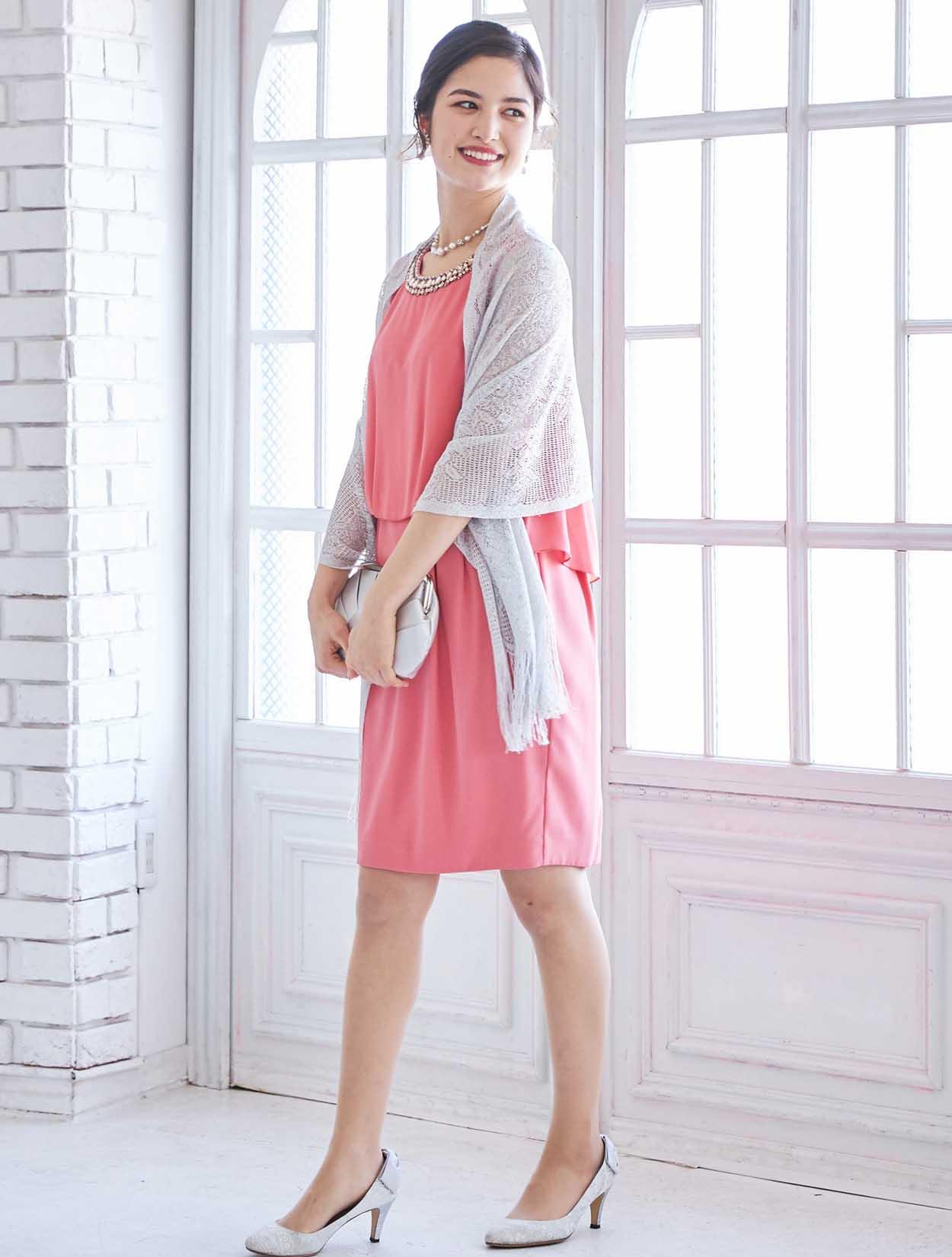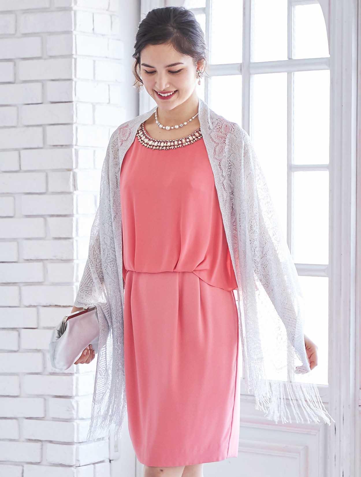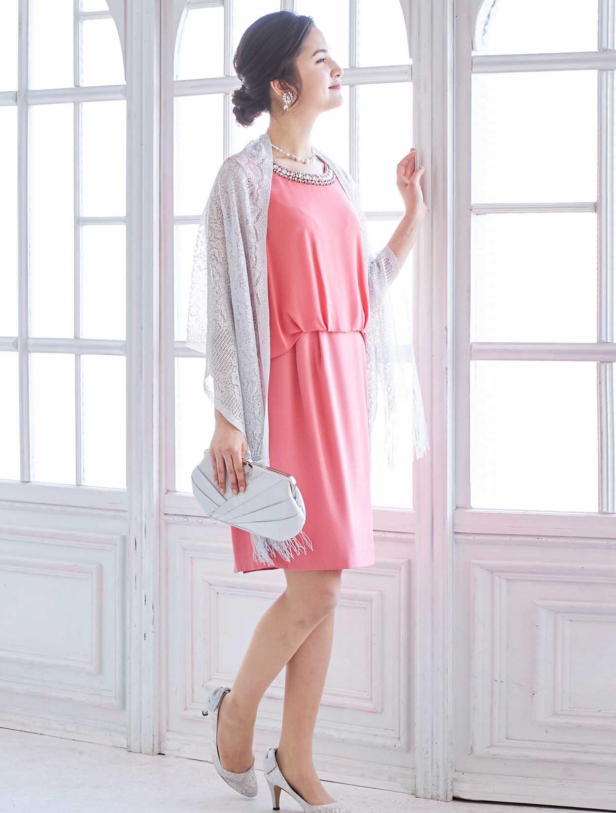 艶やかなピンクが楽しめるビジュー付きドレス