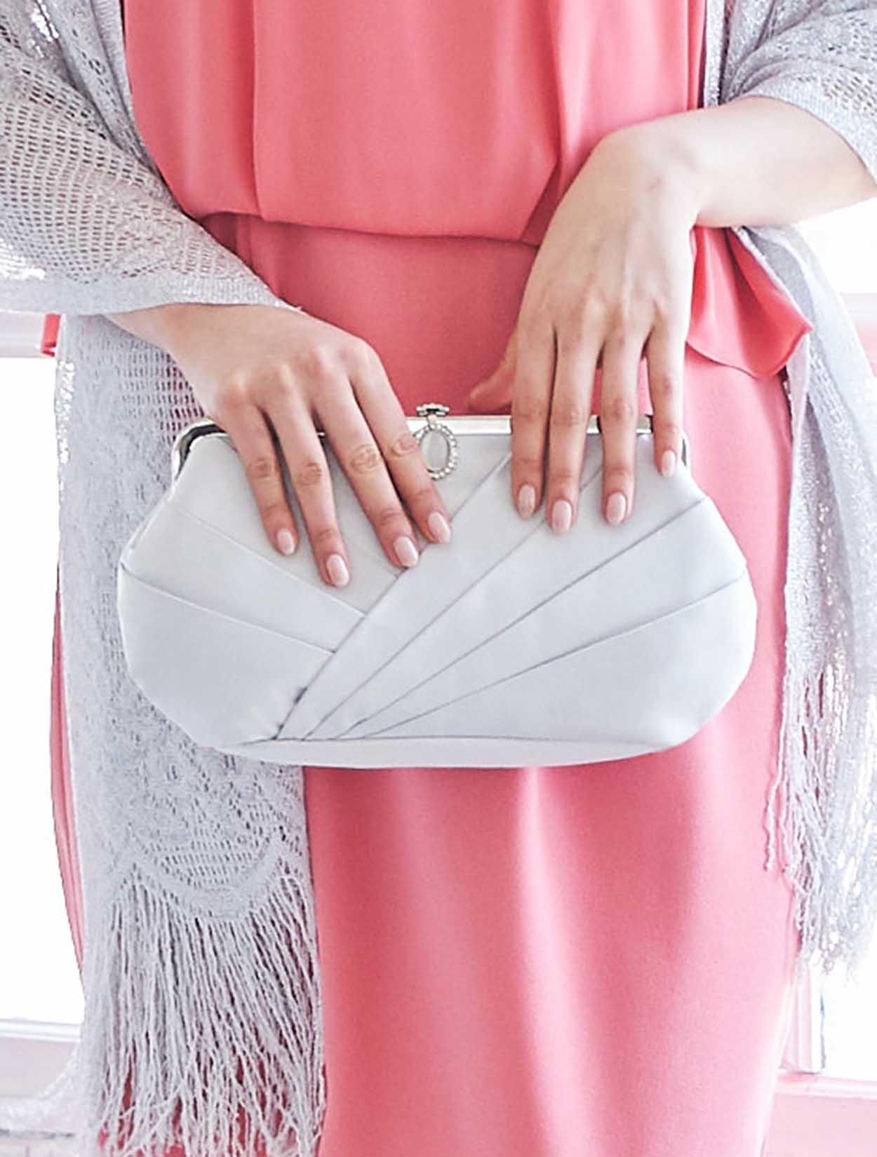 シルバー系の小物を合わせた爽やかなコーディネート。特に春夏の結婚式におすすめです。