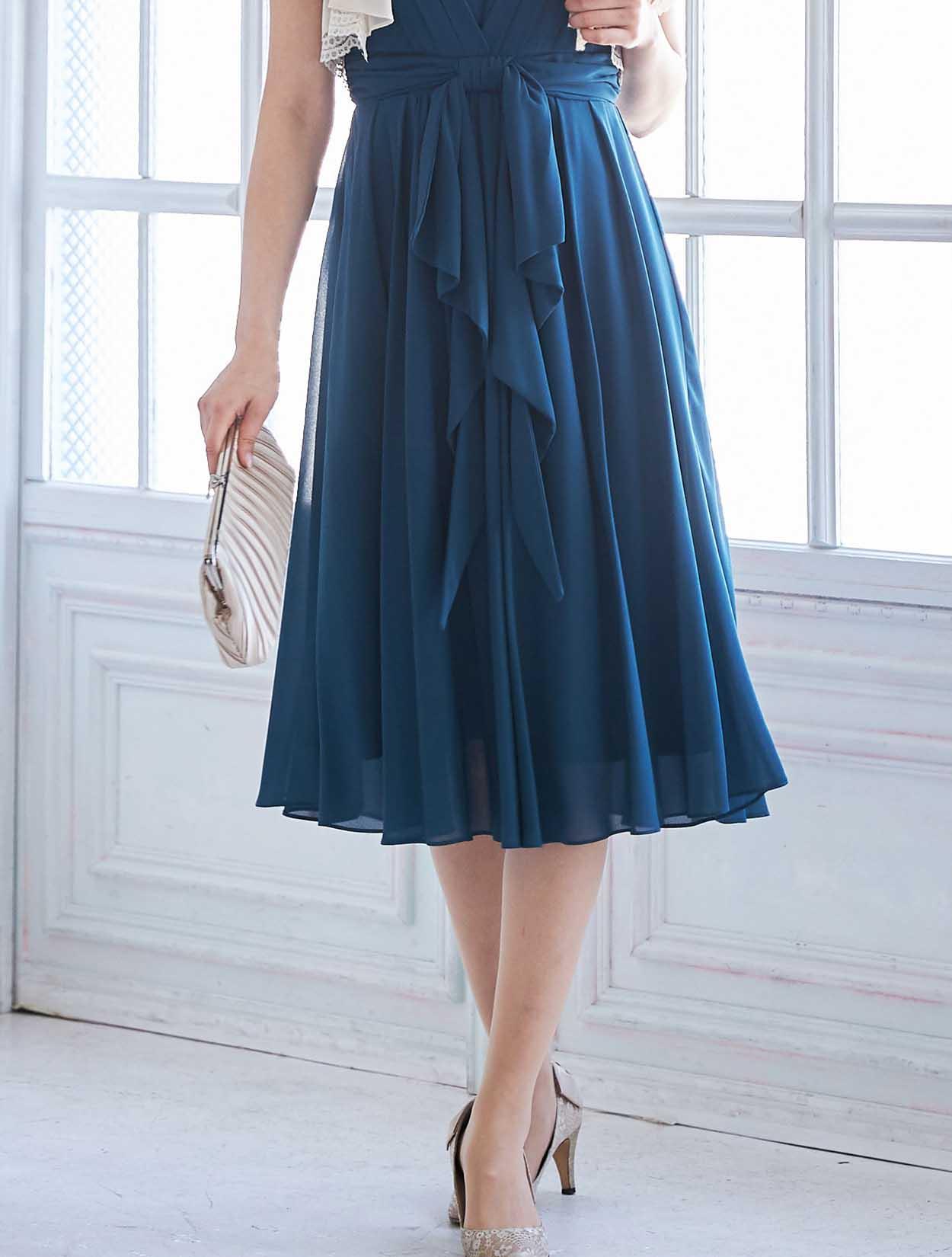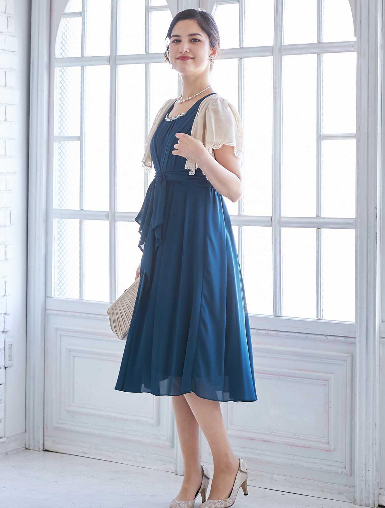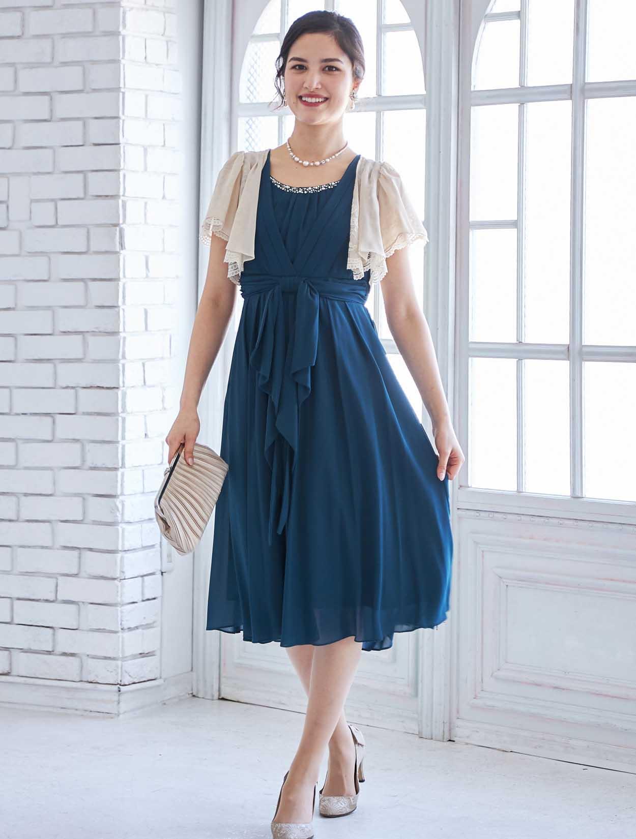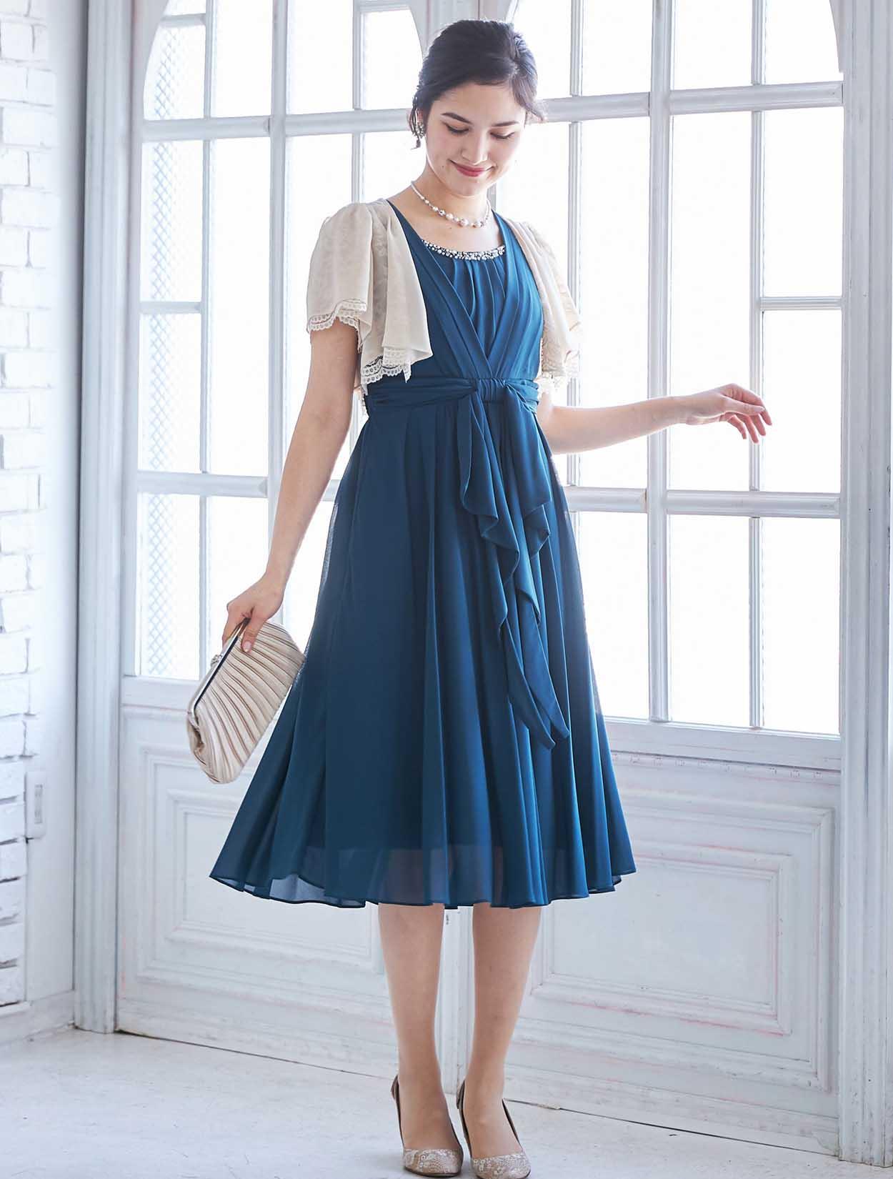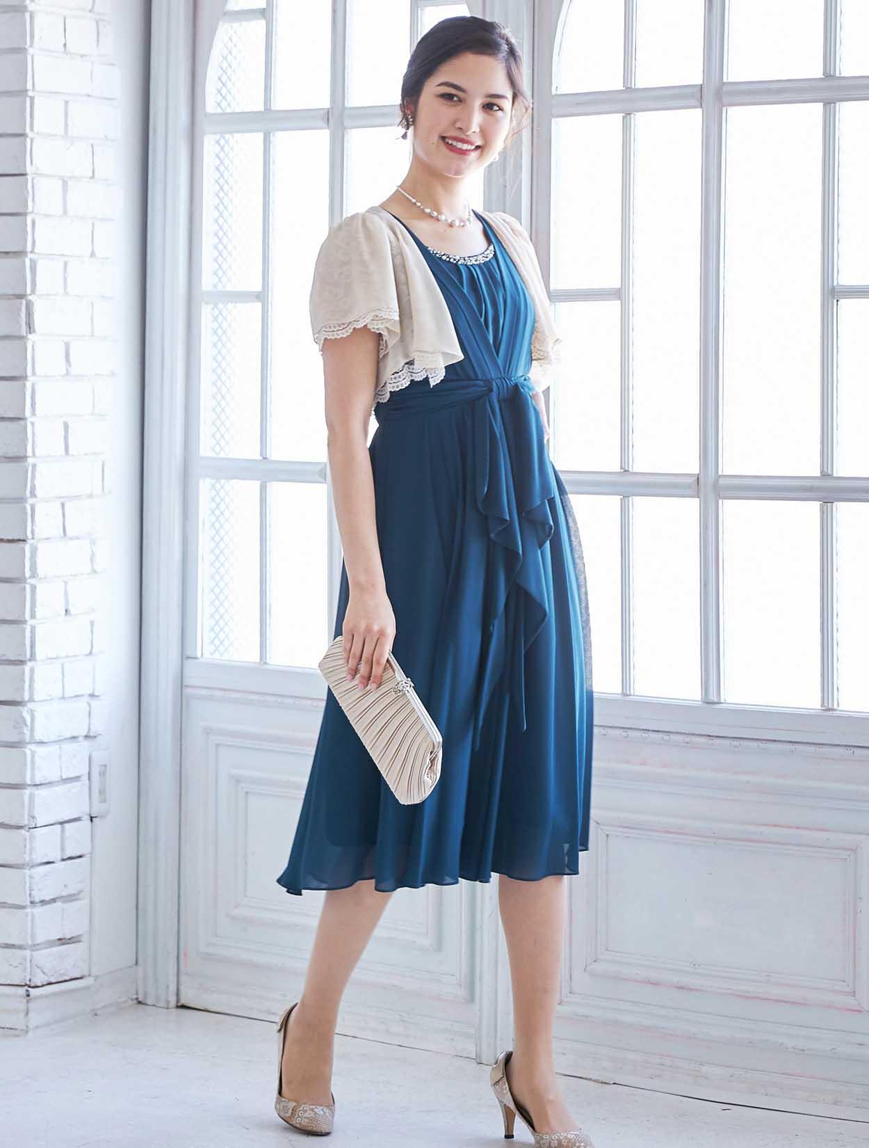シンプルなシフォン生地のドレスは、「春夏秋冬」と年中ご着用いただけます。