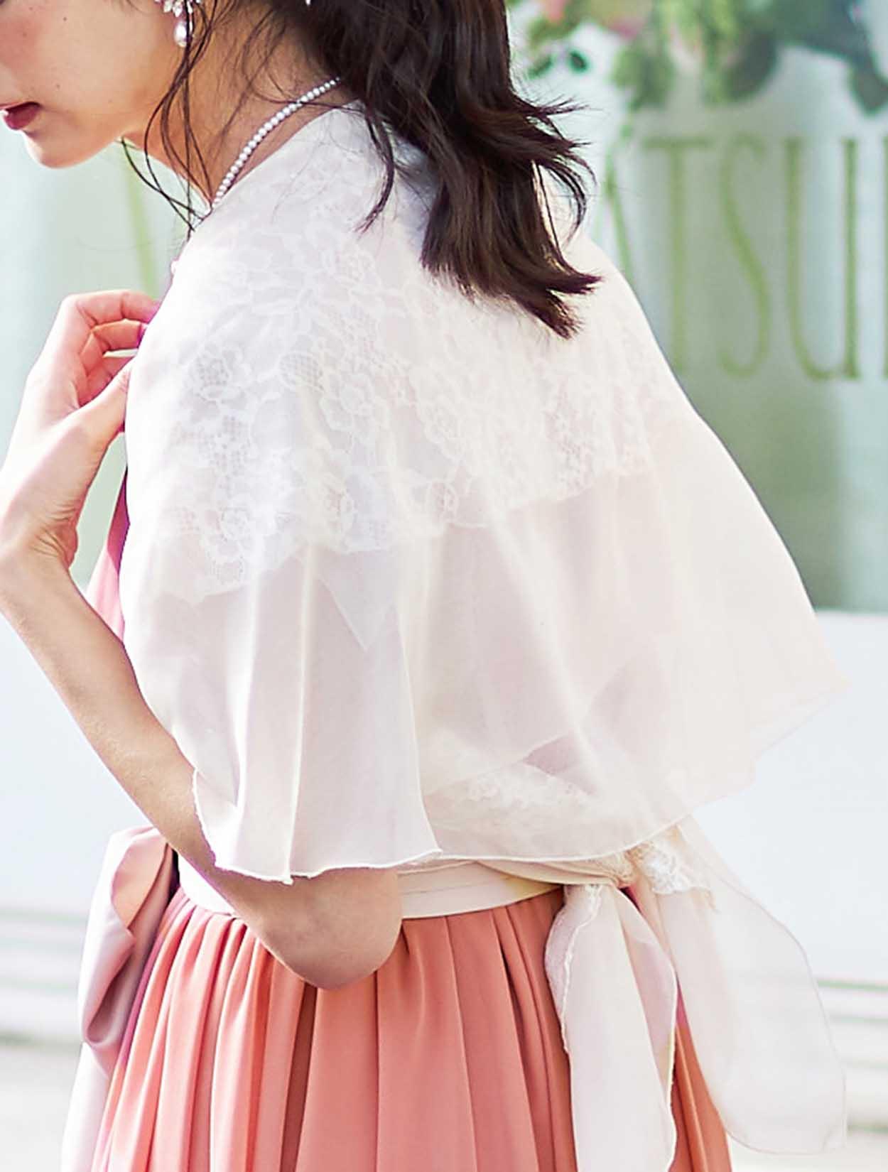軽やかなショールを羽織ったフェミニンコーデ。