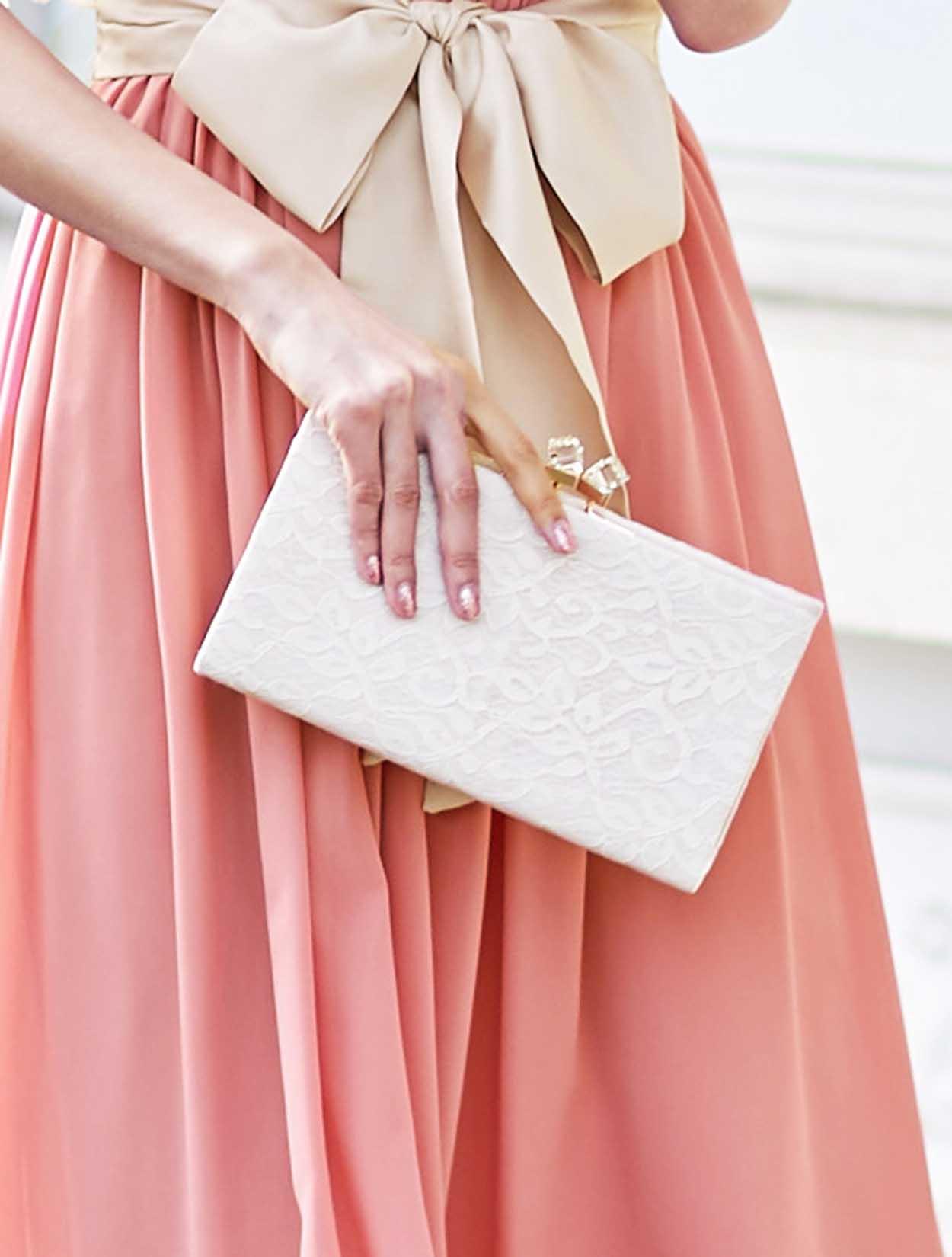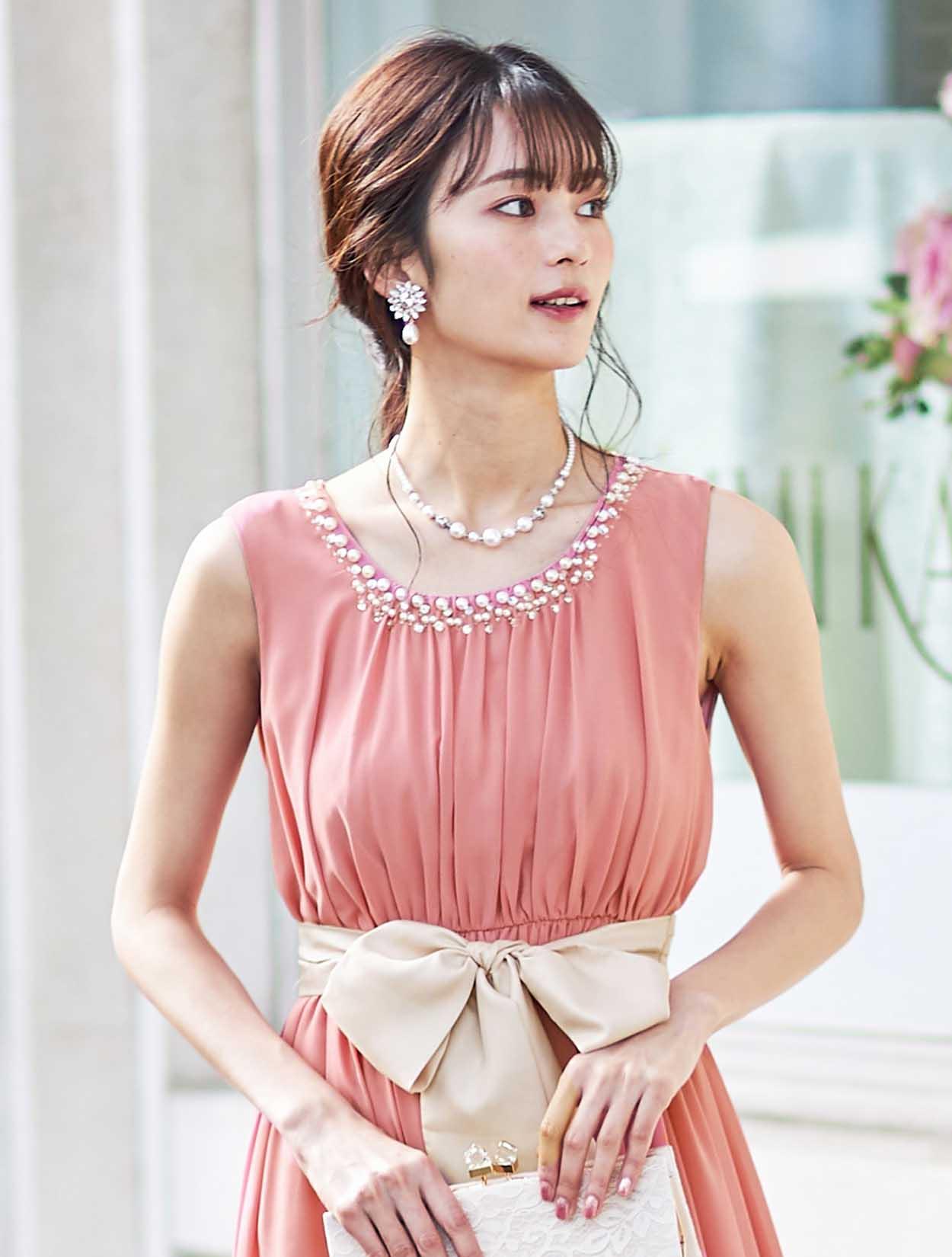 ※レースが使われているドレスは、アクセサリーやバッグのチェーンなど、引っかからない様ご注意ください。肩部分がレースのドレスは、バッグの肩掛けはご遠慮下さい。レースは繊細な素材なので、破れや傷みの原因になります。