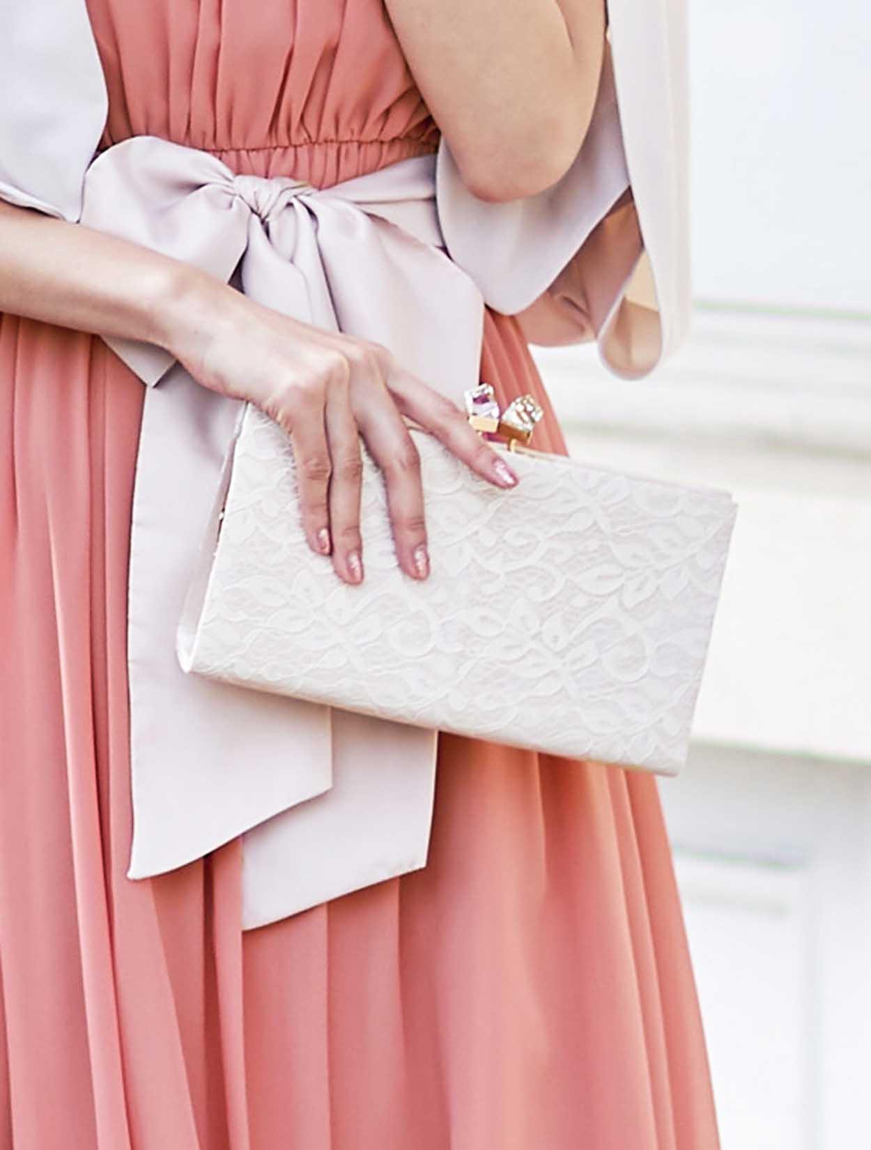※レースが使われているドレスは、アクセサリーやバッグのチェーンなど、引っかからない様ご注意ください。肩部分がレースのドレスは、バッグの肩掛けはご遠慮下さい。レースは繊細な素材なので、破れや傷みの原因になります。