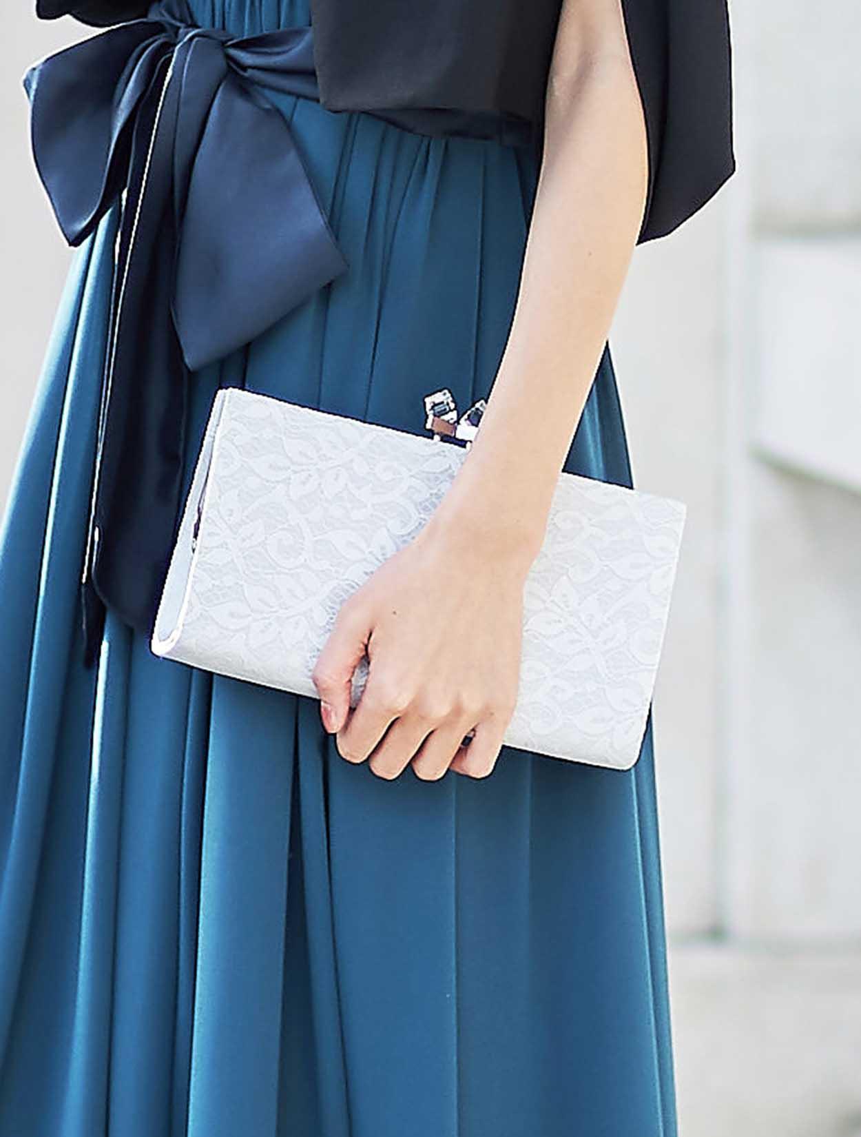 ※レースが使われているドレスは、アクセサリーやバッグのチェーンなど、引っかからない様ご注意ください。肩部分がレースのドレスは、バッグの肩掛けはご遠慮下さい。レースは繊細な素材なので、破れや傷みの原因になります。