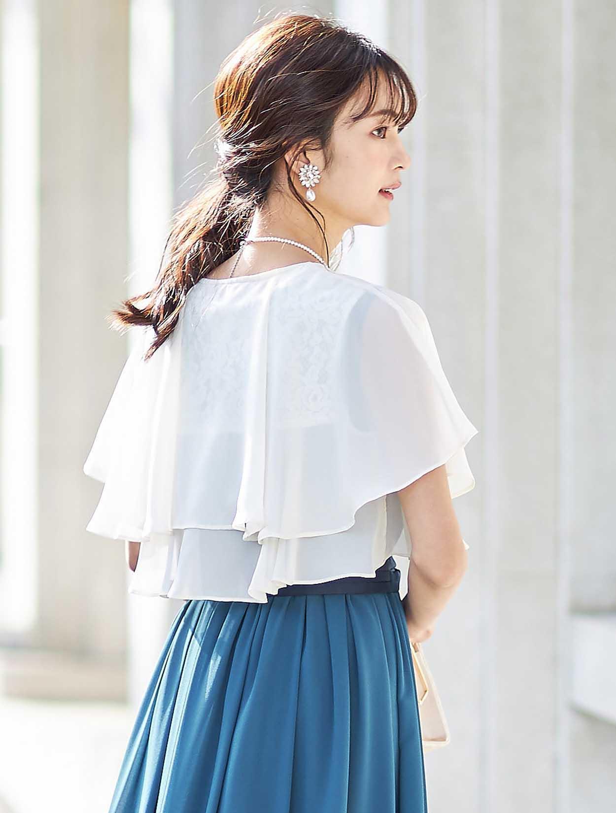 ふんわりエアリーなボレロを合わせた、軽やかなコーディネート。
