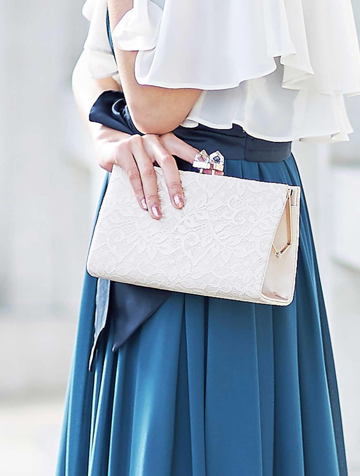 ※レースが使われているドレスは、アクセサリーやバッグのチェーンなど、引っかからない様ご注意ください。肩部分がレースのドレスは、バッグの肩掛けはご遠慮下さい。レースは繊細な素材なので、破れや傷みの原因になります。