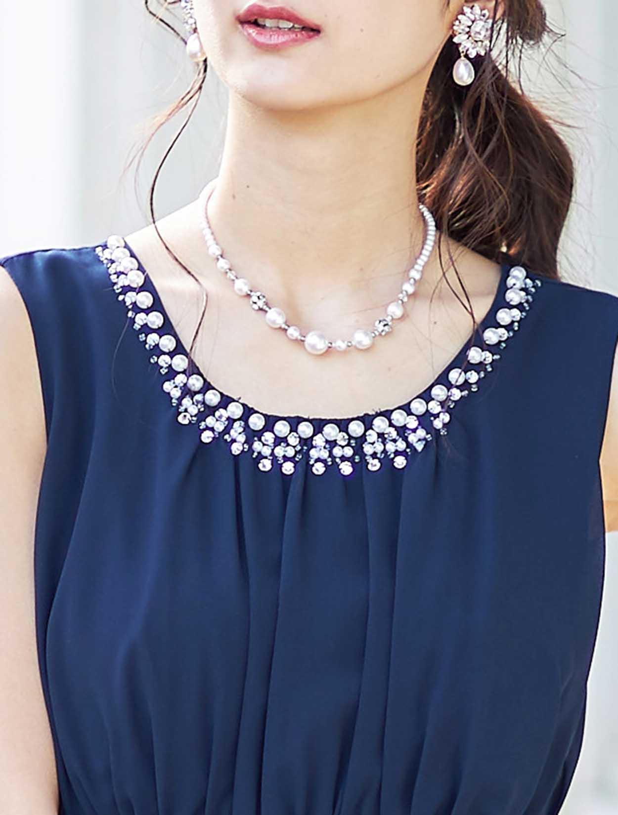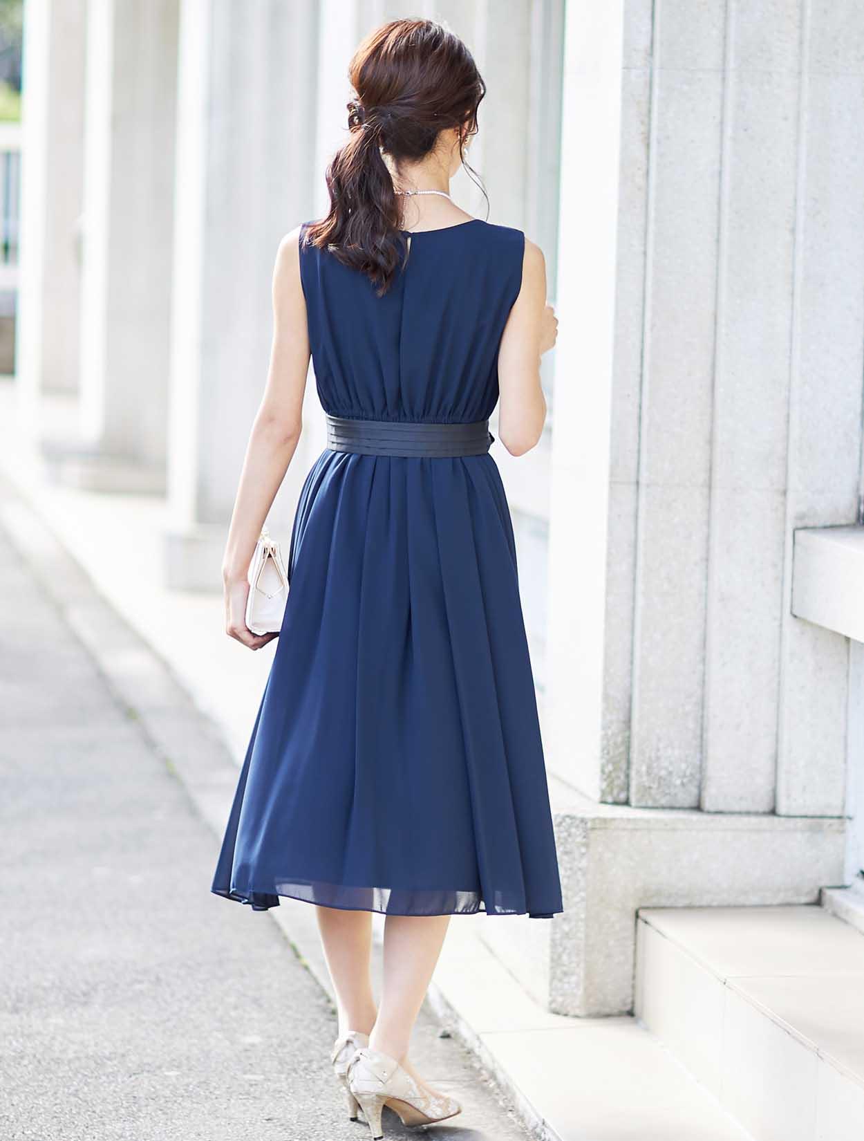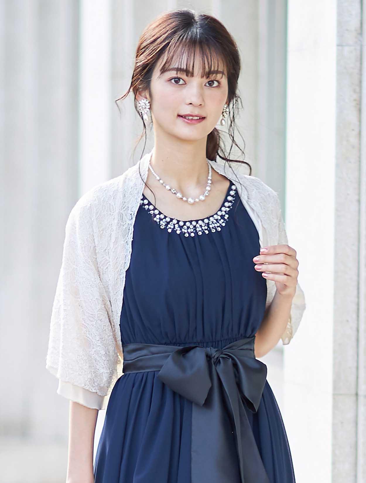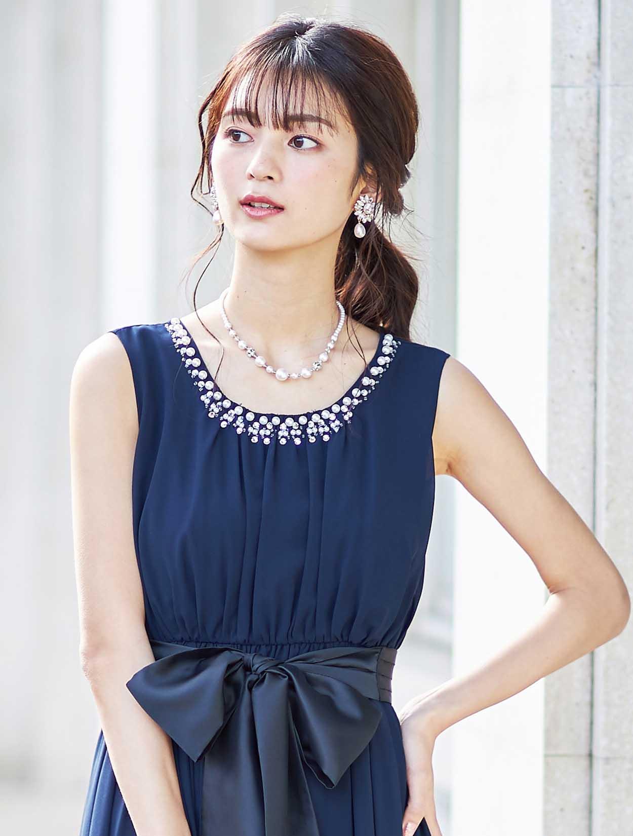 華やかな印象たっぷりのネイビードレスは、おめでたい席にもおすすめの万能ドレスです。