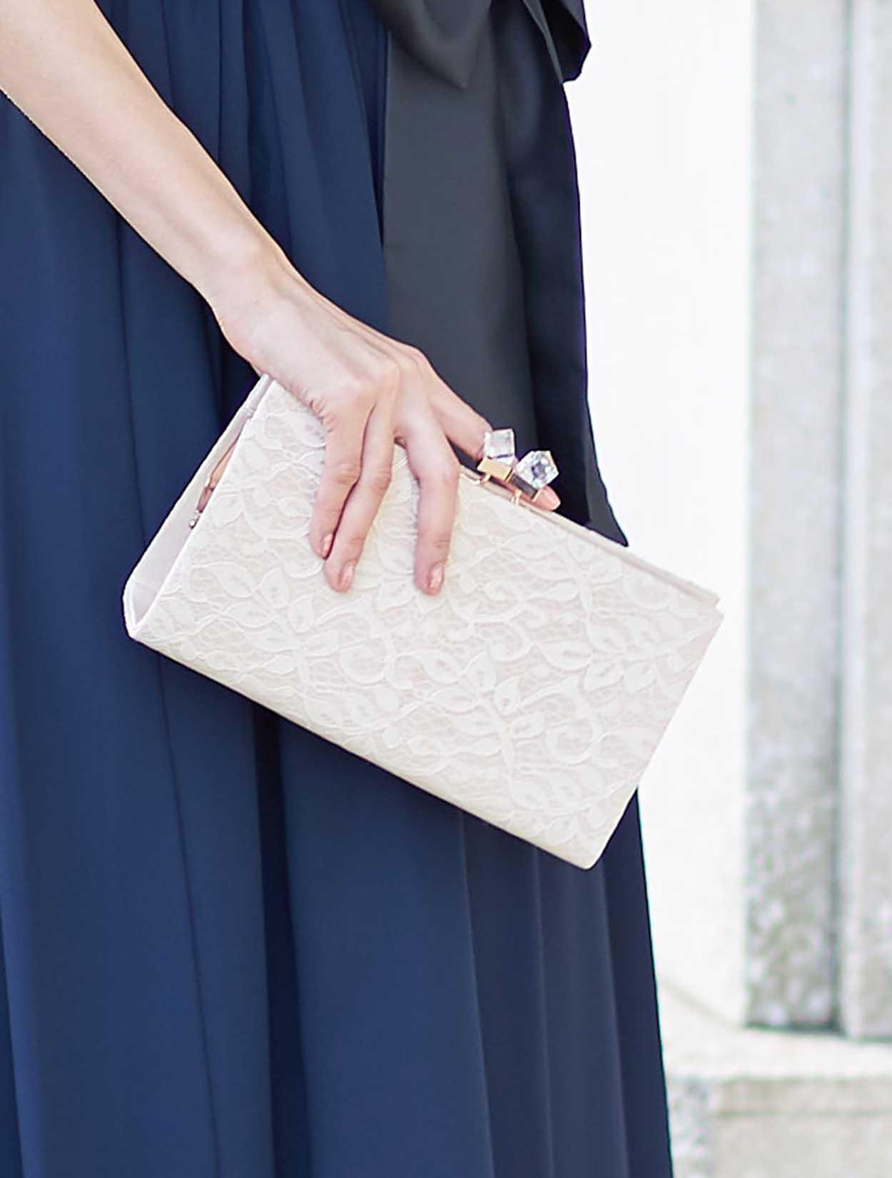 ※レースが使われているドレスは、アクセサリーやバッグのチェーンなど、引っかからない様ご注意ください。肩部分がレースのドレスは、バッグの肩掛けはご遠慮下さい。レースは繊細な素材なので、破れや傷みの原因になります。