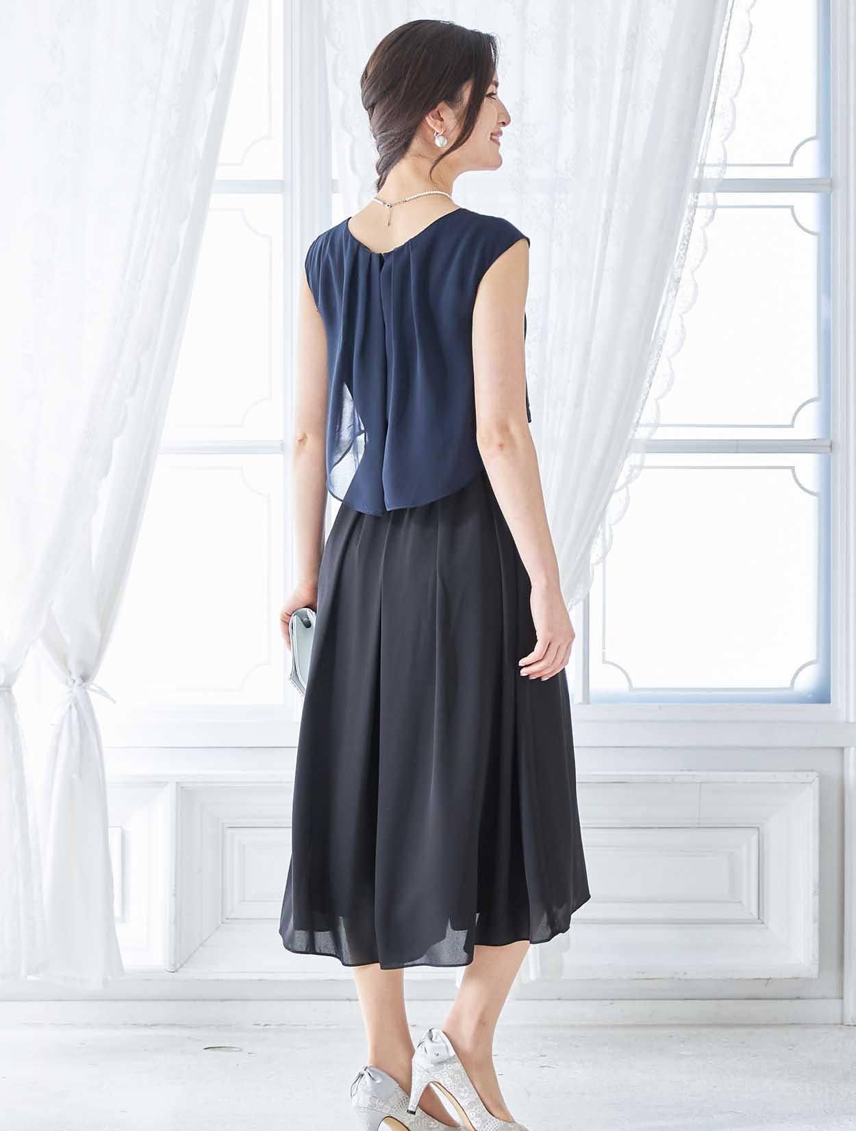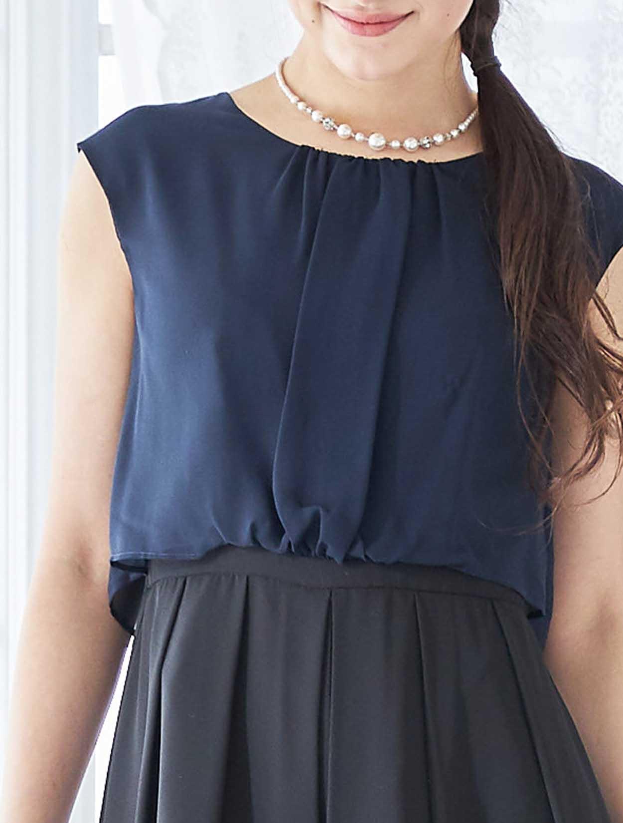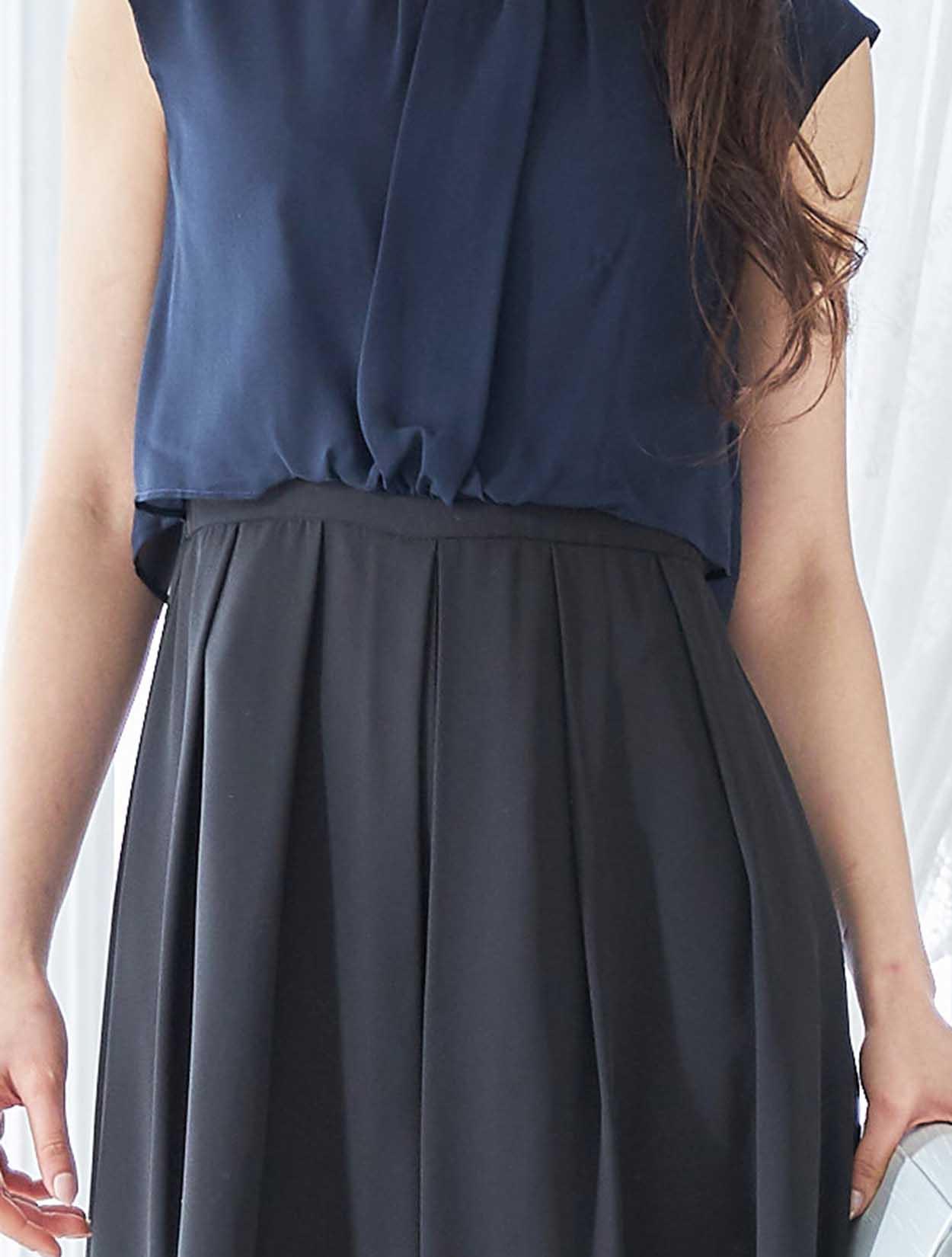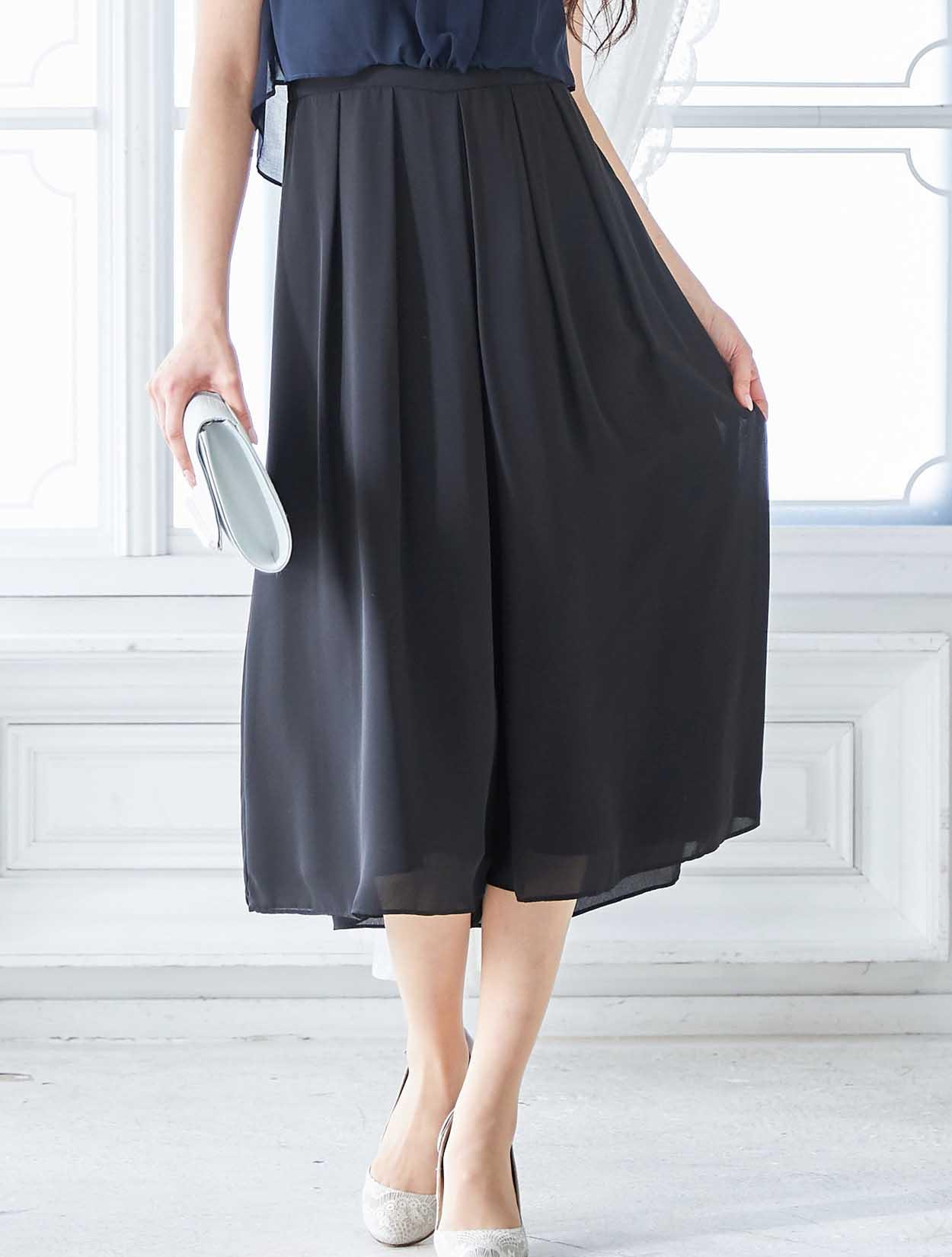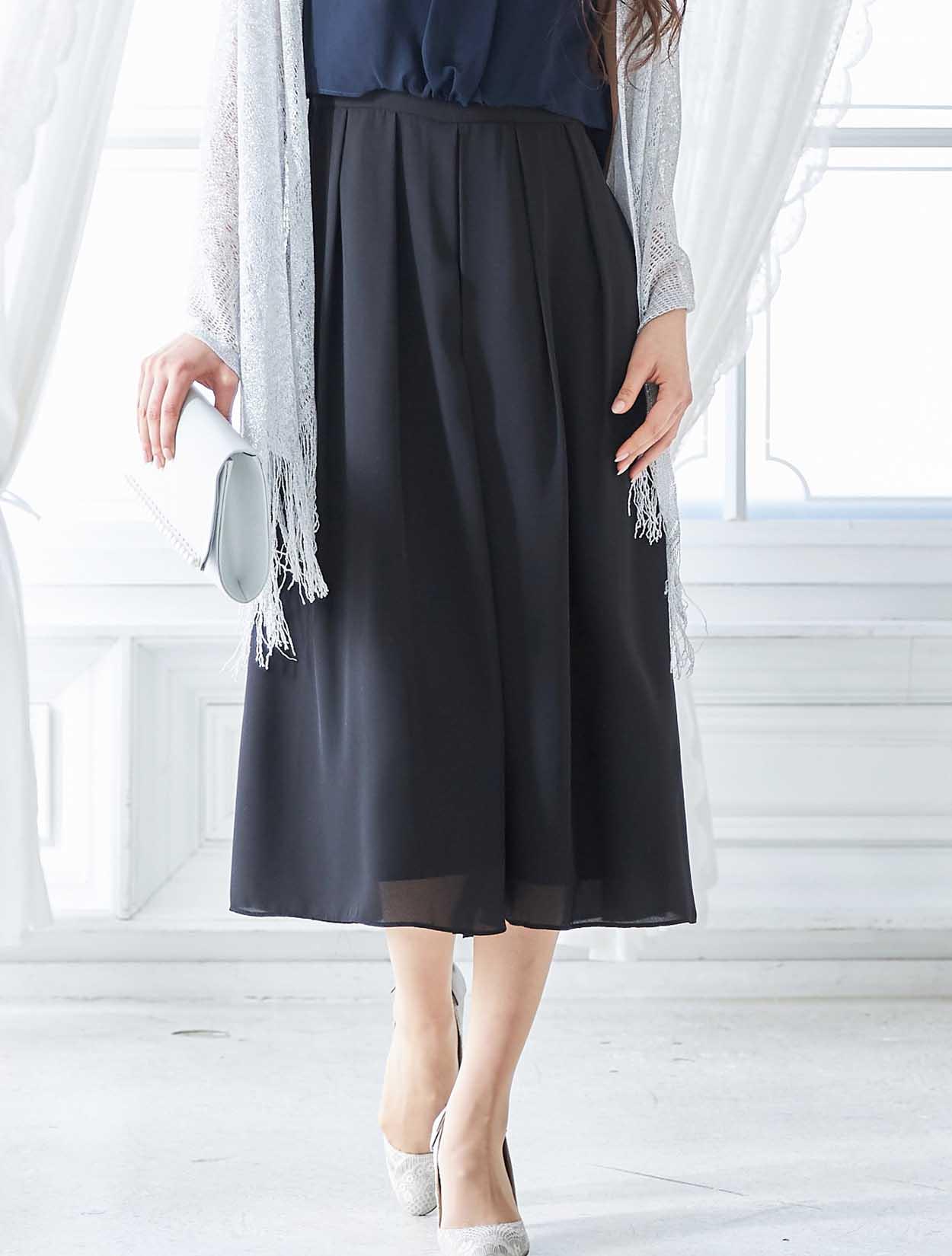 ブラウスを着ているようなデザインはふんわりとしたエアリー感が漂い、程よく気になるラインをカバーしてくれます。タックをふんだんに入れてパンツに程よくボリュームを足すことで、一見スカートの様。初めてのパンツドレスでも着やすいデザインです。
