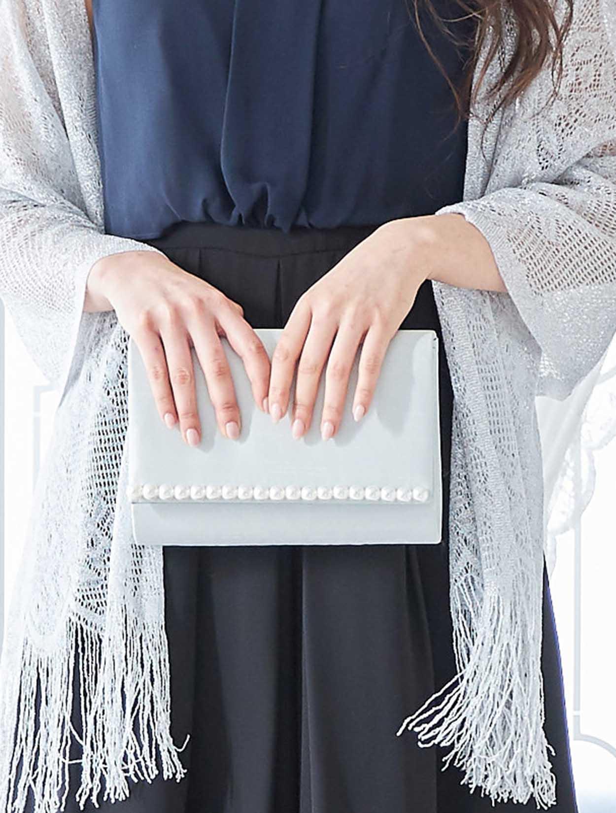 パールが施されたバッグは、シンプルなデザインで大人っぽいドレスにピッタリです。