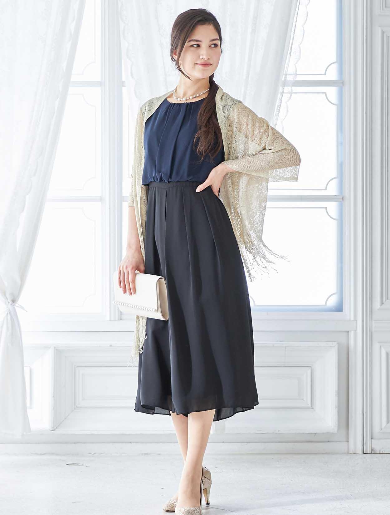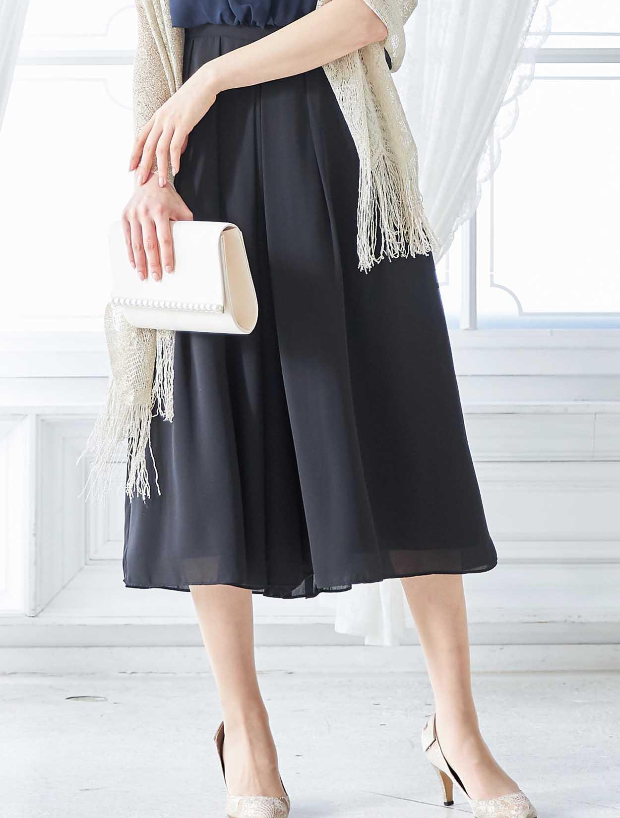 ブラウスを着ているようなデザインはふんわりとしたエアリー感が漂い、程よく気になるラインをカバーしてくれます。タックをふんだんに入れてパンツに程よくボリュームを足すことで、一見スカートの様。初めてのパンツドレスでも着やすいデザインです。