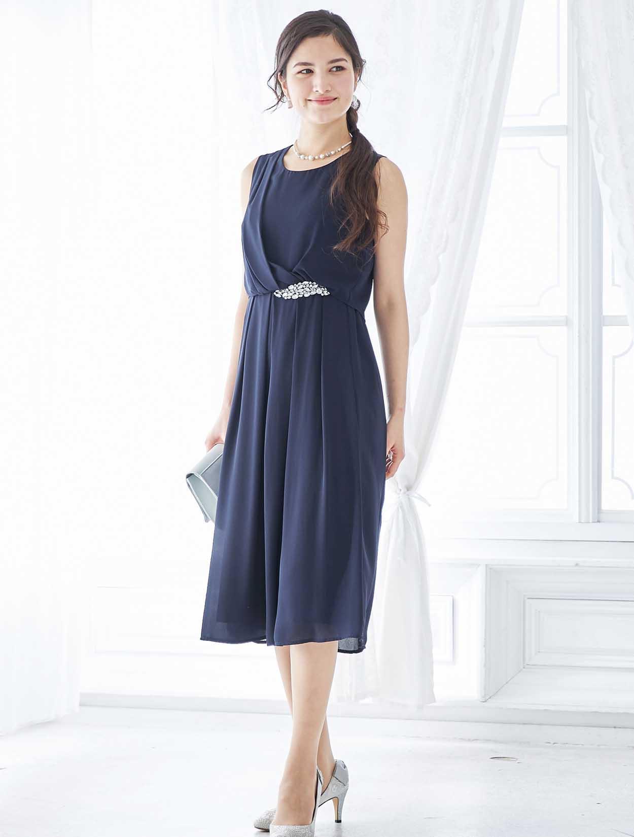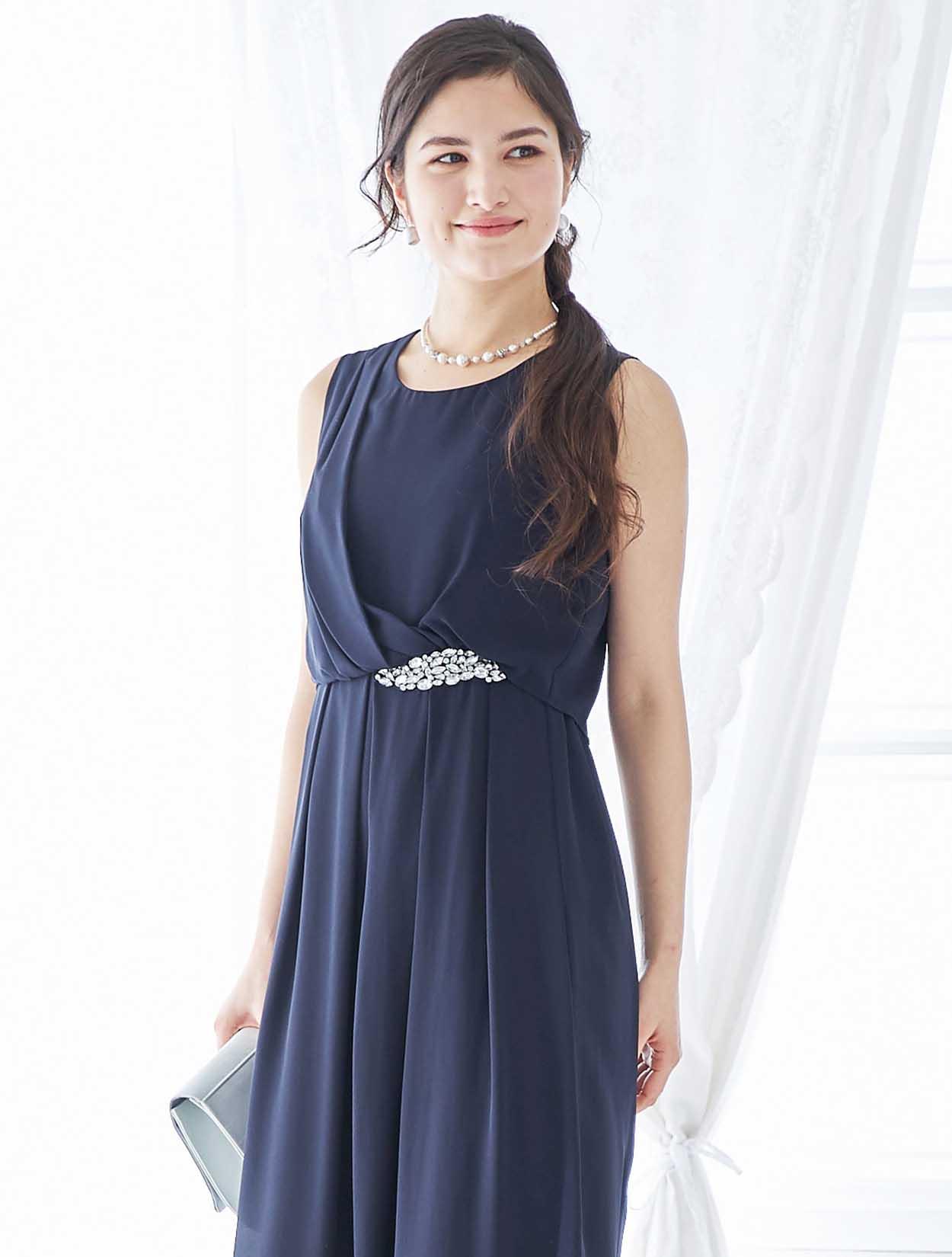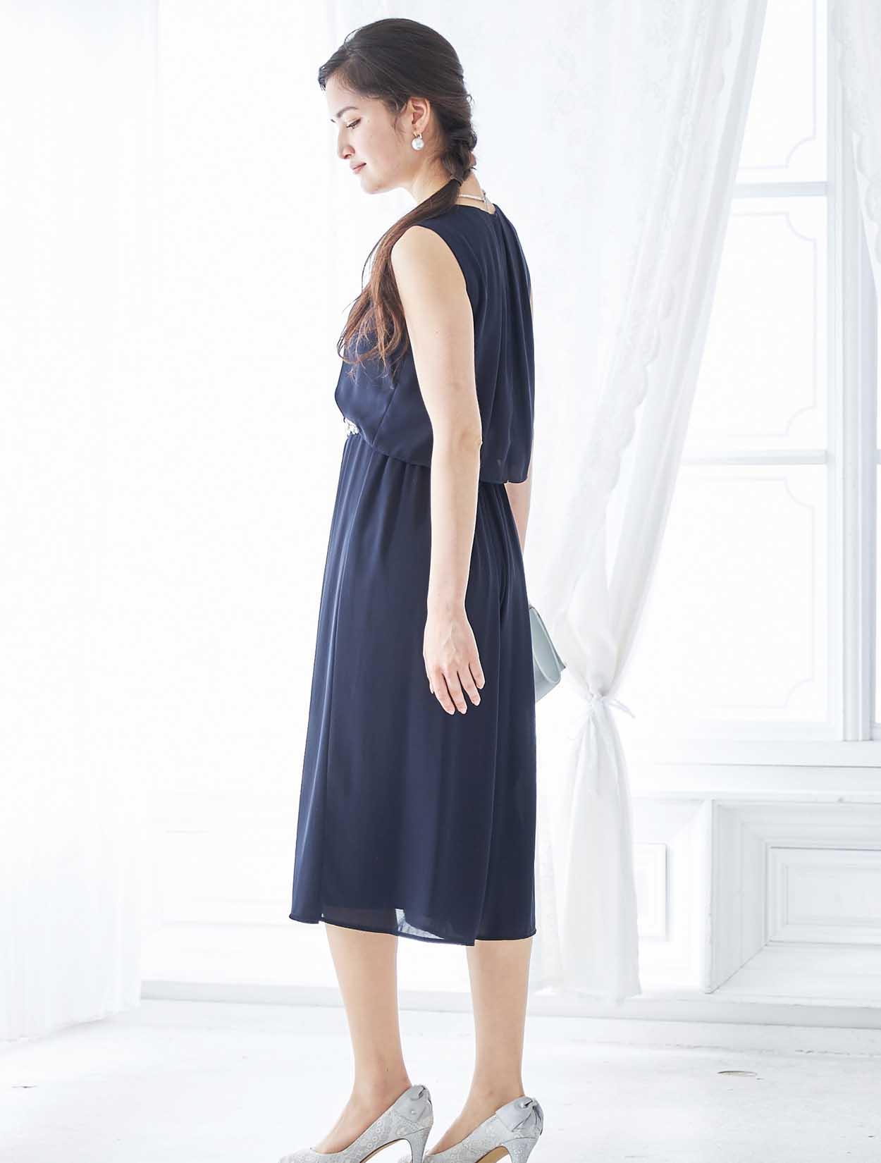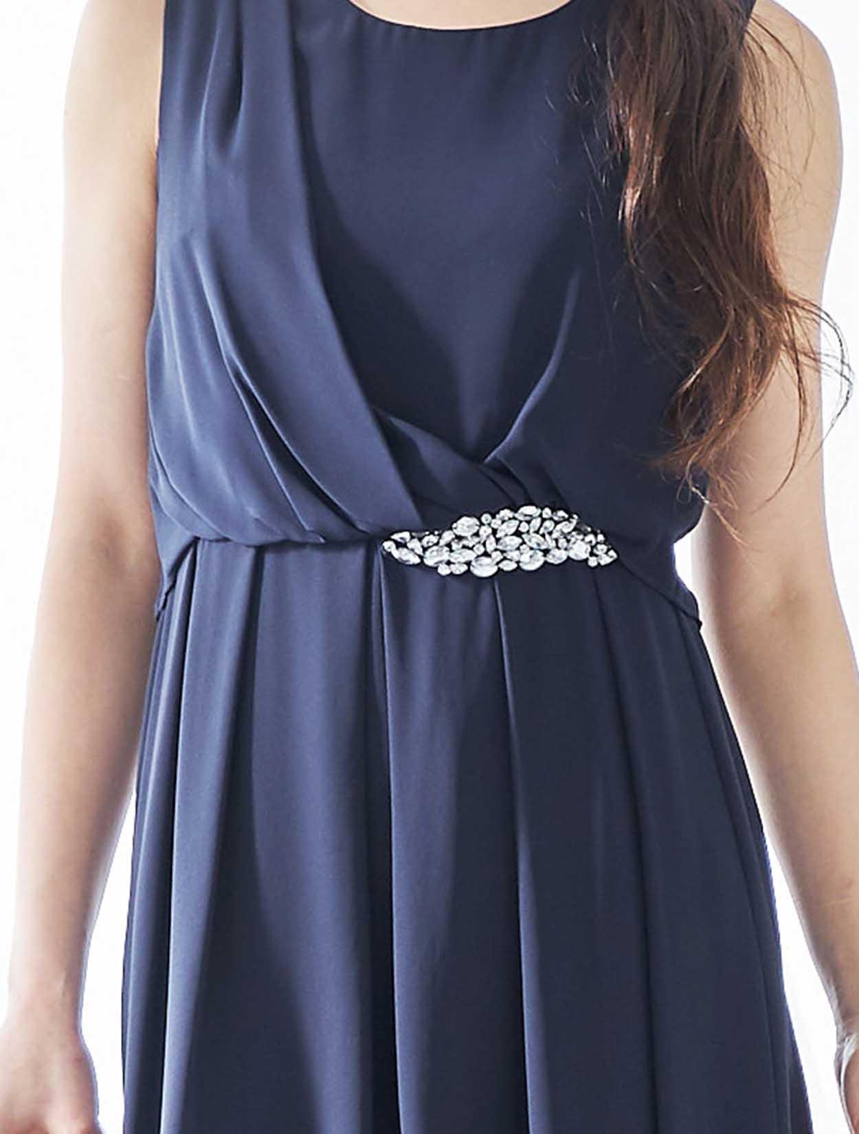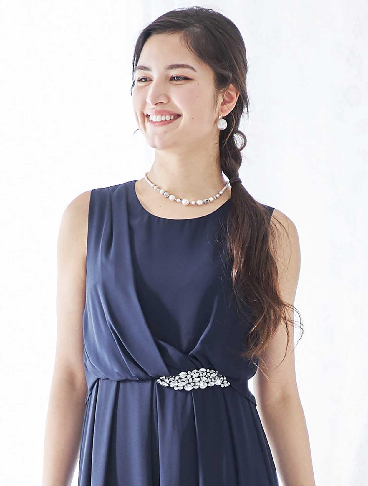 シンプルなネックレスで、ウエストのビジューが美しく際立ちます。