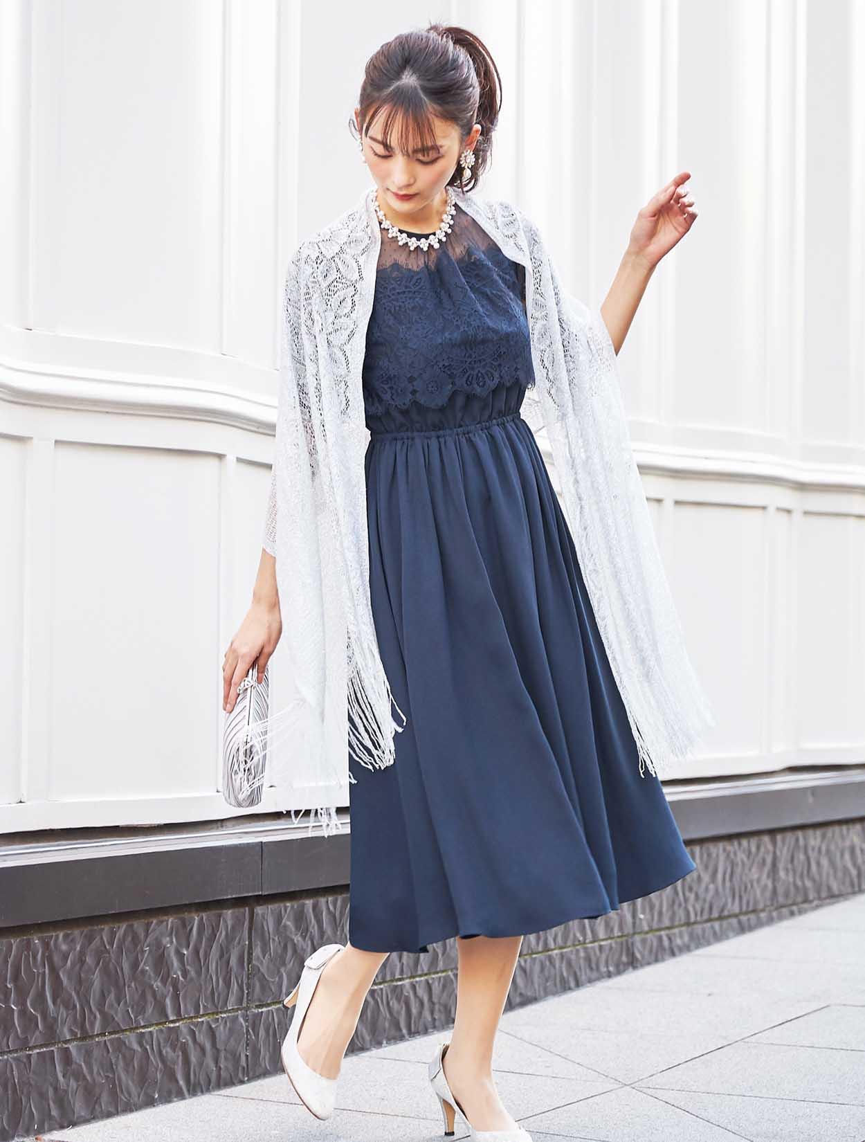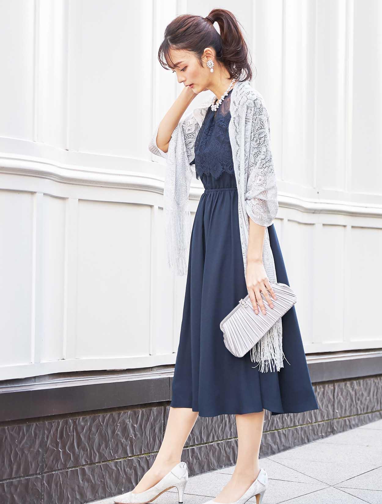 ※レースが使われているドレスは、アクセサリーやバッグのチェーンなど、引っかからない様ご注意ください。肩部分がレースのドレスは、バッグの肩掛けはご遠慮下さい。レースは繊細な素材なので、破れや傷みの原因になります。