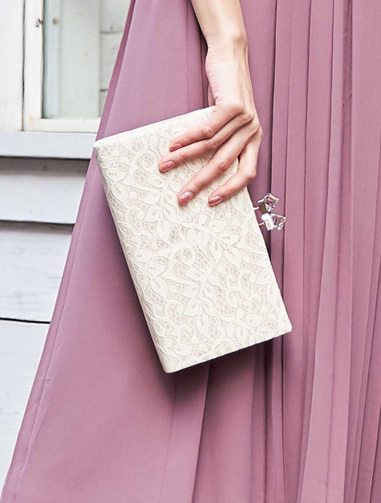 ※レースが使われているドレスは、アクセサリーやバッグのチェーンなど、引っかからない様ご注意ください。肩部分がレースのドレスは、バッグの肩掛けはご遠慮下さい。レースは繊細な素材なので、破れや傷みの原因になります。