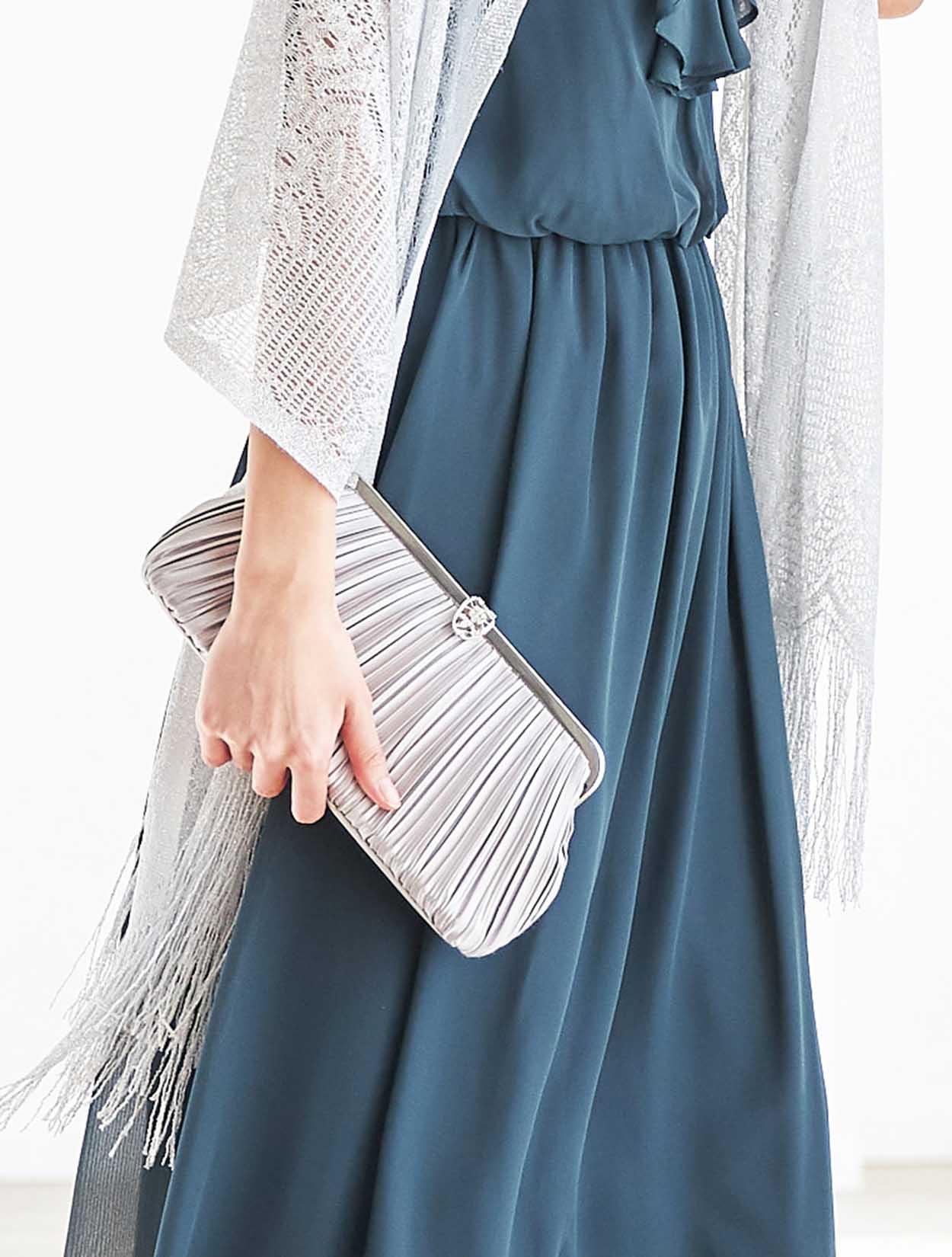 シンプルで使い勝手の良いプリーツのバッグで上品な印象に。