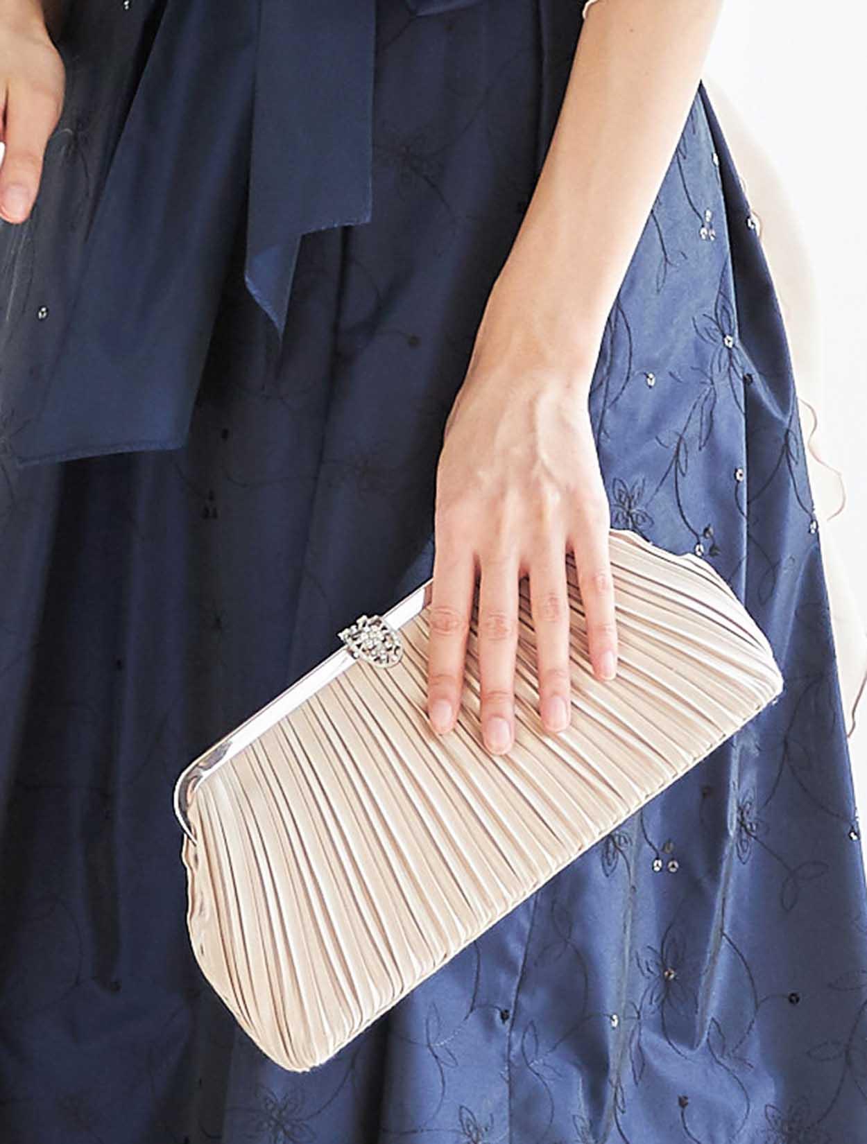 定番のネイビーカラー。タフタ生地の光沢が高級感あり。ダークカラーでも地味になり過ぎません。