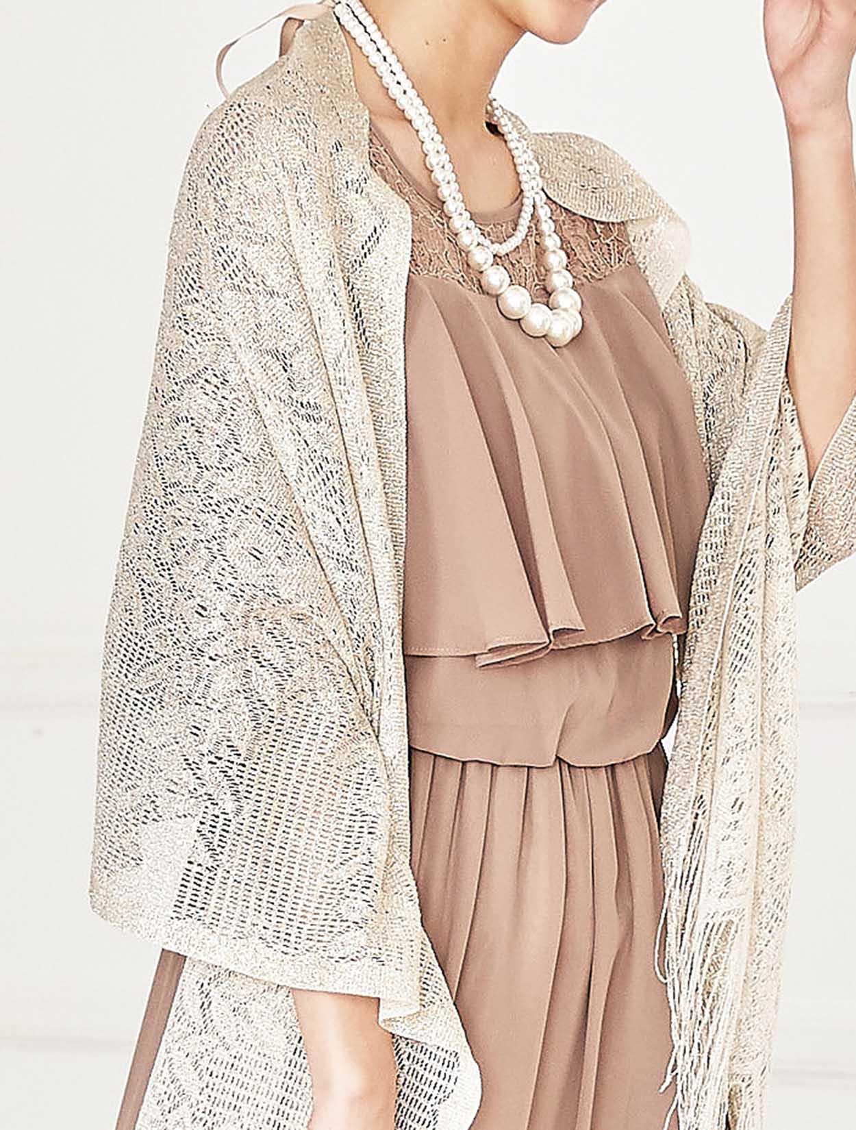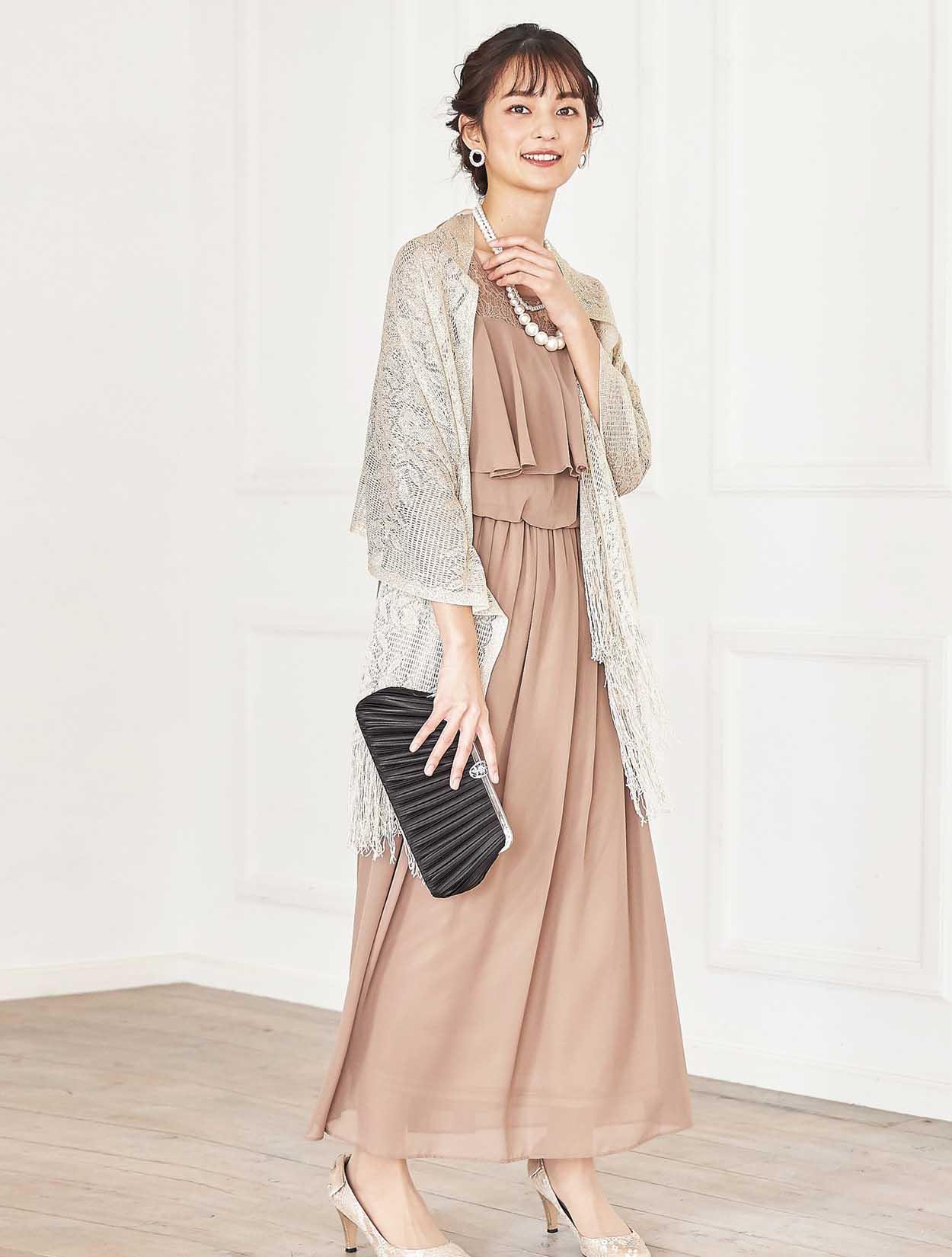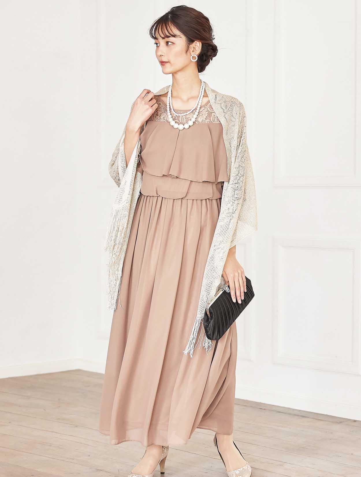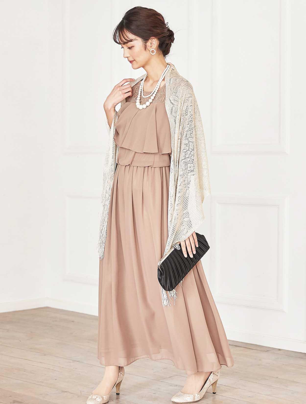 ライトな着心地に透け感のあるシフォン生地と上品なレースを使用。ロングドレスでもエアリーで軽さのあるシルエットです。