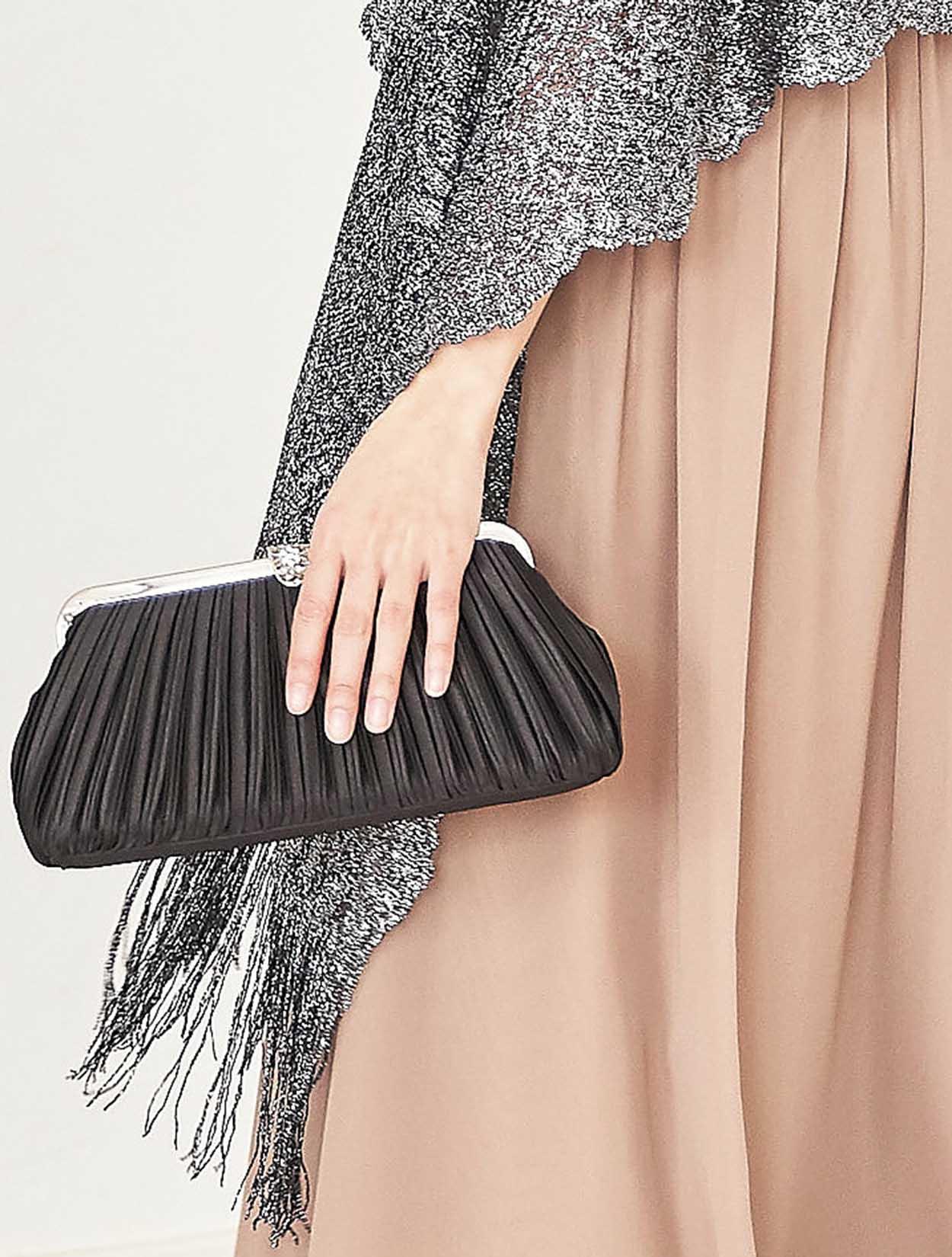 シンプルで使いやすいプリーツバッグはドレスのデザインの邪魔をせず幅広い年代の方から人気です。