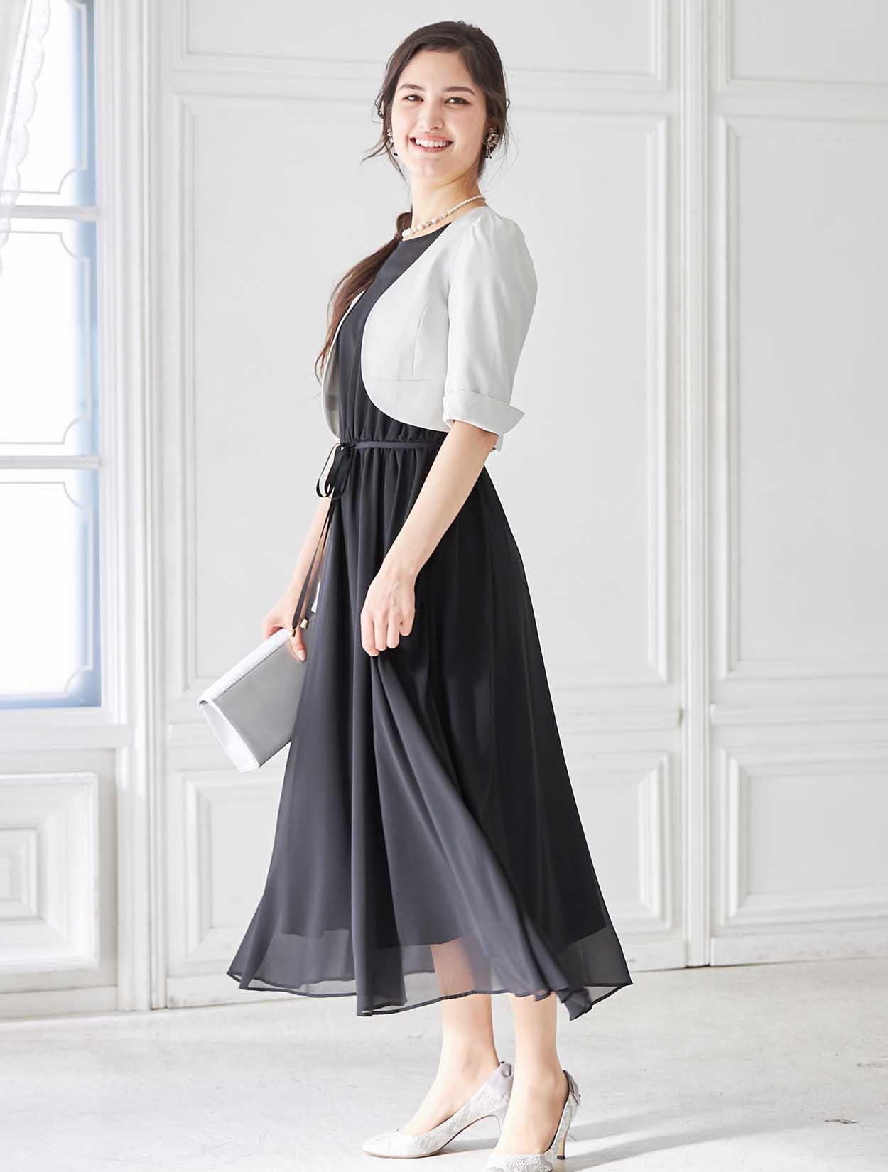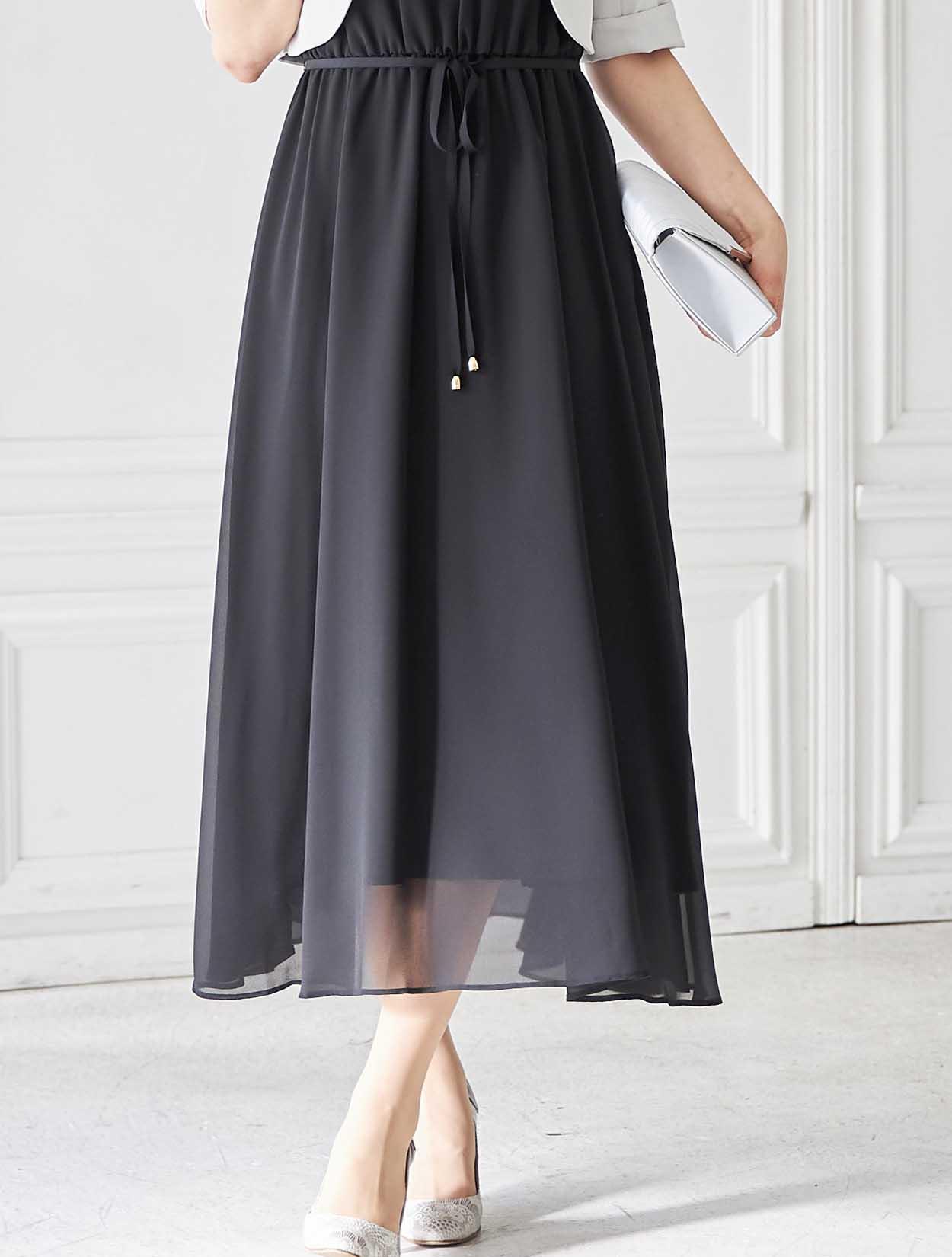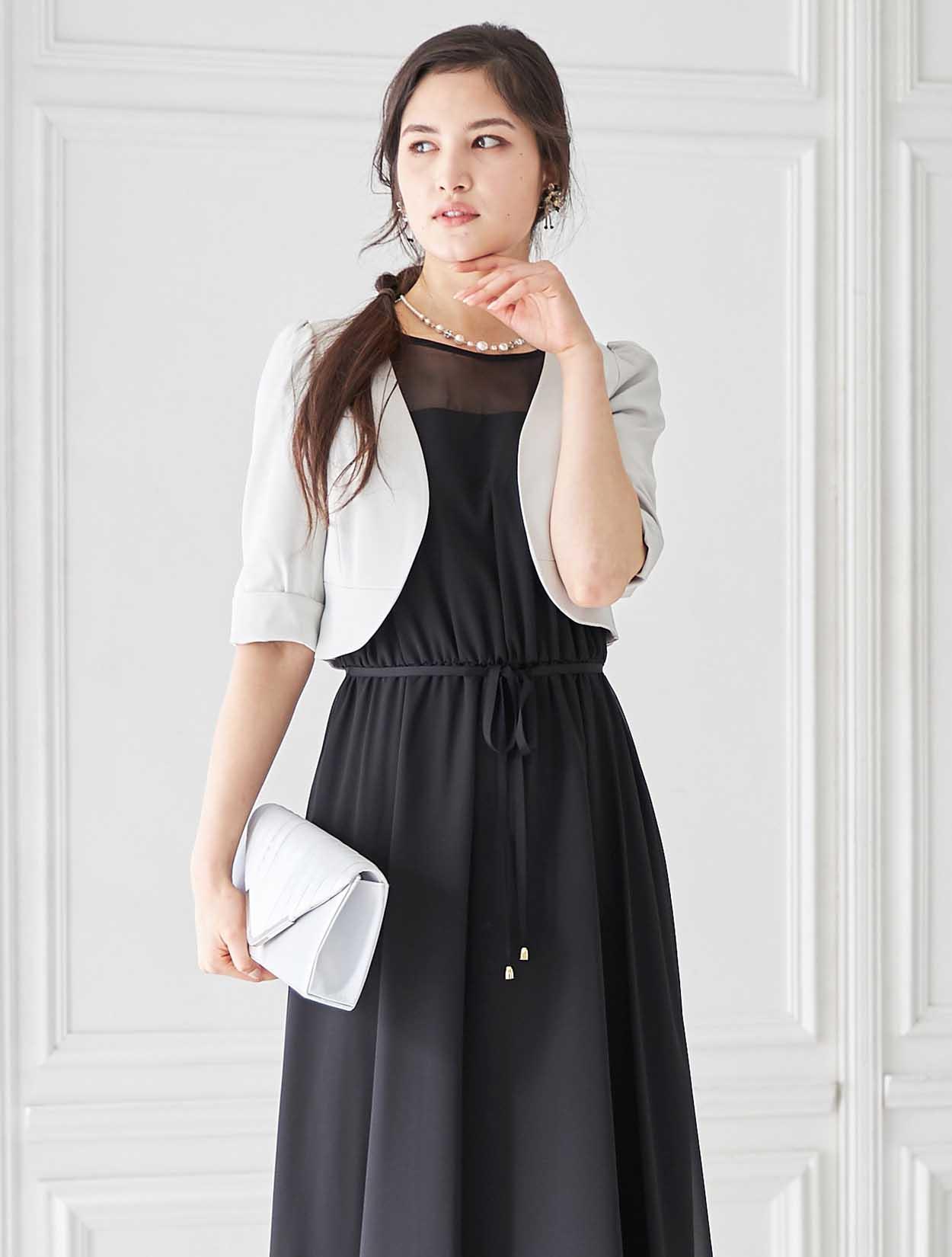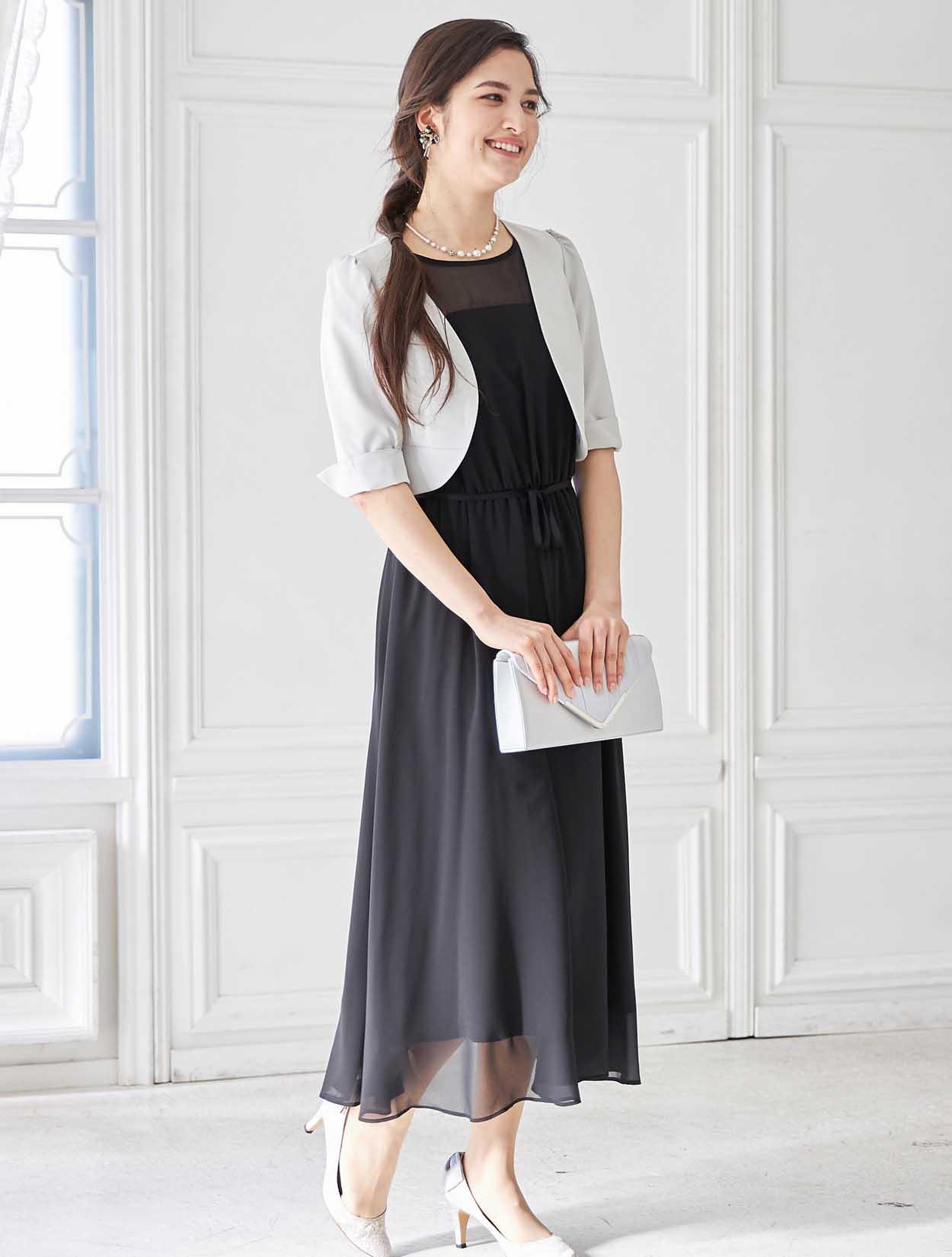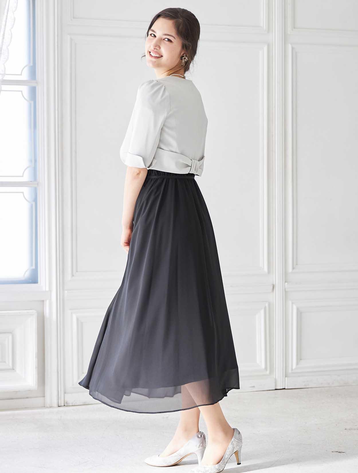 シンプルでシックなブラックカラー。軽さのあるジョーゼット生地のブラックは、重たくなり過ぎないのがポイントです。