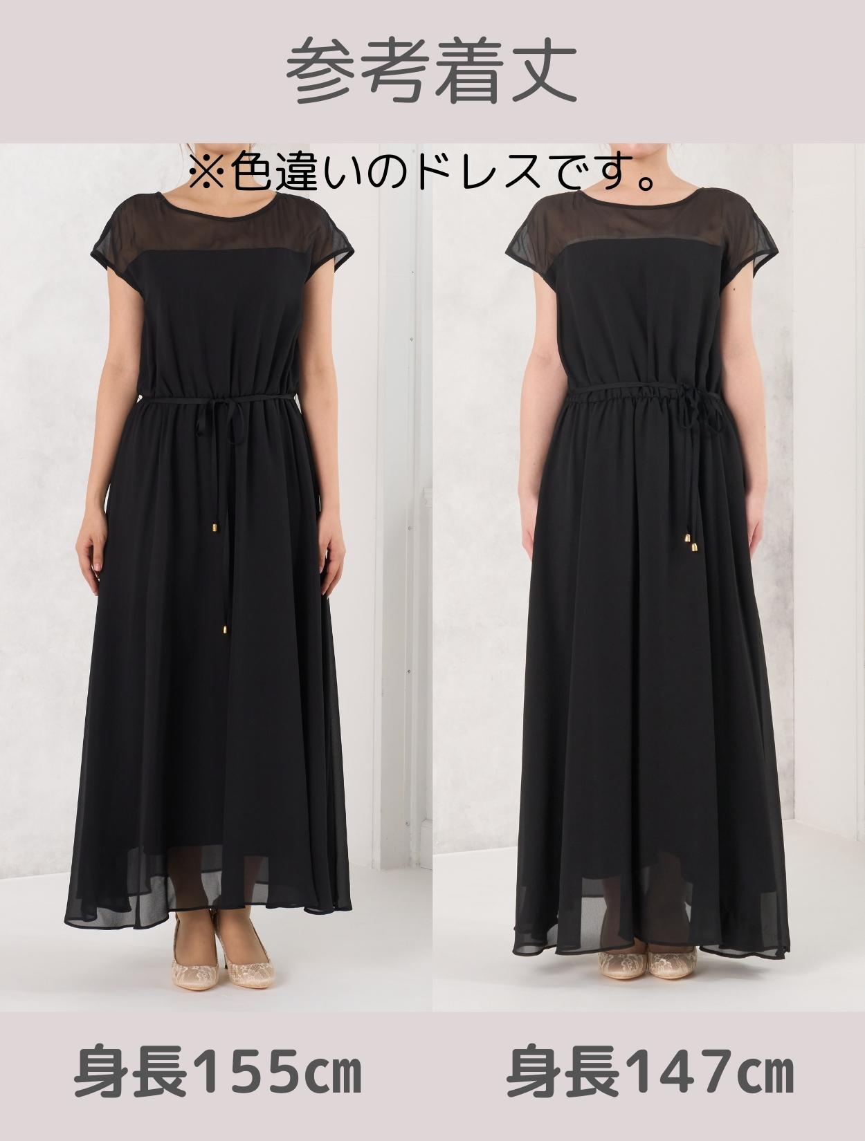 フレンチスリーブにウエストの紐ベルトが、頑張り過ぎない印象のロングドレス。広がり過ぎないロングスカートが大人っぽい印象をプラス。フレンチスリーブは、肩幅が気になる方にもおすすめのデザインです。デコルテ部分はオーガンジーでシアーな透け感があるので、お顔周りに抜け感が出ます。また、ウエストゴム仕様で着心地抜群です。ショートスリーブの軽やかなジョーゼット生地のドレスは、真夏の結婚式でも一枚で涼しく着られます。
