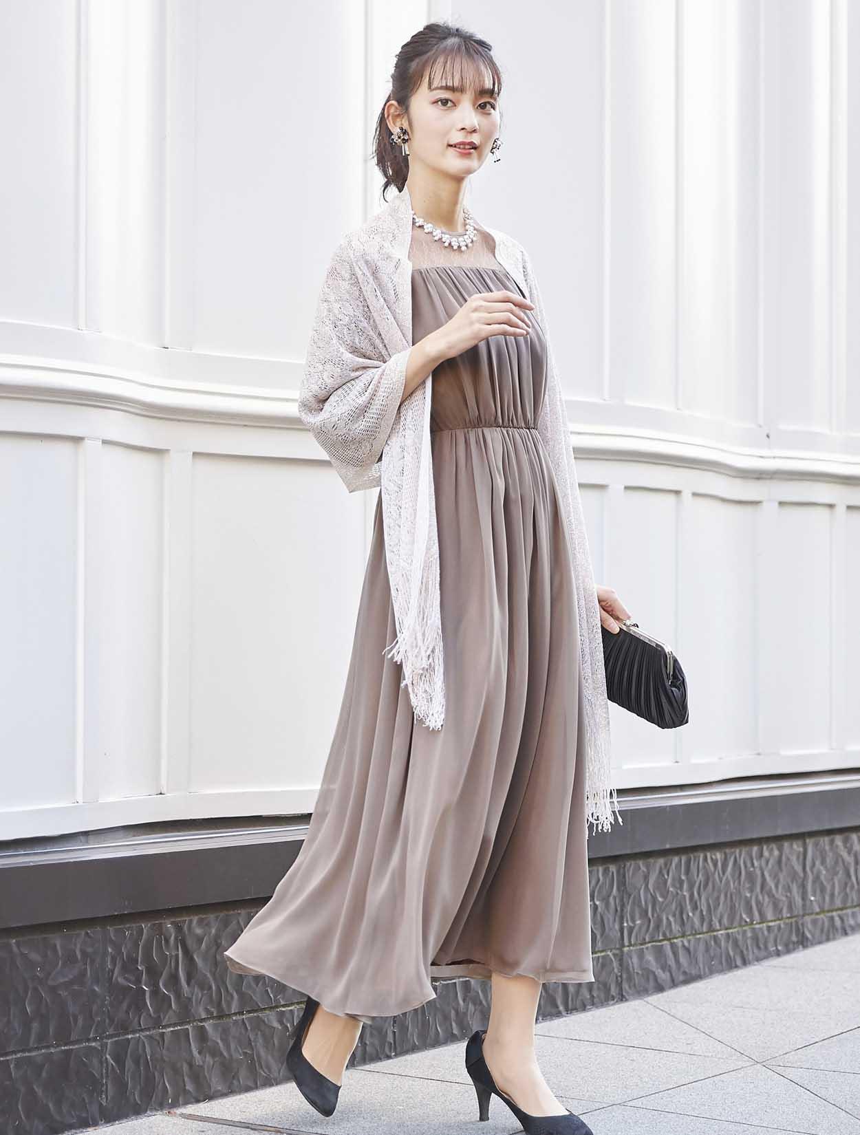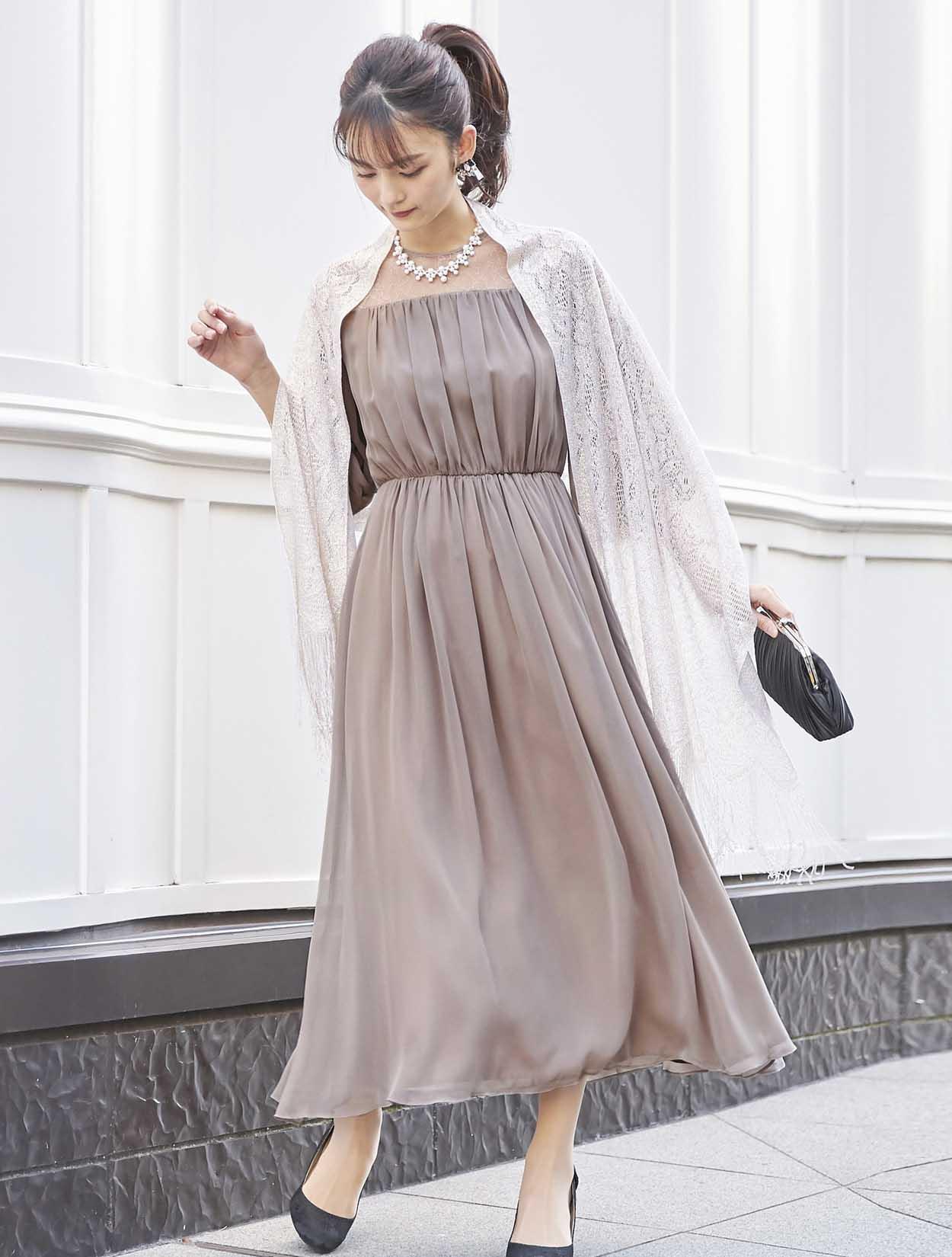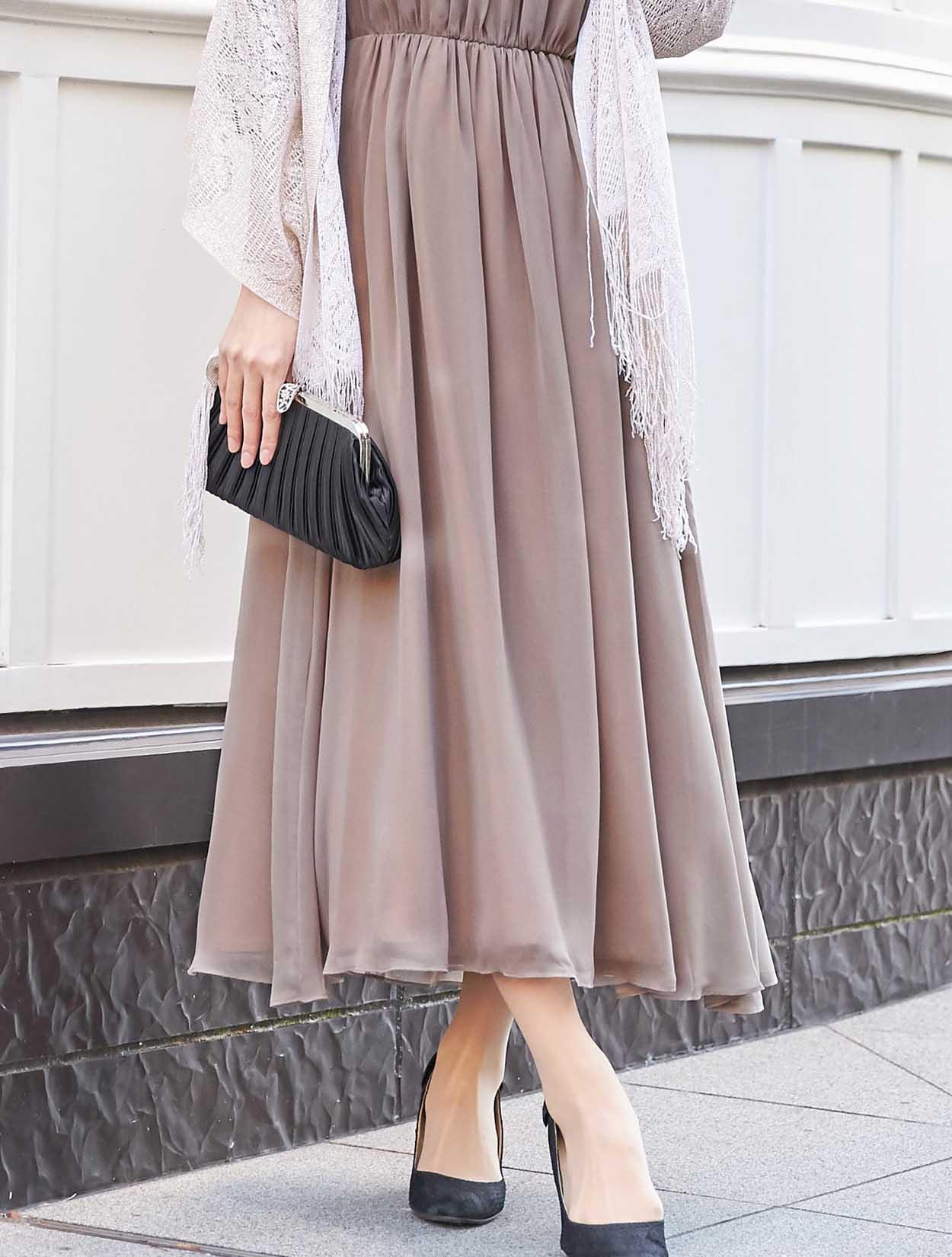 優しい雰囲気のミルクティーベージュ。ほんの少しグレーが入ったような、トレンドのニュアンスカラーです。上品かつおしゃれに着こなせるカラーです。しっかりと色味のあるベージュドレスなので、結婚式でも安心して着用可能です。