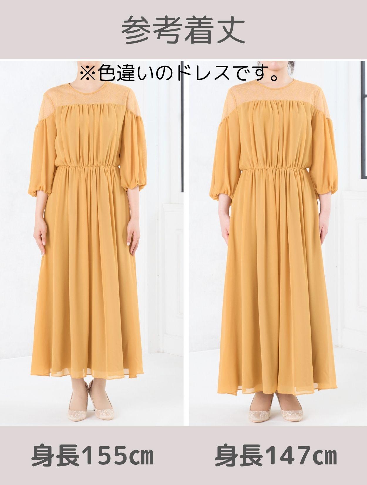 ふんわりとしたバルーン袖が目を引くドレス。気になる二の腕をカバーしてくれます。トレンドの袖ありドレスは、結婚式でも羽織なしで着用できます。上半身をスッキリ見せてくれる背中ファスナーの作りは、フワッとしたお袖でも全体のラインをもたつかせません。ハイウエストに切り替えがありスタイルアップ抜群です。ウエストの切り替えはゴム仕様で、長時間の着用でも楽な着心地です。また、スカートはシフォン生地で程よく透け感があるので、小柄な方でも着こなしやすいロングドレスです。デコルテ部分は上品なレースで、お顔周りを華やかにしてくれます。