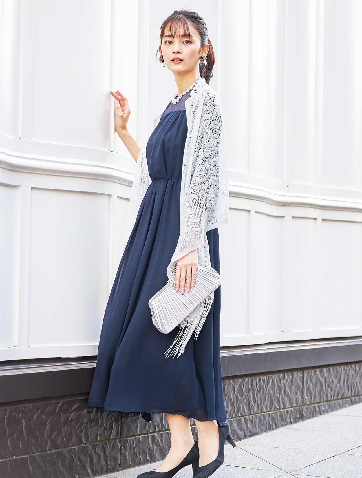 このセット商品は「ドレス・羽織・バッグ・ネックレス」の4点コーディネートセットです。