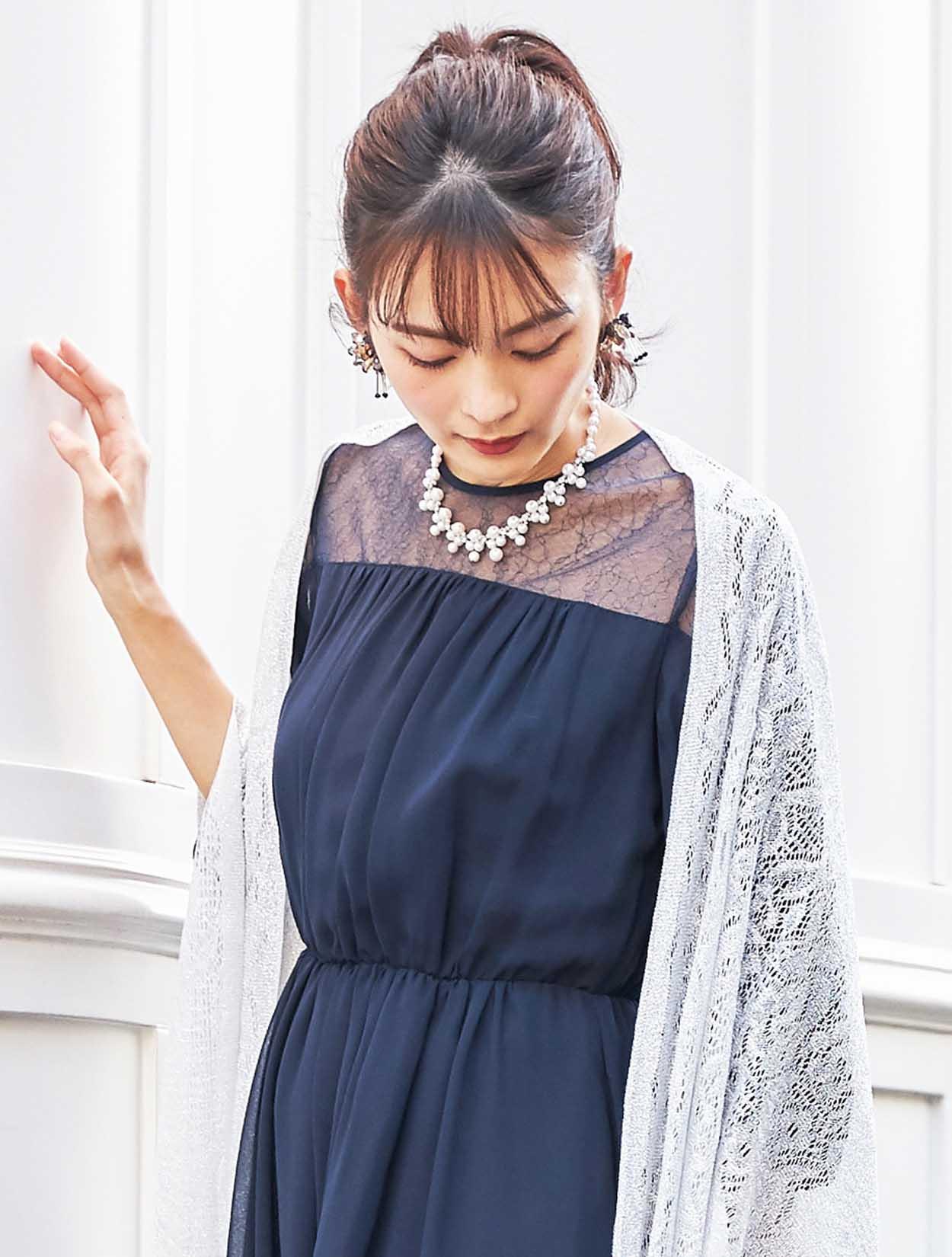 ※レースが使われているドレスは、アクセサリーやバッグのチェーンなど、引っかからない様ご注意ください。肩部分がレースのドレスは、バッグの肩掛けはご遠慮下さい。レースは繊細な素材なので、破れや傷みの原因になります。